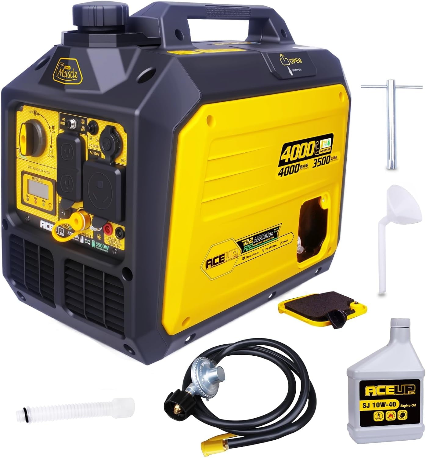 Aceup Energy 4000 Watt Dual Fuel Inverter Generator Portable Quiet, Gas and Propane Powered for Home, RV-Ready, EPA Compliant