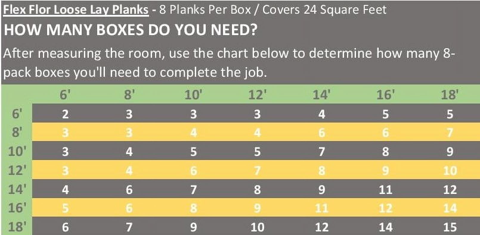 The Achim Flex Flor Loose Lay Planks install easily over most existing hard floor.  These beautifully embossed 9×48 vinyl planks have a slightly variated pattern for a genuine hard-wood floor appearance.  Flex Flor 9 x 48 Planks are made of vinyl and an easy-to-place rubber backing. Simply lay it down to instantly and dramatically transform any room, without the use of special tools. Virtually maintenance free, Flex Flor Loose Lay Planks are durable, scratch-resistant and even reusable. Perfect for any room in your home, office or place of business. Each plank covers 3 square feet, 8 Planks per box, covering 24 square feet. 5 Year Limited Warranty.