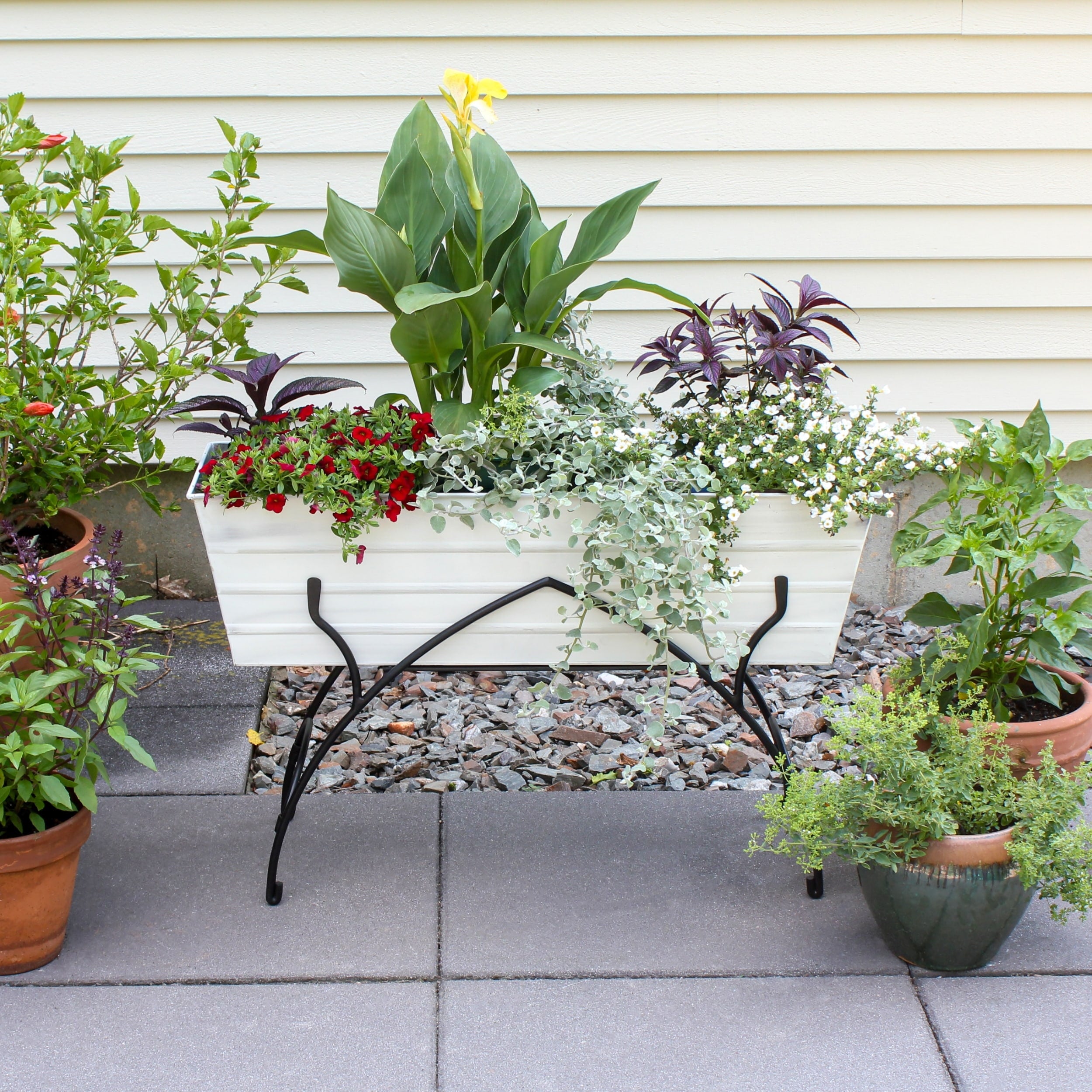 • FLOWER BOX WITH ART DECO STYLE STAND: Create a green divider or multi-level arrangement for container gardening on patios, decks, porches or balconies