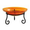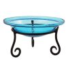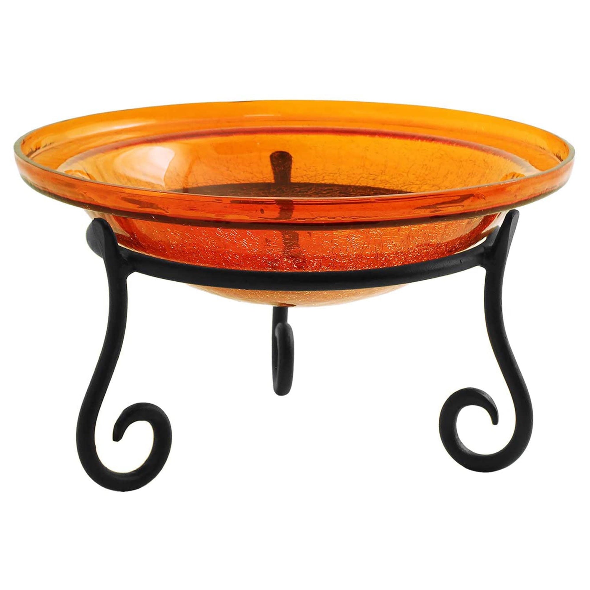 The durable 10-inch wrought iron stand holds the glass bowl safely and securely, preventing breakage from weather and outdoor elements. Designed with prolonged outdoor use in mind, the durable bath stand has a black powder-coated finish. Portable, structurally sound, and gorgeous, this birdbath is ideal for outdoor spaces such as decks, garden areas, entryways, flower beds, and more.
