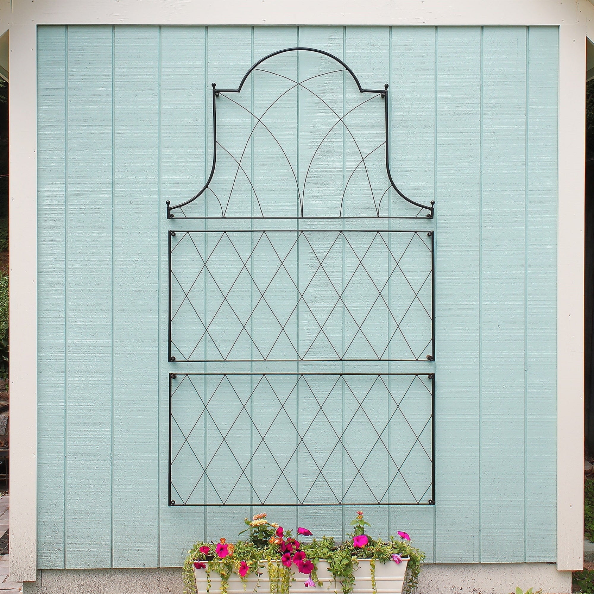For any avid gardener or plant lover, finding enough vertical space for your climbing vines, flowers, vegetables, or runners can be a challenge. Trellising is a vital gardening tool, and beautiful trellises make attractive accent pieces or focal points. The Oxford shire Trellis is a modular wall-mounted trellis, perfect for creating the classic English cottage garden look- masses of tea roses, clematis, or climbing hydrangea. The two-part trellis can be elongated by adding the additional rectangular Oxfordshire Trellis Extension, or pairs placed side by side along a wall to create a lush wall of blooms. Mounting holes and spacers are provided for each piece.