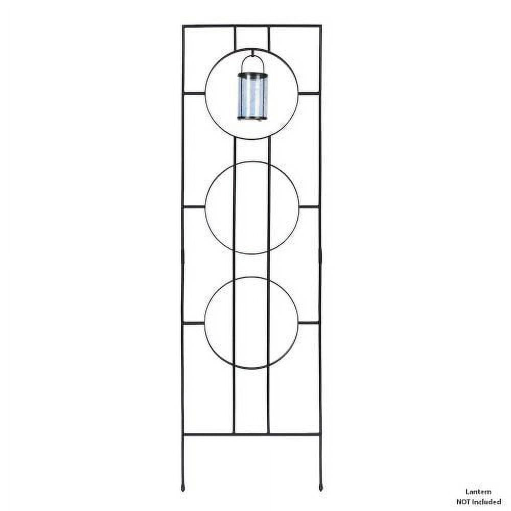 For any avid gardener or plant lover, finding attractive vertical space for your climbing vines, flowers, vegetables, or runners can be an opportunity to add a striking decorative element to the garden. The Asian-inspired Samsara Trellis has three simple rings representing the Buddhist belief in the cycle of reincarnation- life, death, and rebirth. The uppermost ring has a small hook for hanging a bell or gong, lantern or birdfeeder. Ideally styled for a modern landscape or Zen garden. Free-standing when spiked legs are pushed directly into the ground, this trellis may also be stabilized with Trellis Wall Bracket. Made of wrought iron with a smooth black powder coated finish for maximum weather resistance.