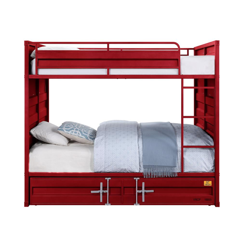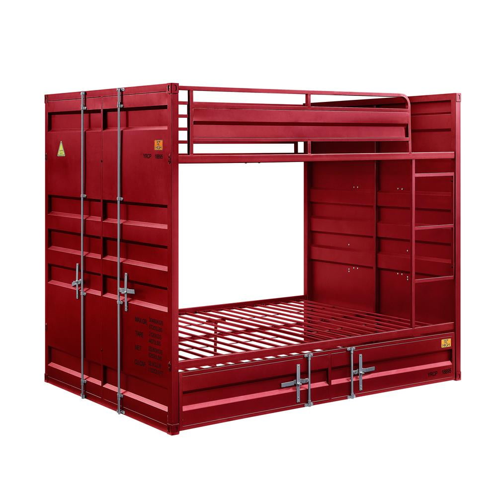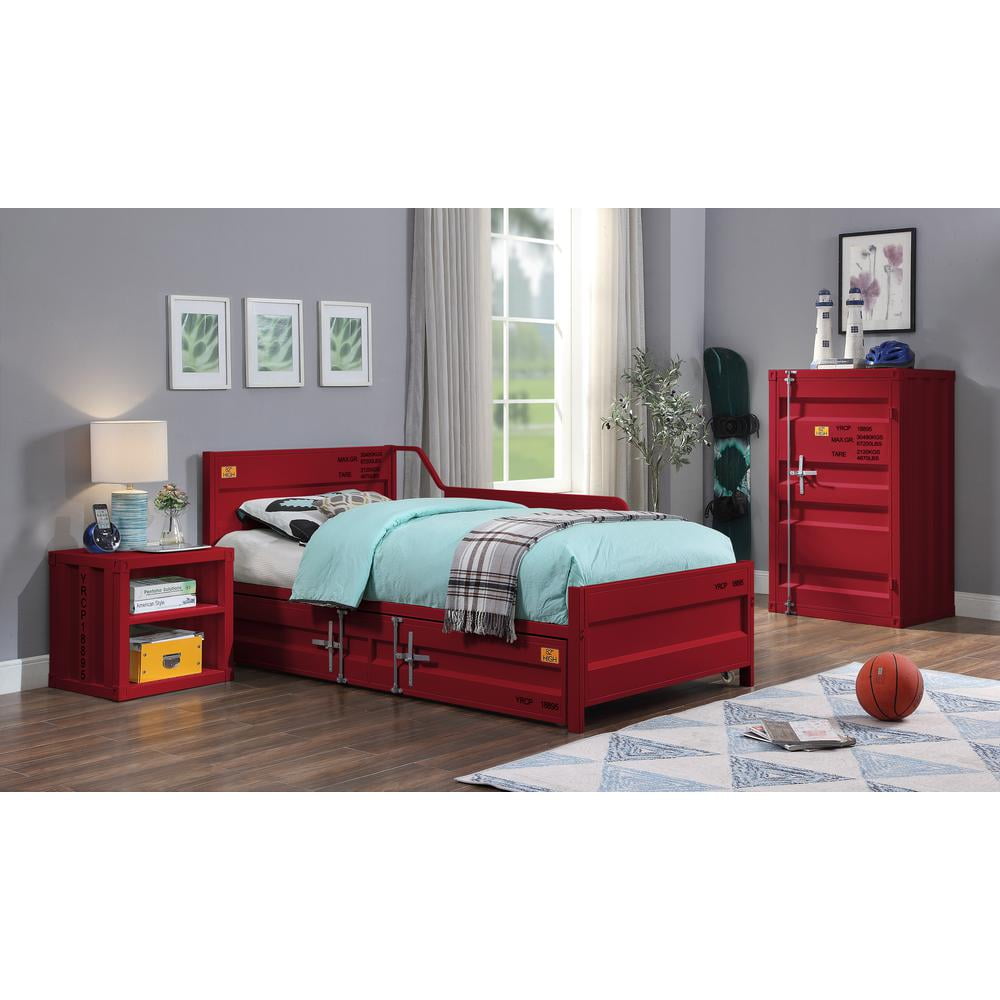 Acme Cargo Container Style Metal Twin Panel Bed in Red