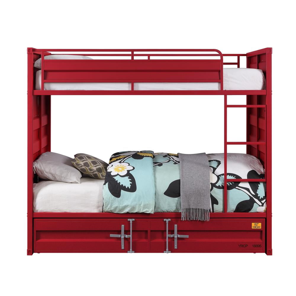 Home Beds Acme Cargo Container Style Metal Twin Panel Bed in Red