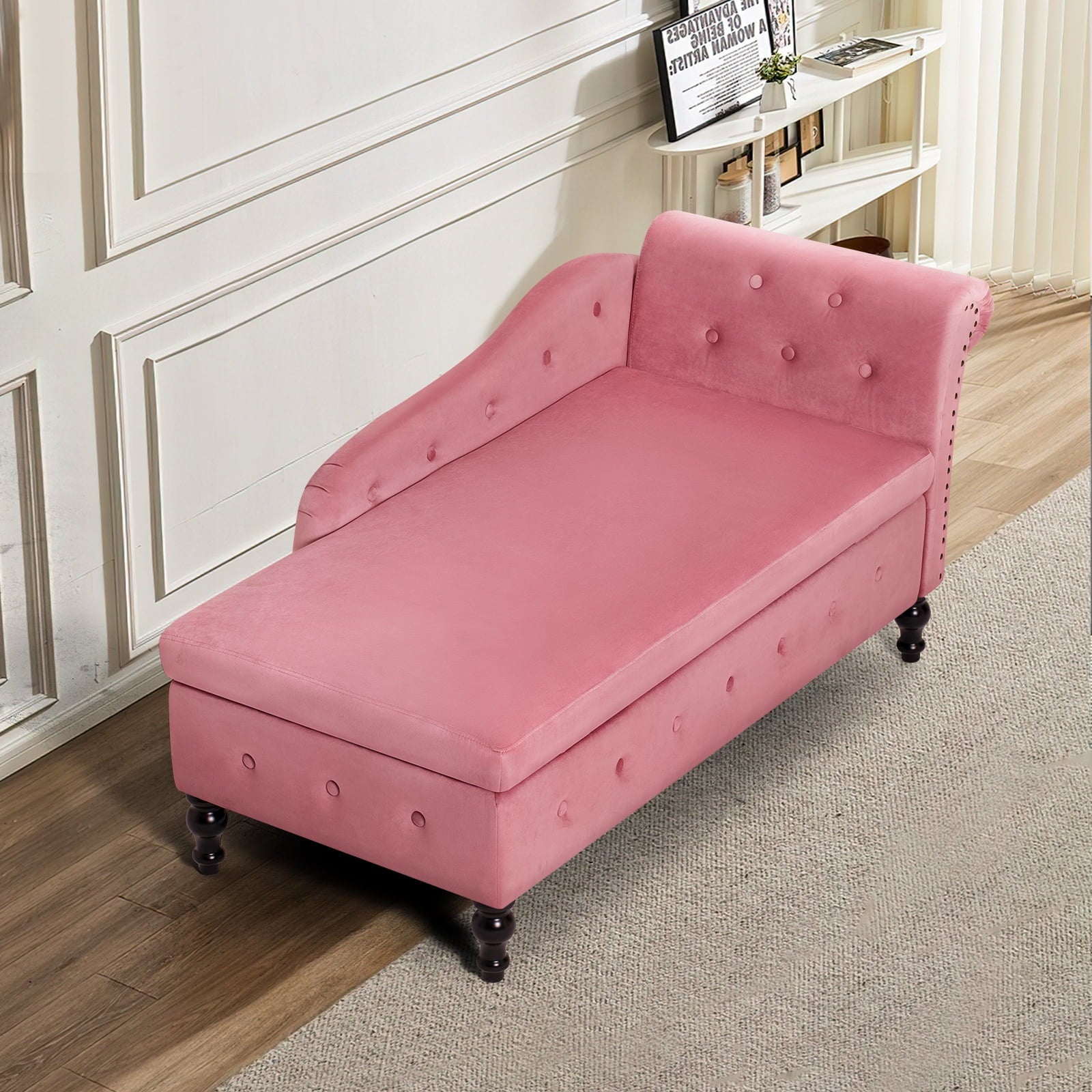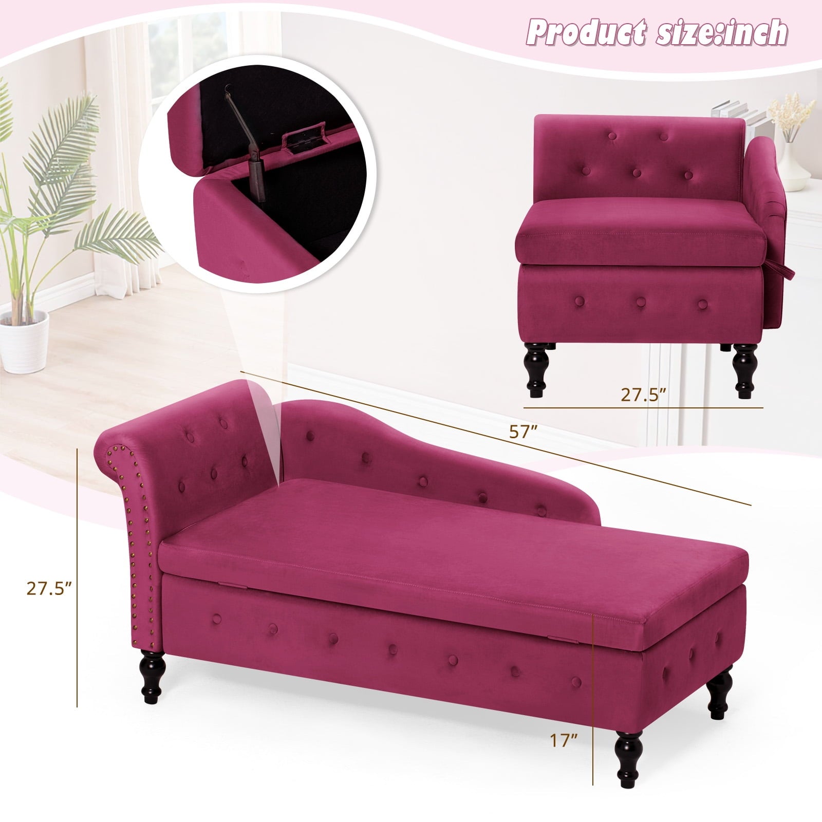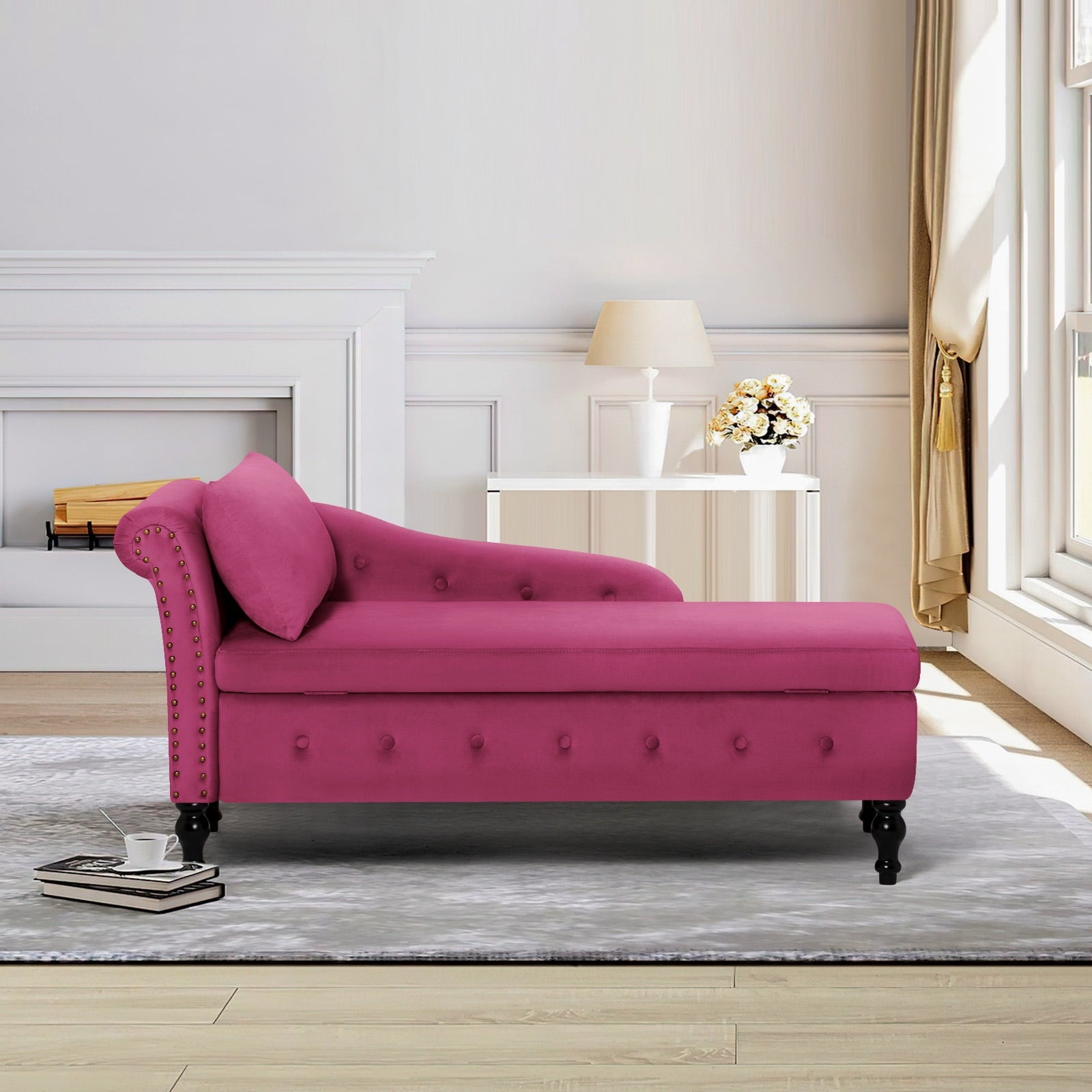 ACMEASE Chaise Lounge Chair Indoor Kids Modern Tufted Right Armrest Velvet Lumbar, Fuchsia