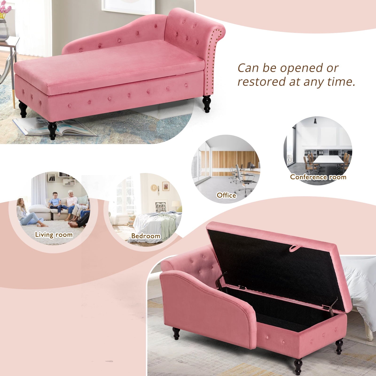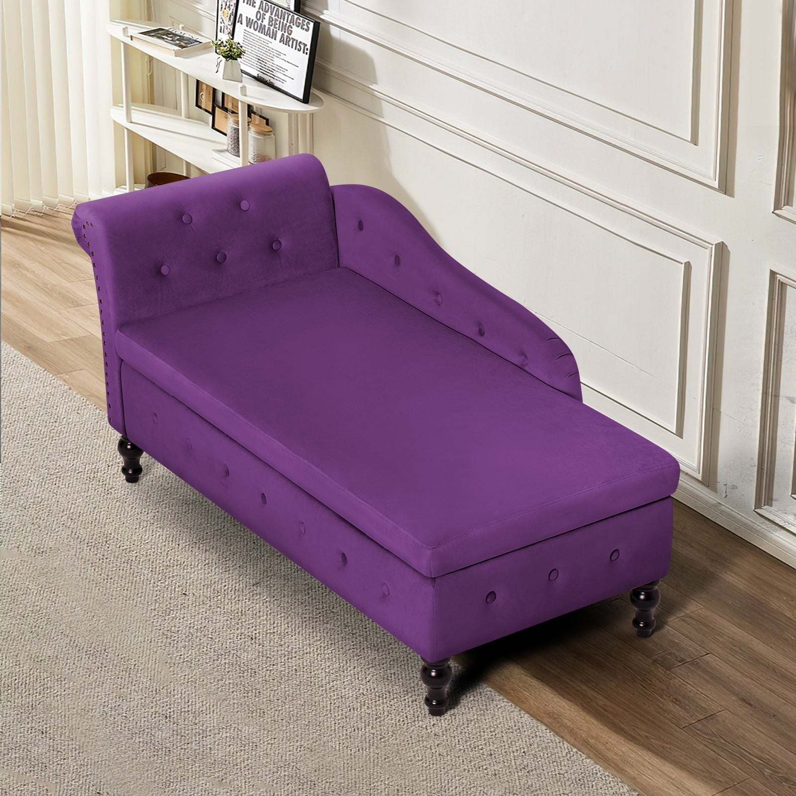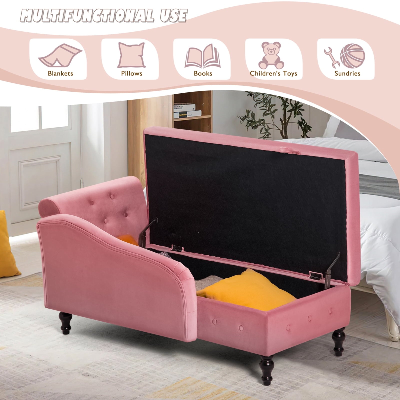 ACMEASE Chaise Lounge Chair Indoor Kids Modern Tufted Right Armrest Velvet Lumbar, Fuchsia
