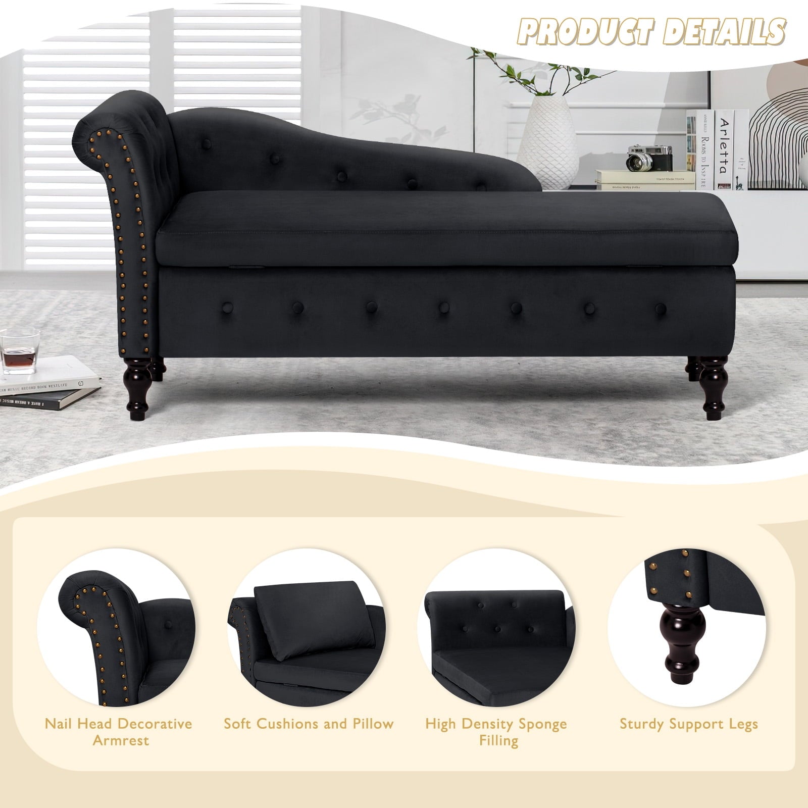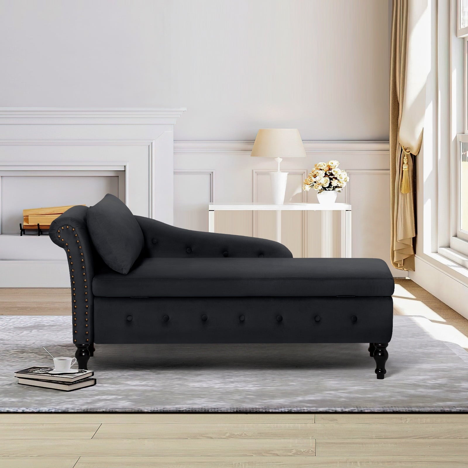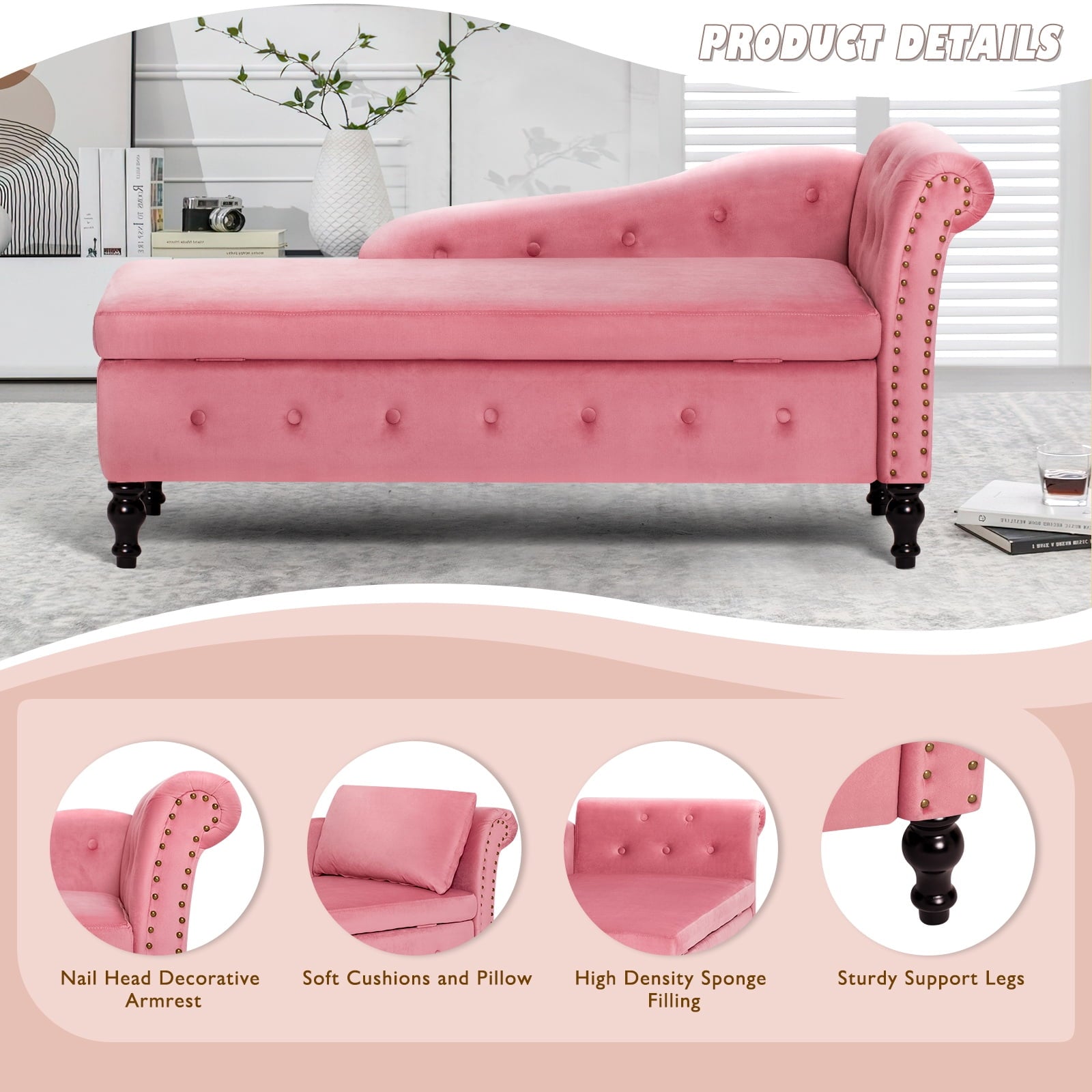 - Soft and comfortable chaise lounge with a velvet padded backrest and pillow