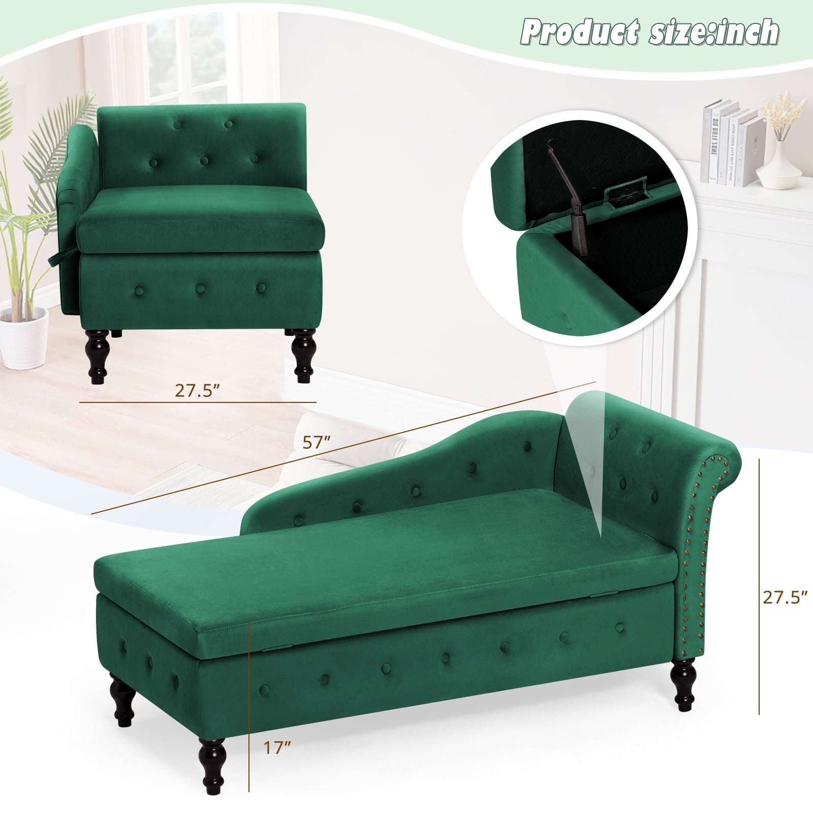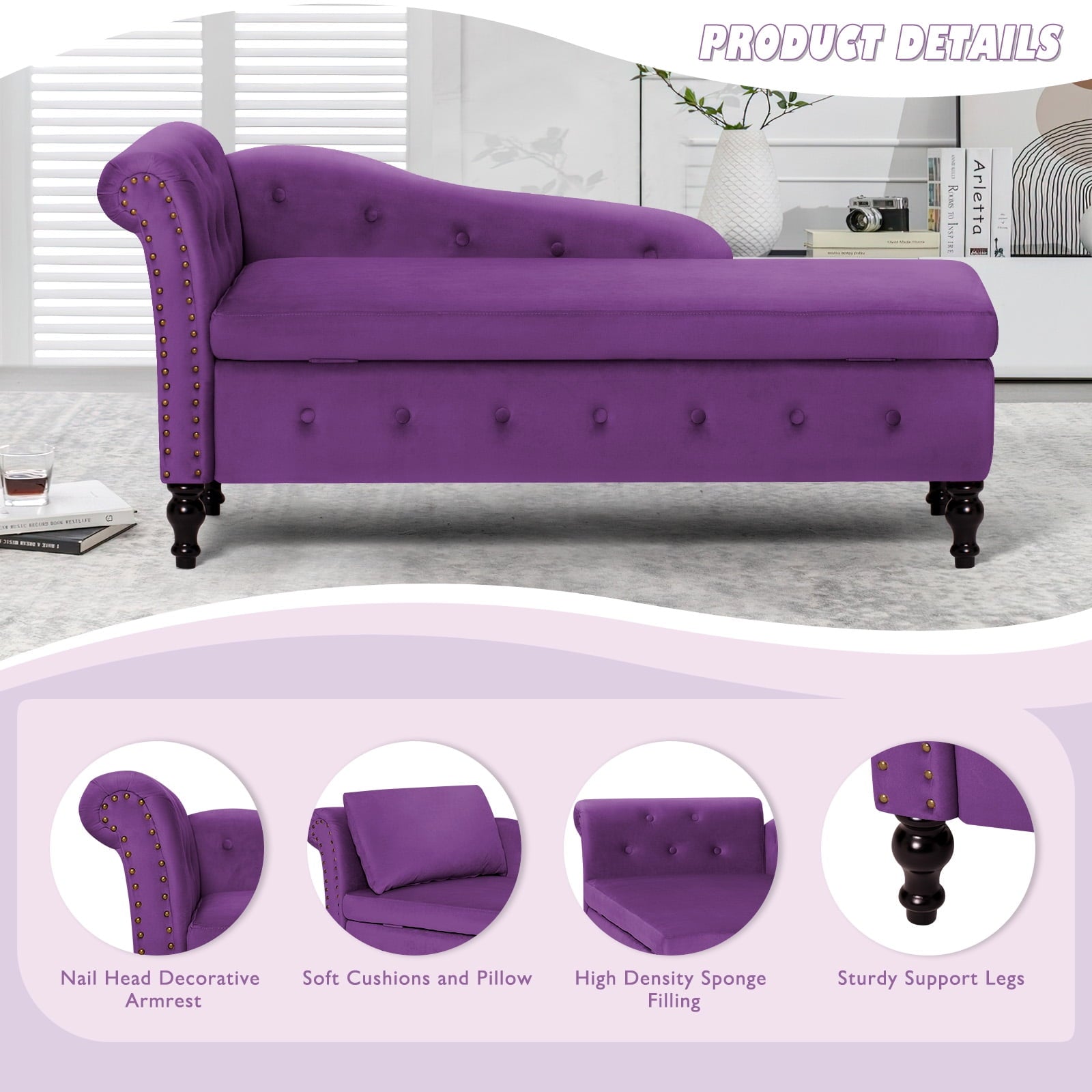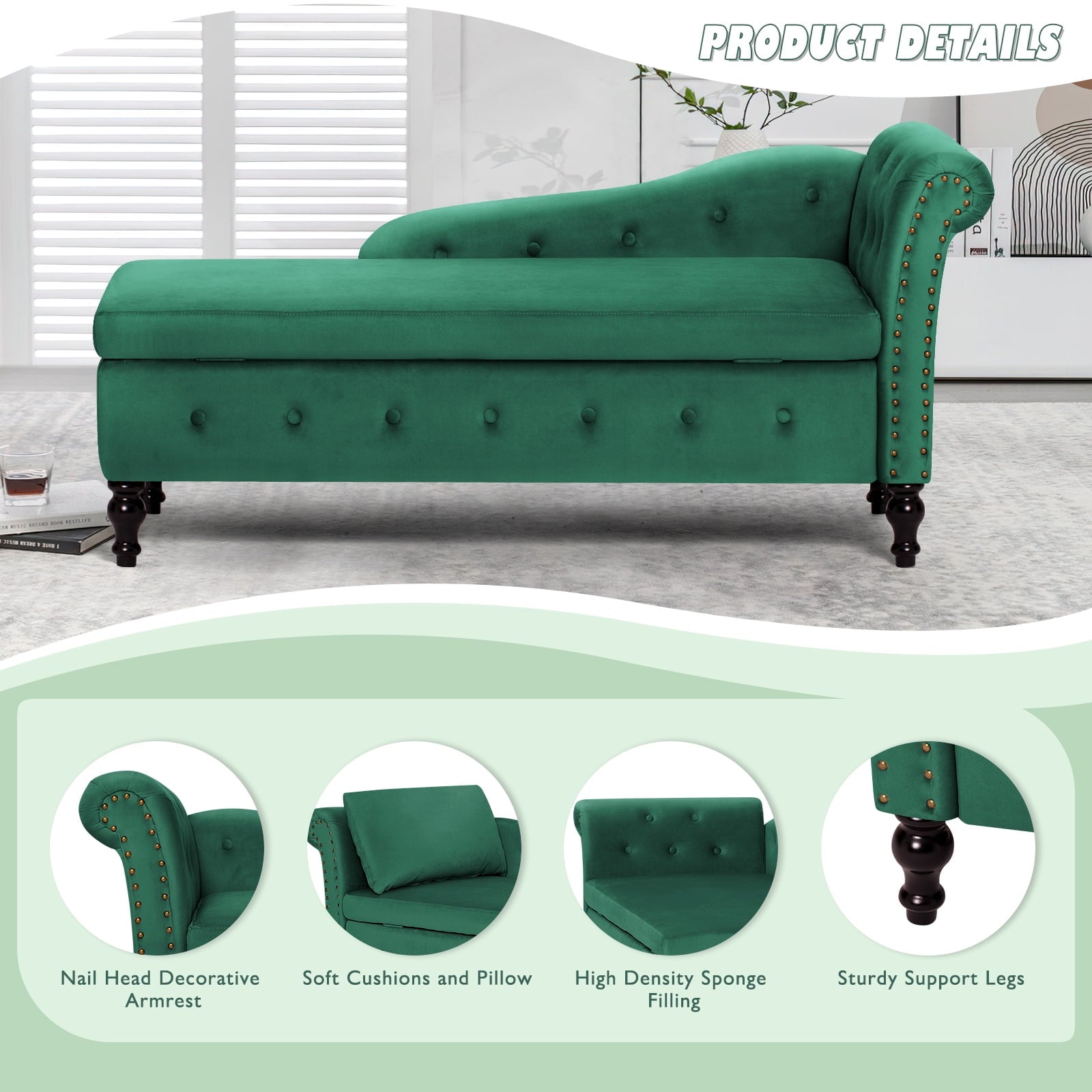 - Soft and comfortable chaise lounge with a velvet padded backrest and pillow