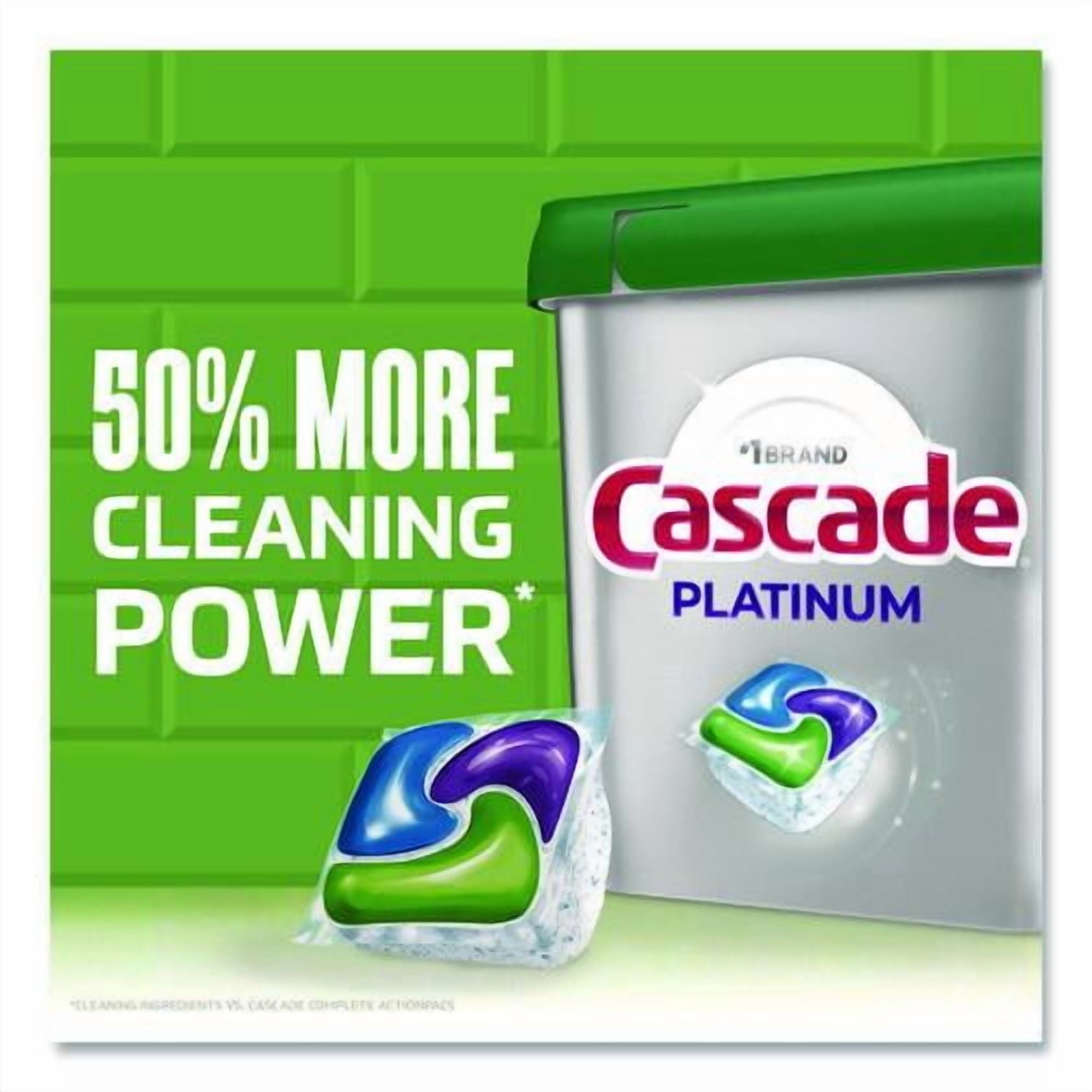Cascade ActionPacs dishwasher detergent powers away greasy residue for sparkling dishes. That’s because every ActionPac combines the scrubbing power of Cascade and the grease-fighting power of Dawn dishwashing liquid to leave your dishes virtually spotless. Cascade ActionPacs are conveniently premeasured with no finicky wrapping-simply load your dishwasher, pop in an ActionPac, and go! Platinum ActionPacs®-With a premium advanced triple action formula. Application: Machine Dishwashing; Applicable Material: Ceramics; Enamel; Fiberglass; Glass; Metal; Plastic; Chemical Compound: Sodium Carbonate; Sodium Silicate; Enzymes; Phosphate Free; Dirt Types: Cooked-On Grease; Food Particles; Oils; Organic Matter; Soil. Order of 2 Packs | 59 per Pack