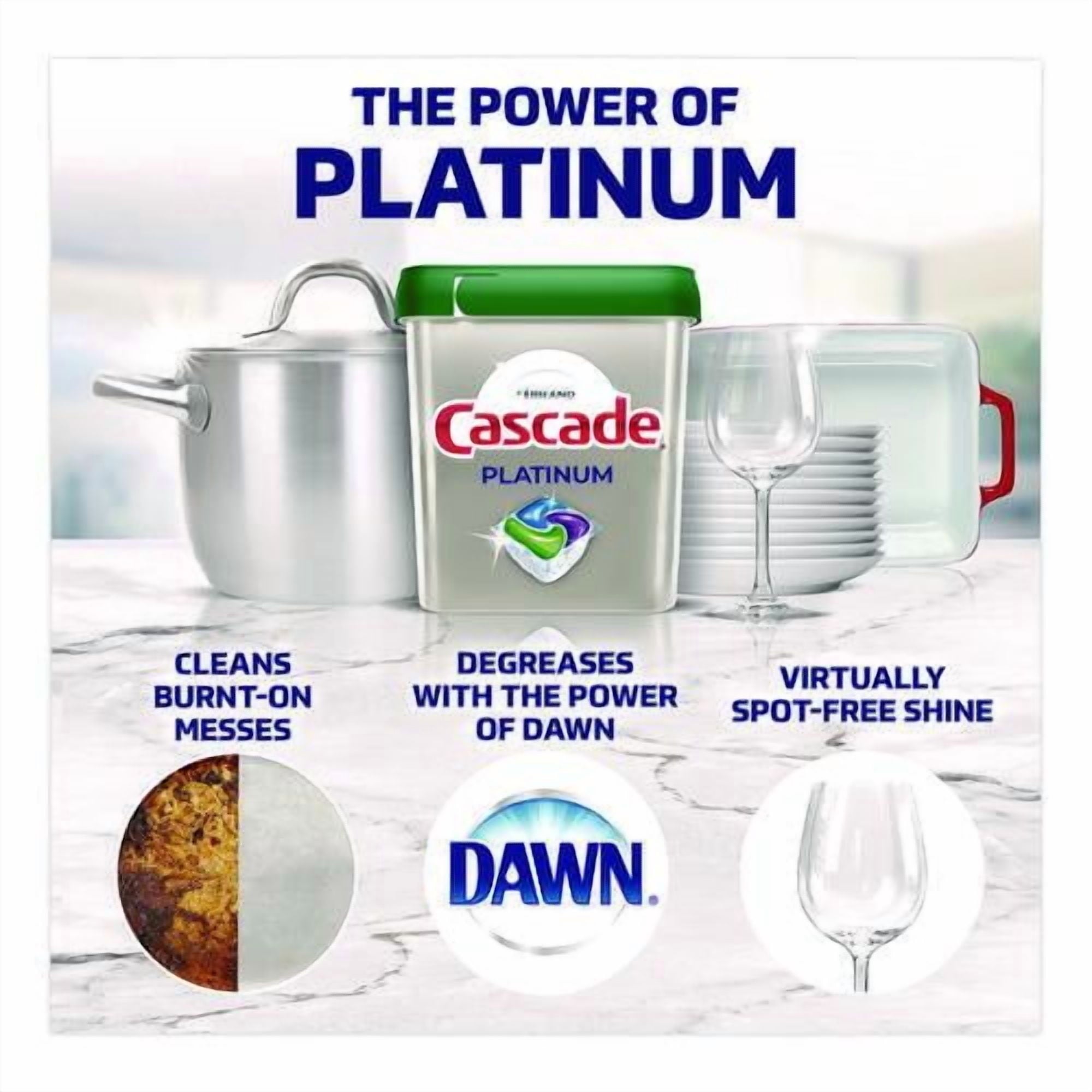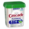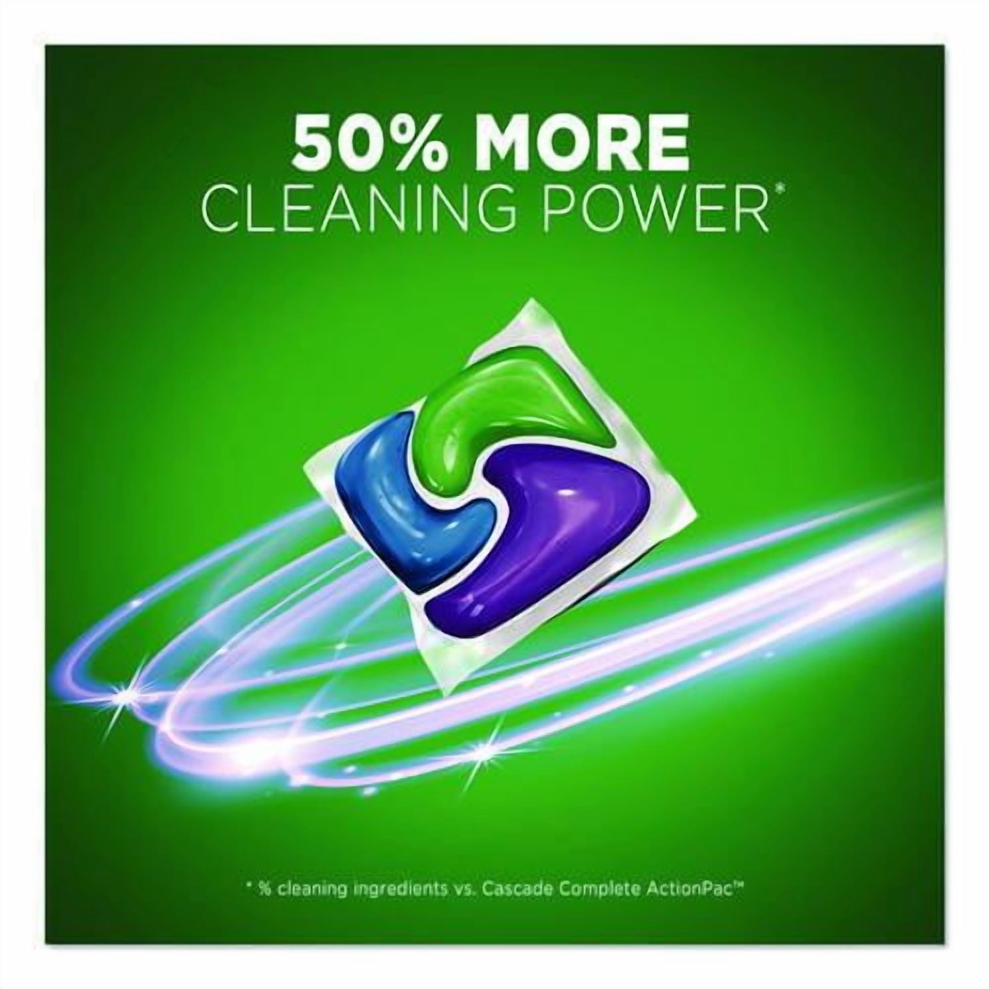 Cascade ActionPacs dishwasher detergent powers away greasy residue for sparkling dishes. That’s because every ActionPac combines the scrubbing power of Cascade and the grease-fighting power of Dawn dishwashing liquid to leave your dishes virtually spotless. Cascade ActionPacs are conveniently premeasured with no finicky wrapping-simply load your dishwasher, pop in an ActionPac, and go! Platinum ActionPacs®—Cleans burnt-on messes in just one wash. Application: Machine Dishwashing; Applicable Material: Ceramics; Enamel; Fiberglass; Glass; Metal; Plastic; Dirt Types: Cooked-On Grease; Food Particles; Oils; Organic Matter; Soil; Scent: Fresh. Order of 2 Packs | 74 per Pack