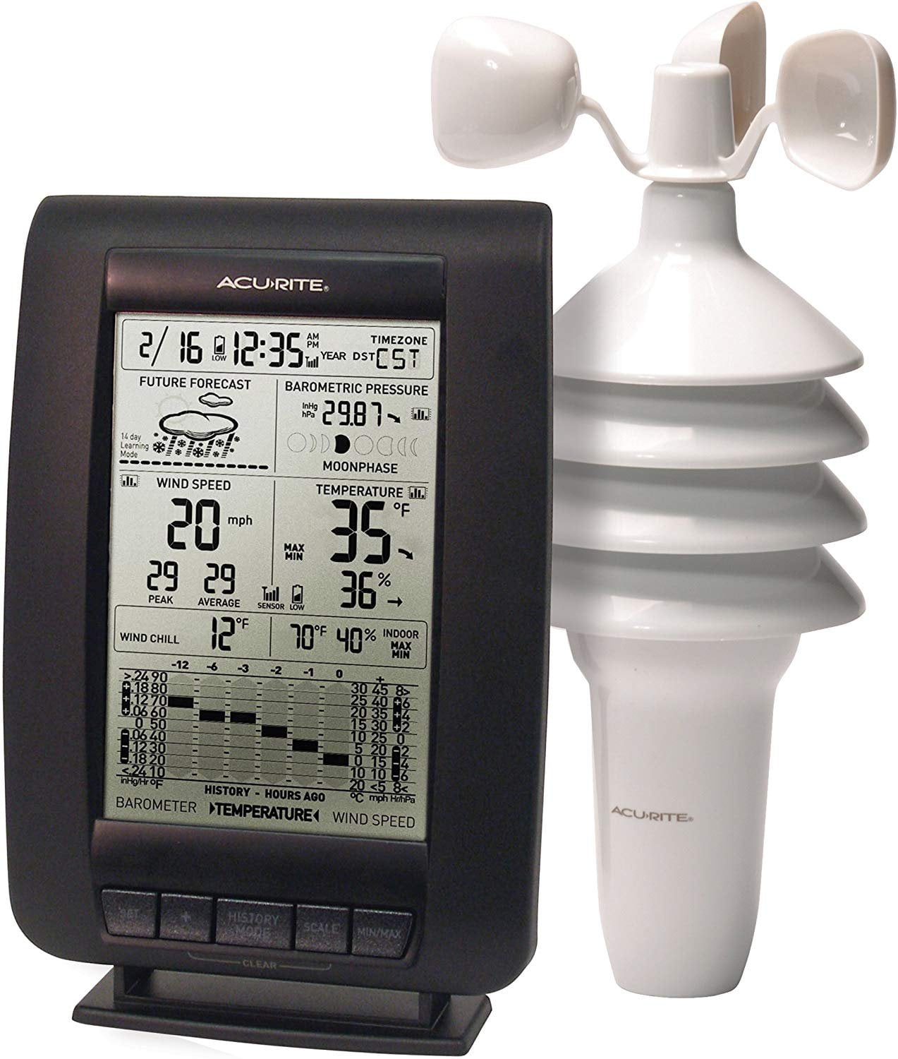 00634A2 Features: -AcuRite collection. -Moon phase. -Includes digital display, wireless sensor, mounting bracket, tabletop stand, mounting hardware, instruction manual. -Indoor temperature range: 32 to 122 F and 0 C to 50 C. -Outdoor temperature range: -40 to 158 F and -40 C to 70 C. -Temperature accuracy: up to +/- 4F. Product Type: -Weather Station. Overall Height: -13″. Overall Width: -2.7″. Overall Depth: -10.5″. Wireless: -Yes. Digital Display: -Yes. Clock: -Yes. Dimensions: -Display dimensions: 8″ H x 5.4″ W x 1.9″. -Outdoor sensor dimensions: 9.25″ H x 5.3″ W x 5.3″ D. Overall Product Weight: -1 lbs. Overall Height – Top to Bottom: -13″. Overall Width – Side to Side: -2.78″. Overall Depth – Front to Back: -10.5″.