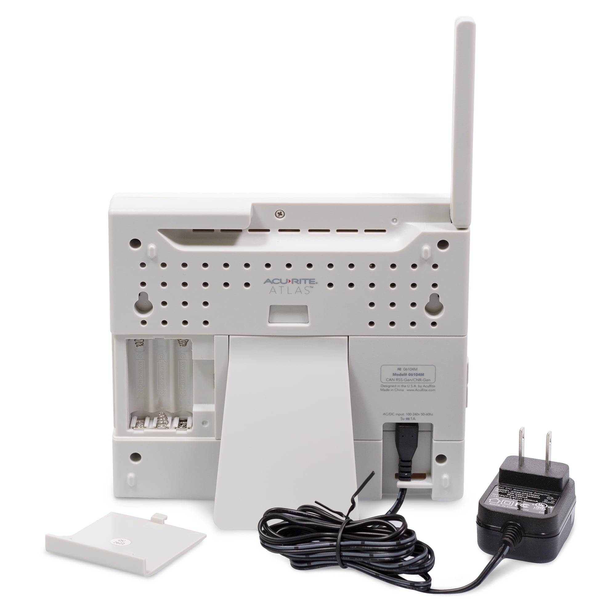 The AcuRite Atlas® Weather Station with White HD Display and Built-In Barometer provides indoor/outdoor temperature and humidity, wind speed and direction, rainfall measurements, and UV index readings. Perfect for home, office, or business use, this personal home weather station allows you to monitor your backyard weather conditions from the comfort of the indoors. Protect your family, house, and garden with minute-by-minute updates in weather changes, including the outdoor temperature, humidity, wind speed and direction (thanks to the anemometers and wind vane), rainfall, and UV index. Even though this display provides the date and time, it is much more than a typical weather clock; able to measure and exhibit indoor temperature, humidity, barometric pressure, heat index, dew point, and wind chill information. Create your own weather center with indoor and outdoor data that combines to provide a hyperlocal weather forecast 12 hours from your current conditions â more high-tech than a storm glass and a feature only the best weather station can boast! This personal weather station gives you the ability to create customized, programmable alarms when critical conditions change so you can identify emerging weather events and take necessary action. When equipped with a lightning sensor (sold separately), the AcuRite Atlas measures lightning strikes detected up to 25 miles away. A perfect gift for Christmas, Fatherâs Day, and Birthdays, this weather tech gadget is perfect for smart-home optimization. The outdoor sensor takes four (4) AA batteries (not included), and the HD display is AC powered and uses three (3) AAA batteries for backup purposes only (batteries not included). This weather station comes with a one-year limited warranty.