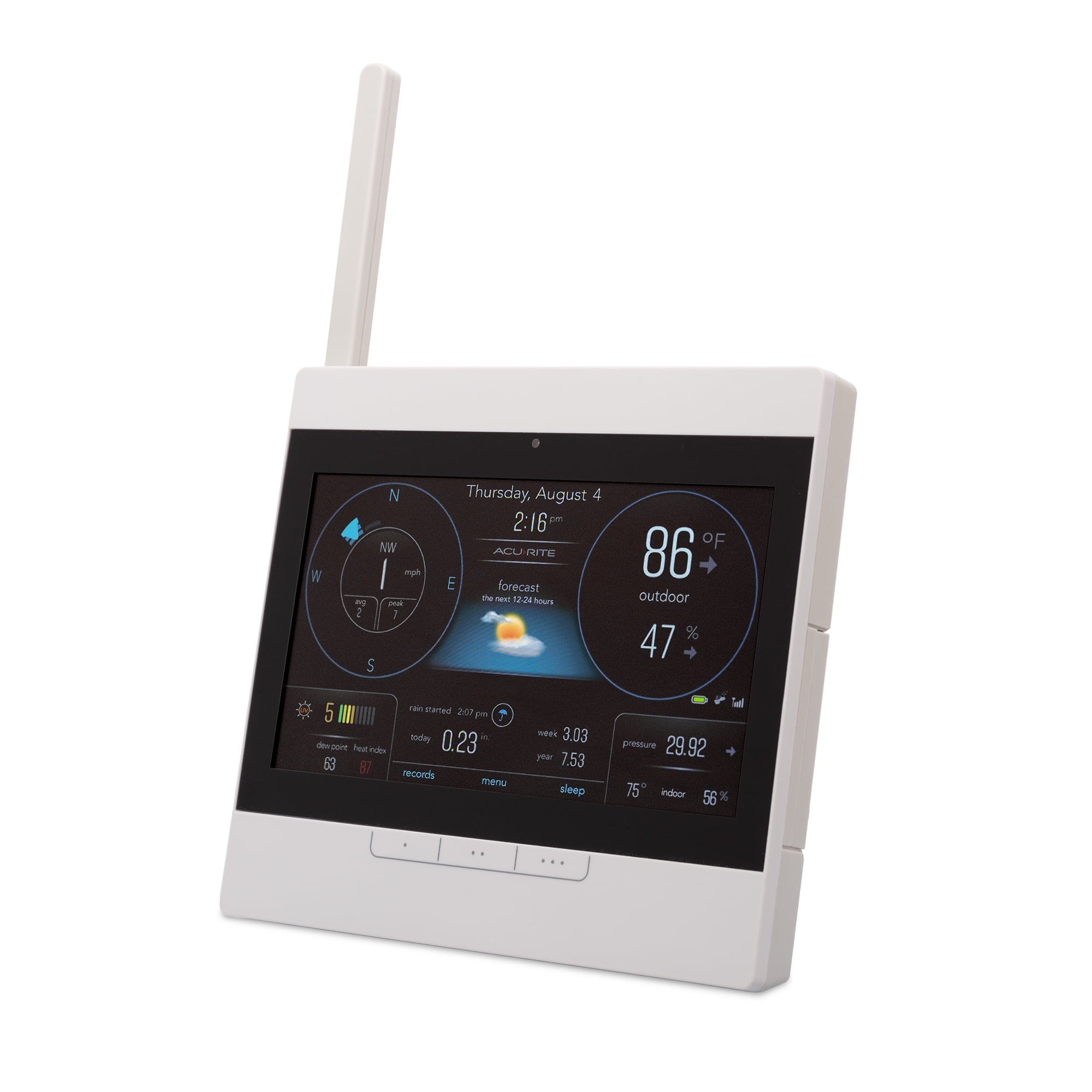 - Comprehensive and Historical Weather Information: Includes trend arrows for temperature and humidity; heat index, dew point, and wind chill information; and daily, weekly, monthly, and yearly rainfall data
