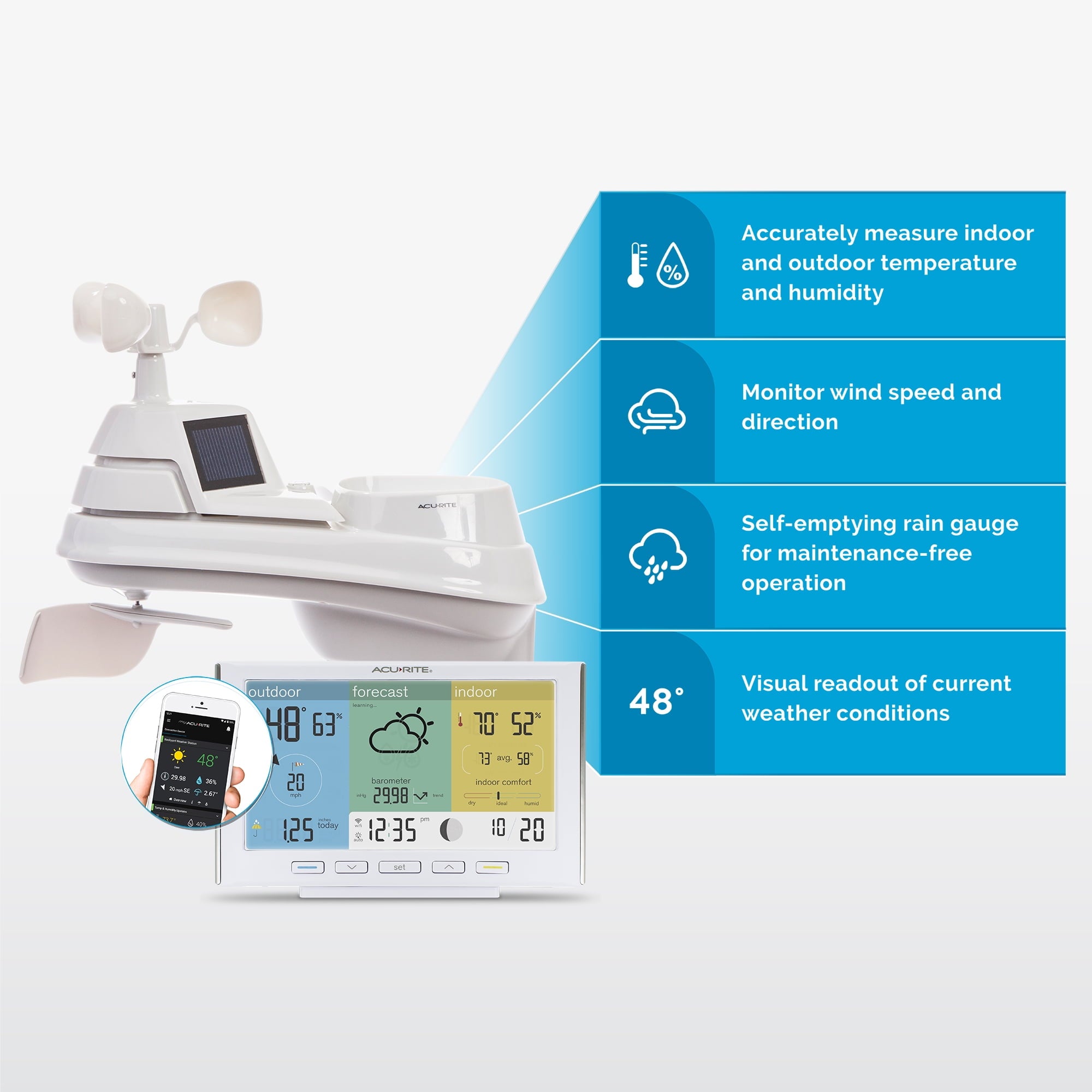 - Get Weather Alerts Anywhere with My AcuRite: Simplify the experience with a direct Wi-Fi signal to allow for remote monitoring – no hub needed