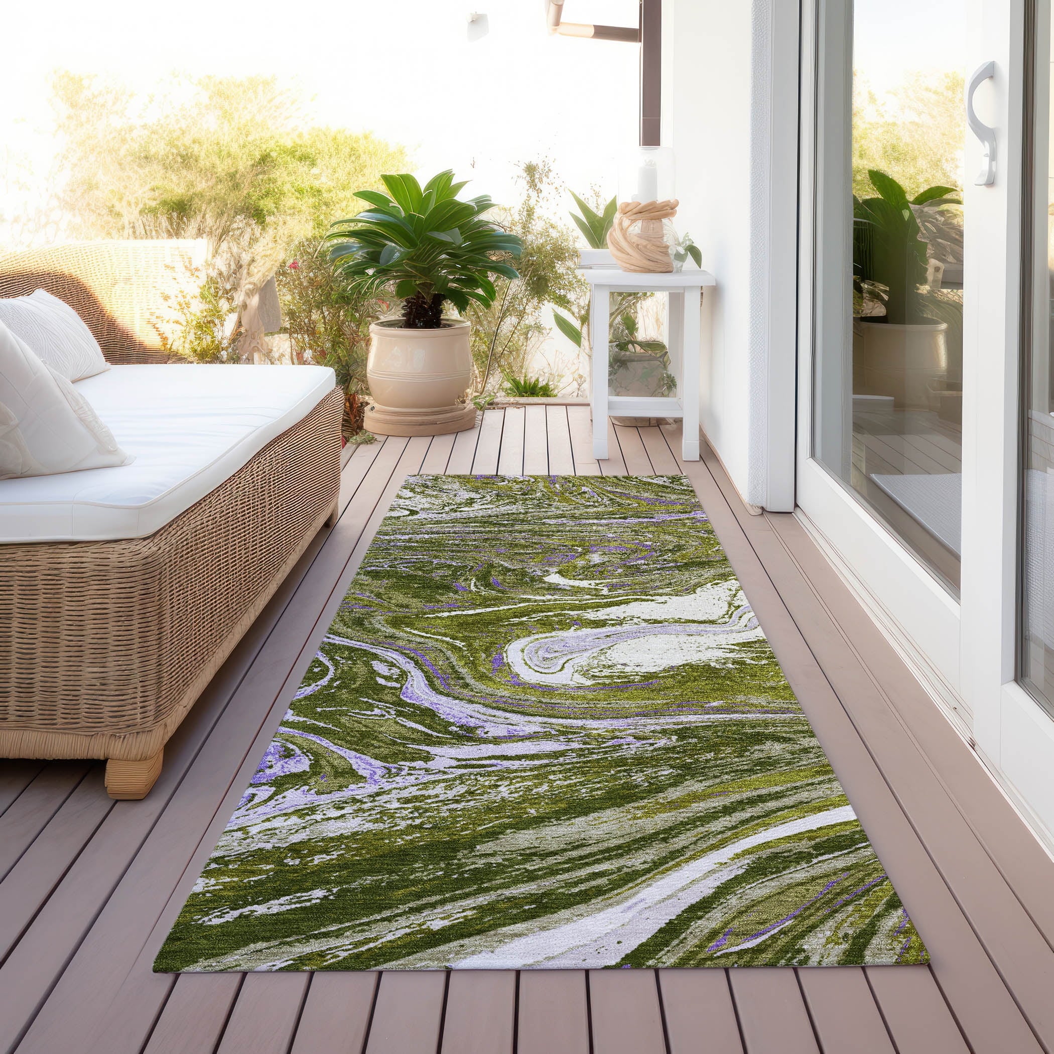 - UV Stabilized For Indoor or Outdoor Use. All rugs exposed to long periods of intense and direct sunlight can experience loss of color over time. Our rugs perform best in covered outdoor areas and uncovered areas with lower hours of direct sunlight.