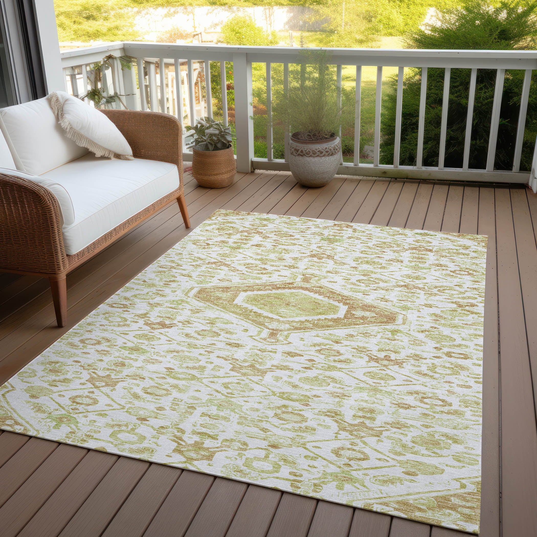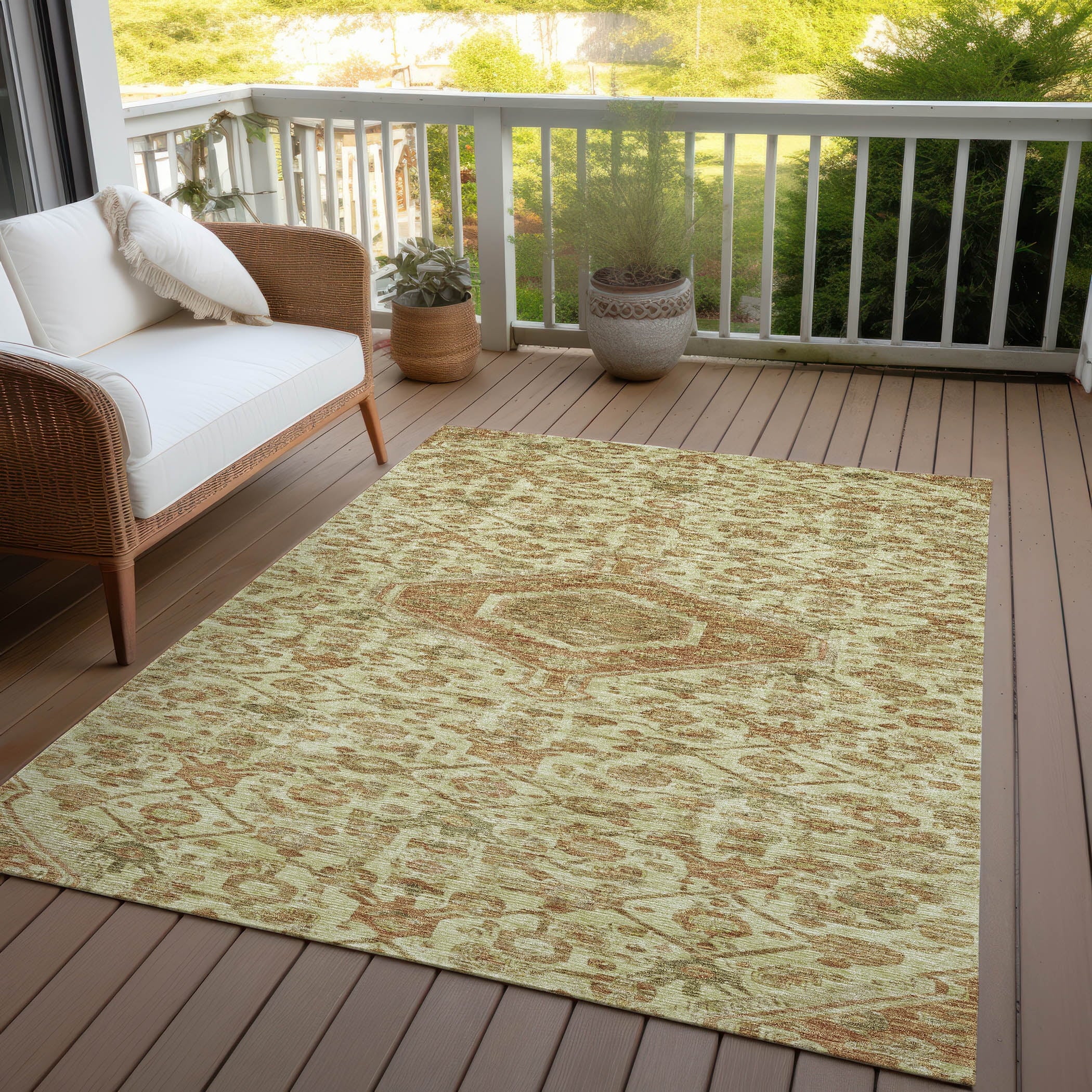 The captivating design of this area rug showcases a prominent center medallion, complemented by smaller medallions around it. The traditional style and medallion pattern create an elegant ambiance in any room. Perfect for indoor and outdoor settings, thanks to its UV stabilization. Its ultra-thin construction ensures easy placement, and it’s machine-washable for simple maintenance. Ideal for homes with kids and pets, offering both durability and charm.