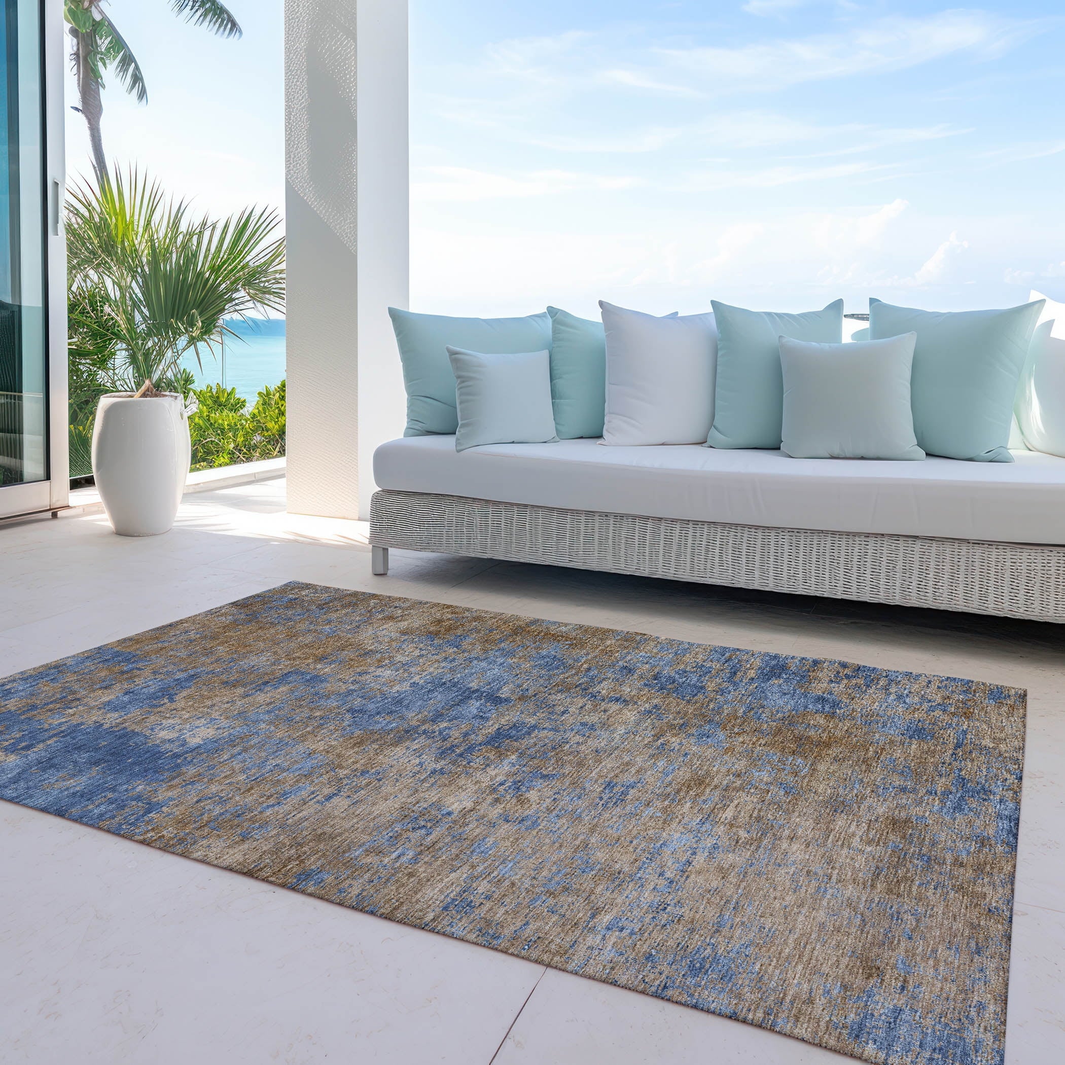 Elevate your interior or exterior space with our stylish area rug, boasting an abstract pattern with modern flair. Ideal for transitional decor, it’s UV stabilized to prevent fading and thin enough to fit anywhere without inconvenience. Machine-washable and family-friendly, it offers practical elegance that keeps your home looking great.