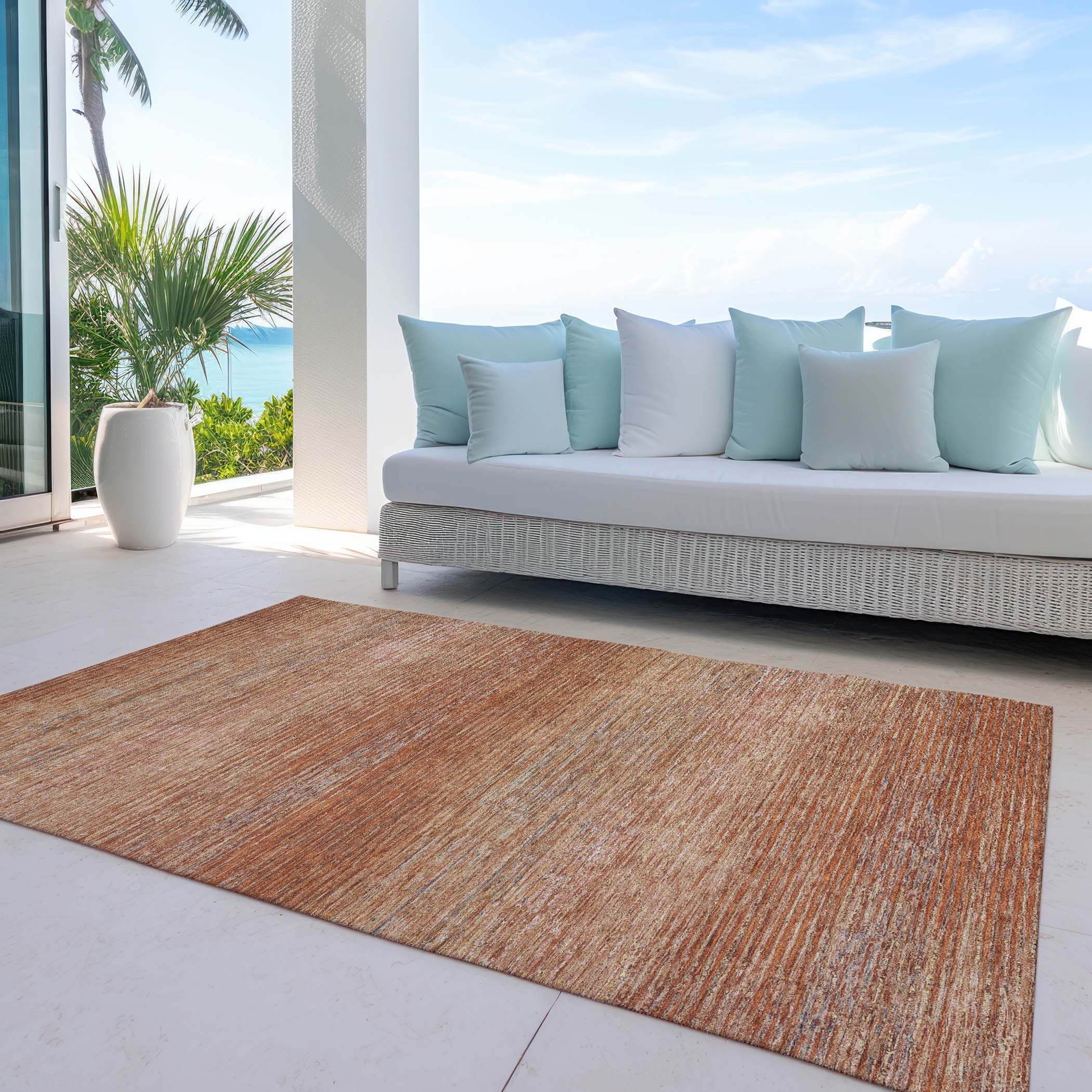 Addison Rugs Chantille Indoor/Outdoor Transitional Stripes Copper Washable Rectangle Rug, 10' x 14'