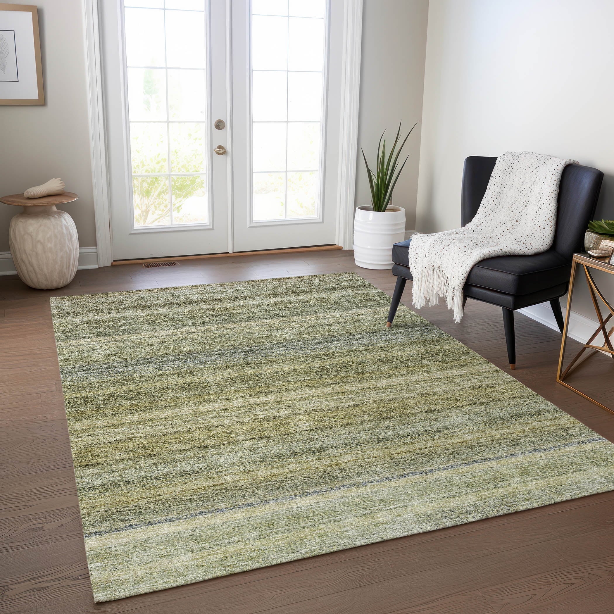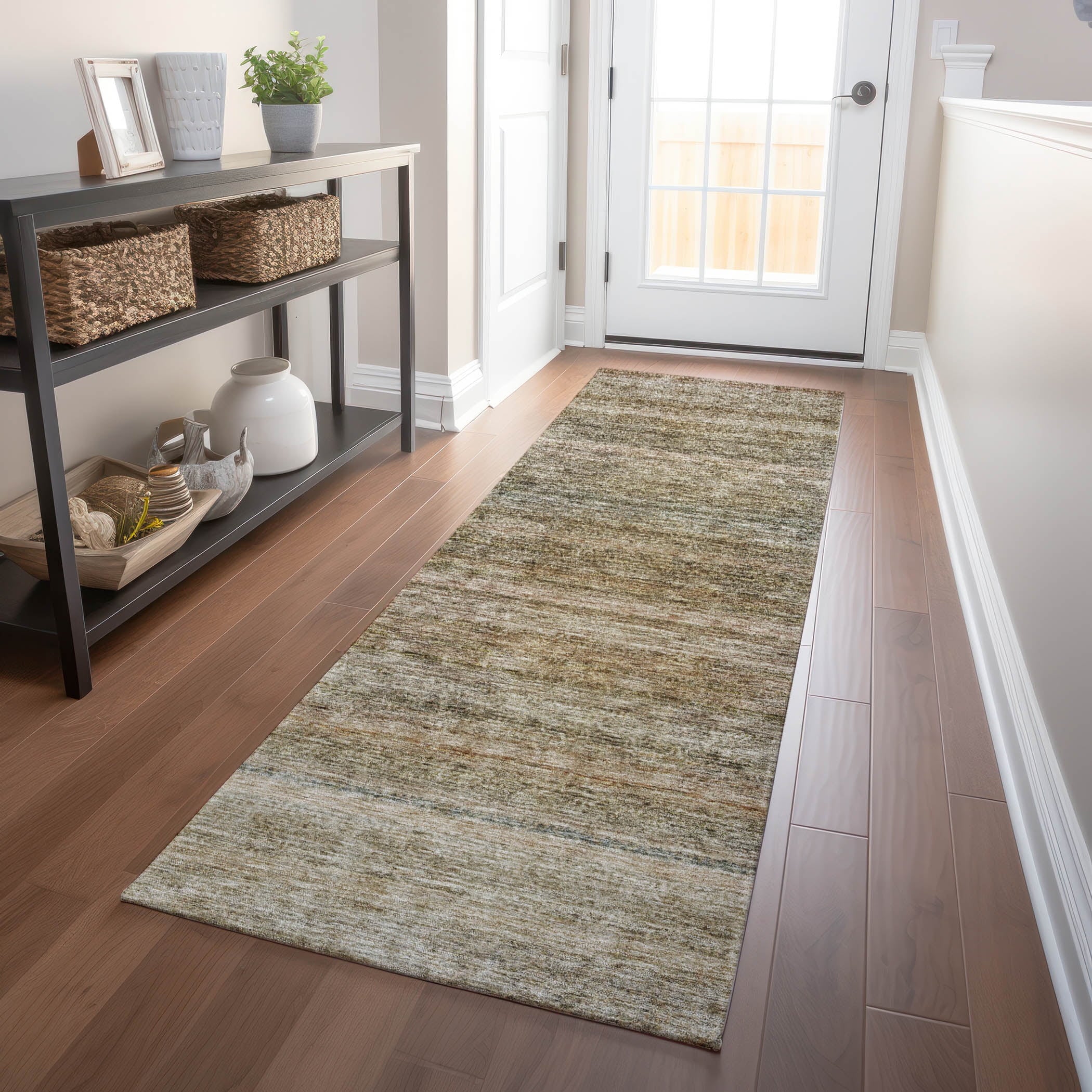 Add a touch of contemporary style to your space with our area rug, featuring small motifs in horizontal lines. Ideal for transitional decor, this rug is UV stabilized for use indoors or outdoors. Its ultra-thin construction allows for effortless placement, and the machine-washable design ensures it’s perfect for family and pet-friendly homes.