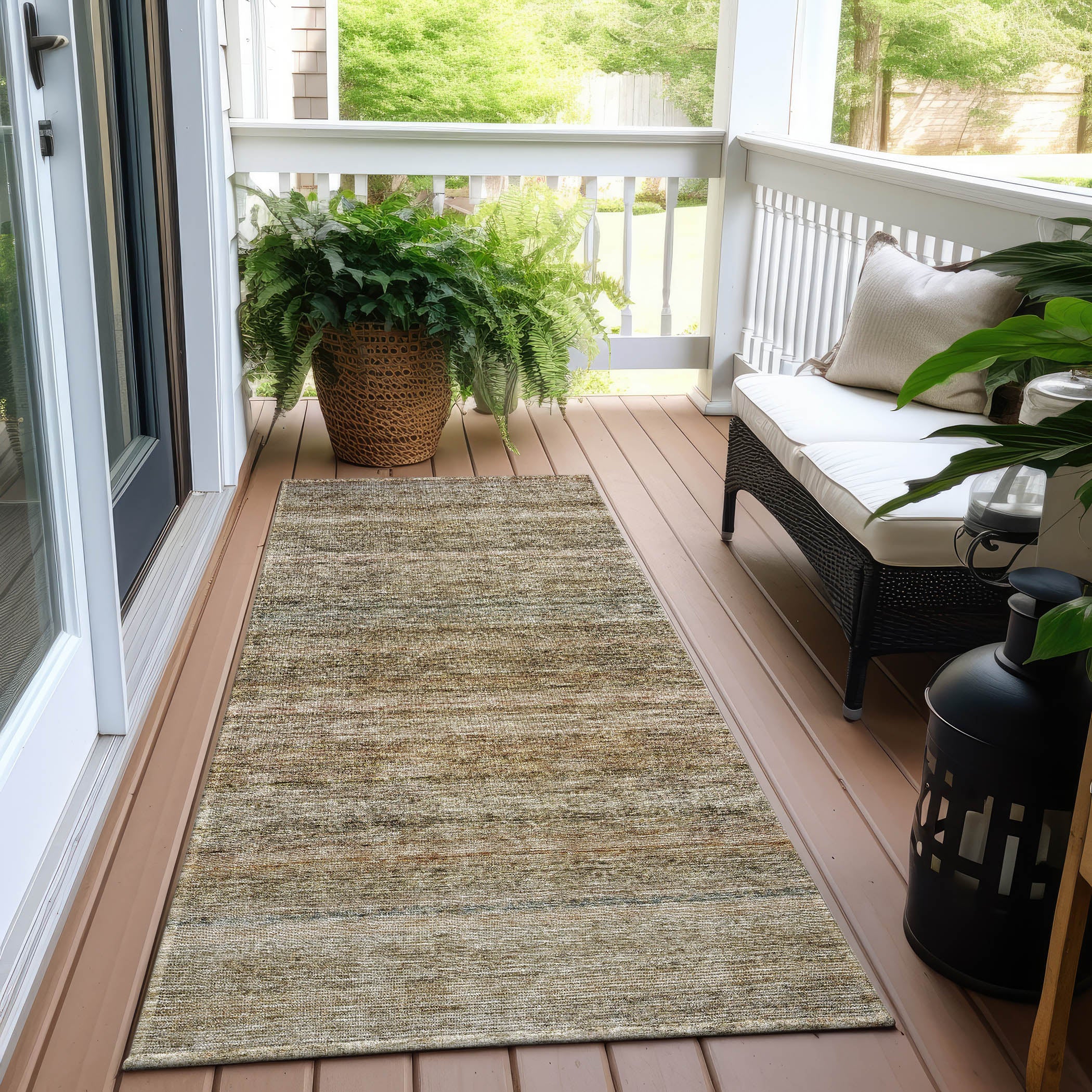 - UV Stabilized For Indoor or Outdoor Use. All rugs exposed to long periods of intense and direct sunlight can experience loss of color over time. Our rugs perform best in covered outdoor areas and uncovered areas with lower hours of direct sunlight.