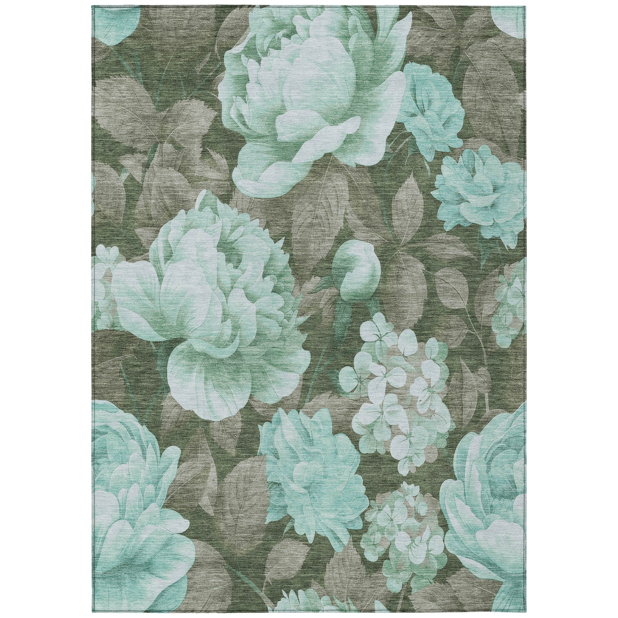 Addison Rugs Chantille Indoor/Outdoor Transitional Floral Seafoam Washable Rectangle Rug, 10' x 14'