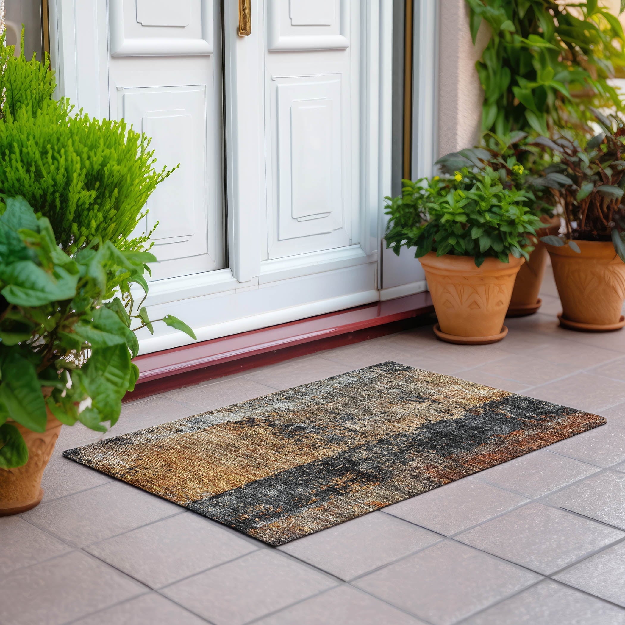 Discover the perfect blend of style and functionality with our area rug, featuring large horizontal stripes with a grunge effect. This transitional rug is UV stabilized to endure any setting, whether indoors or outdoors. Its ultra-thin profile allows for seamless integration into any space, and the machine-washable feature ensures it’s family and pet-friendly.