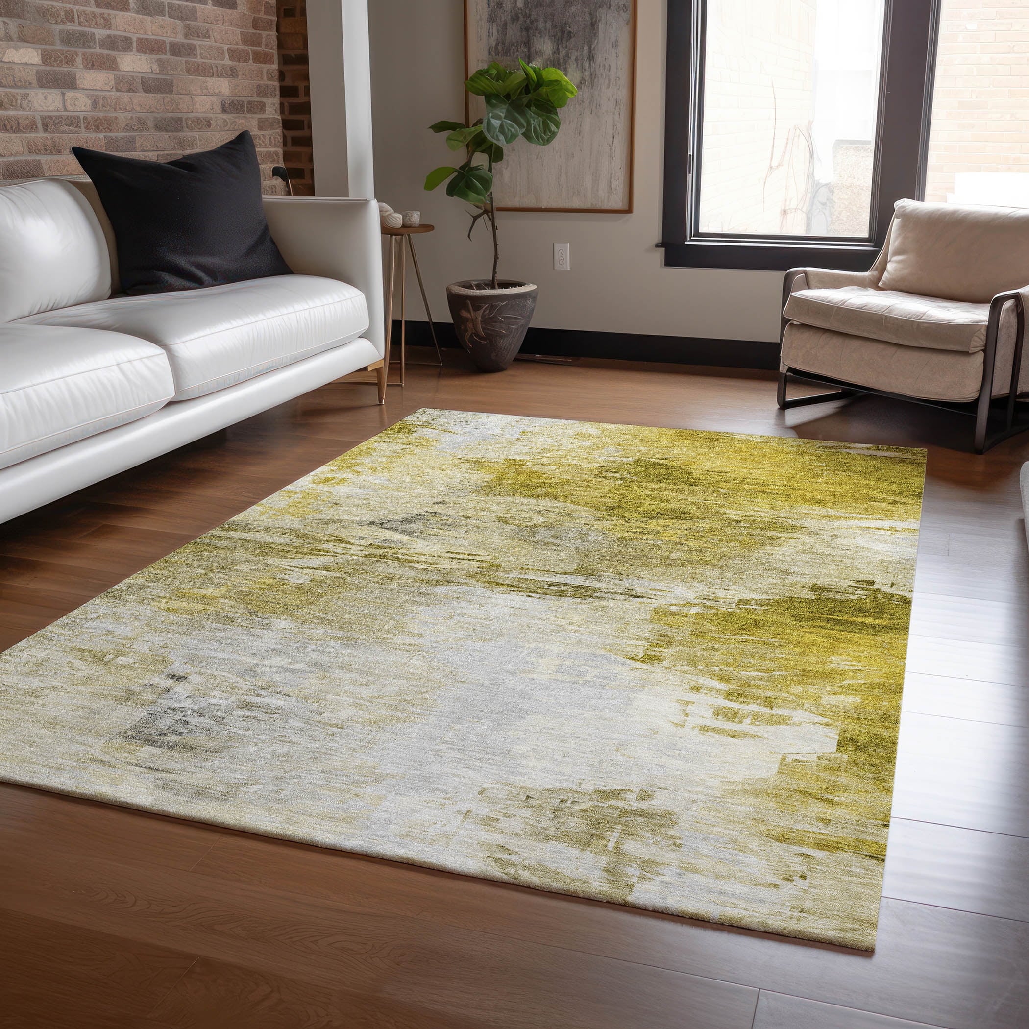 Transform your living space with our transitional rug, where fragmented shapes come together in a unique and modern design. This innovative aesthetic offers a new twist to any room’s décor. The rug is UV-stabilized, ensuring its color vibrancy whether used indoors or outdoors. Featuring ultra-thin construction and an incorporated non-skid backing, there’s no need for an additional rug pad. Plus, it’s machine-washable and perfect for families and pets.