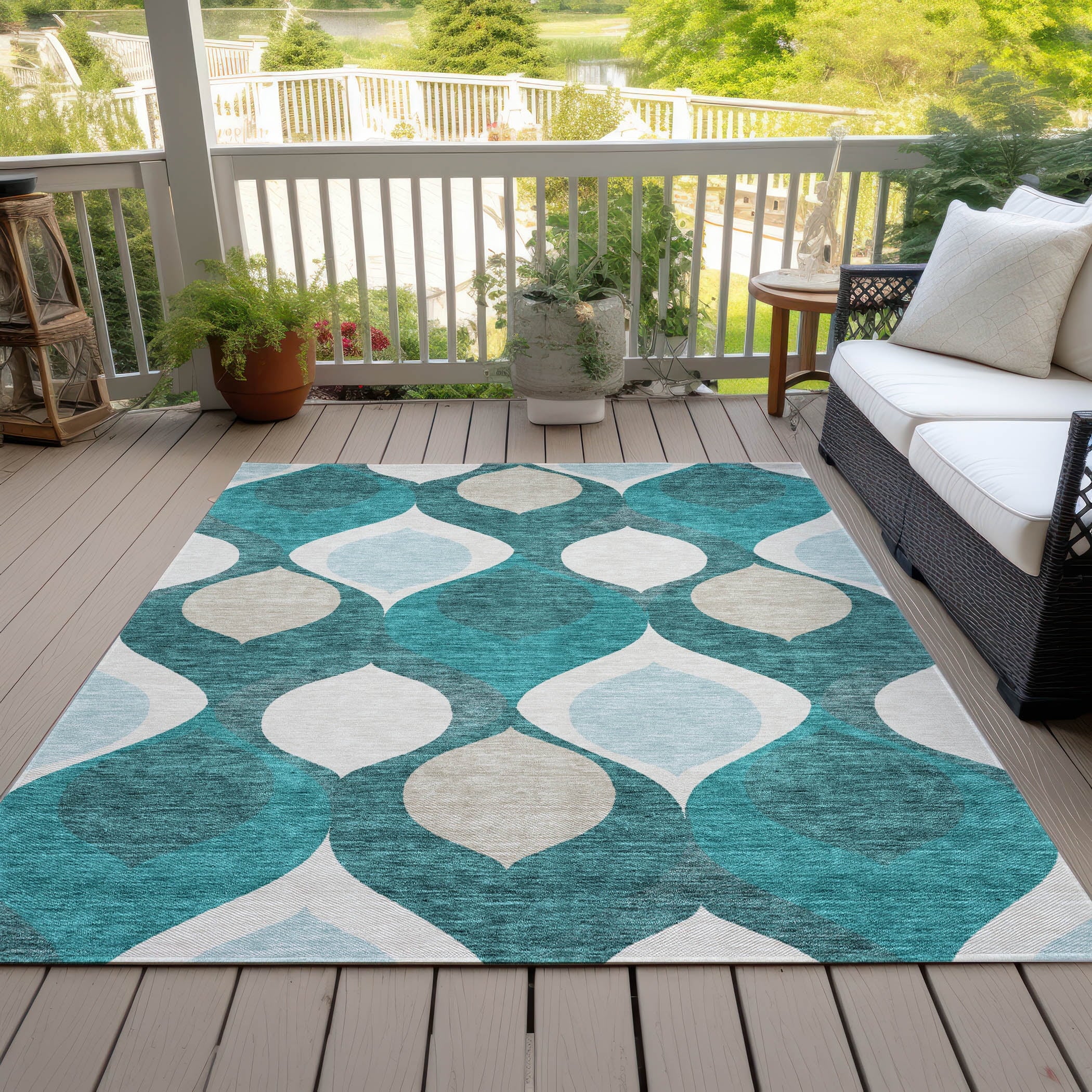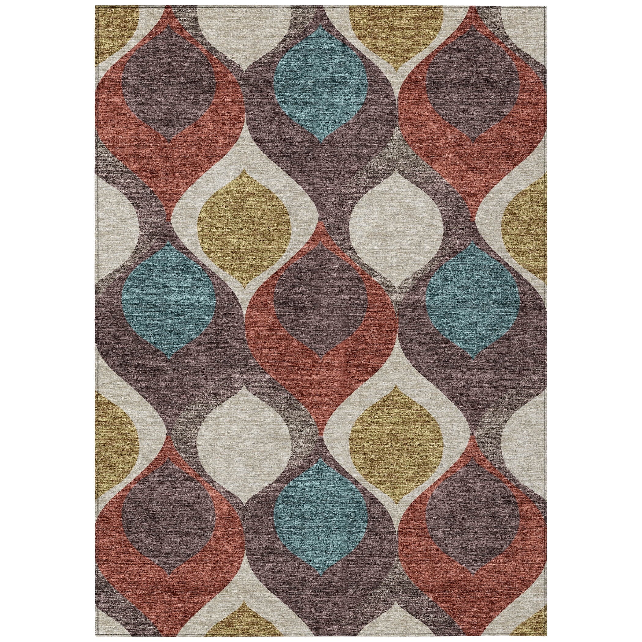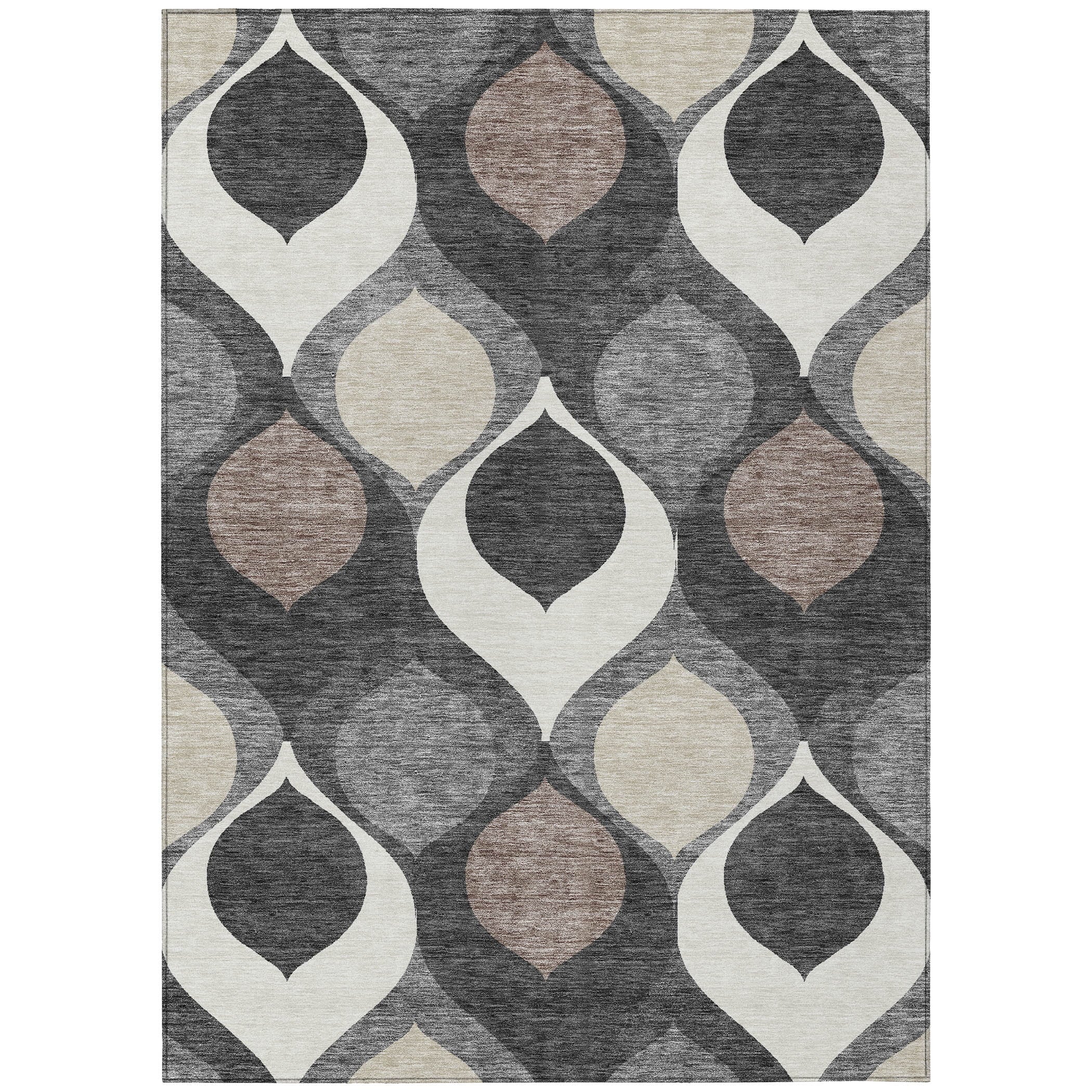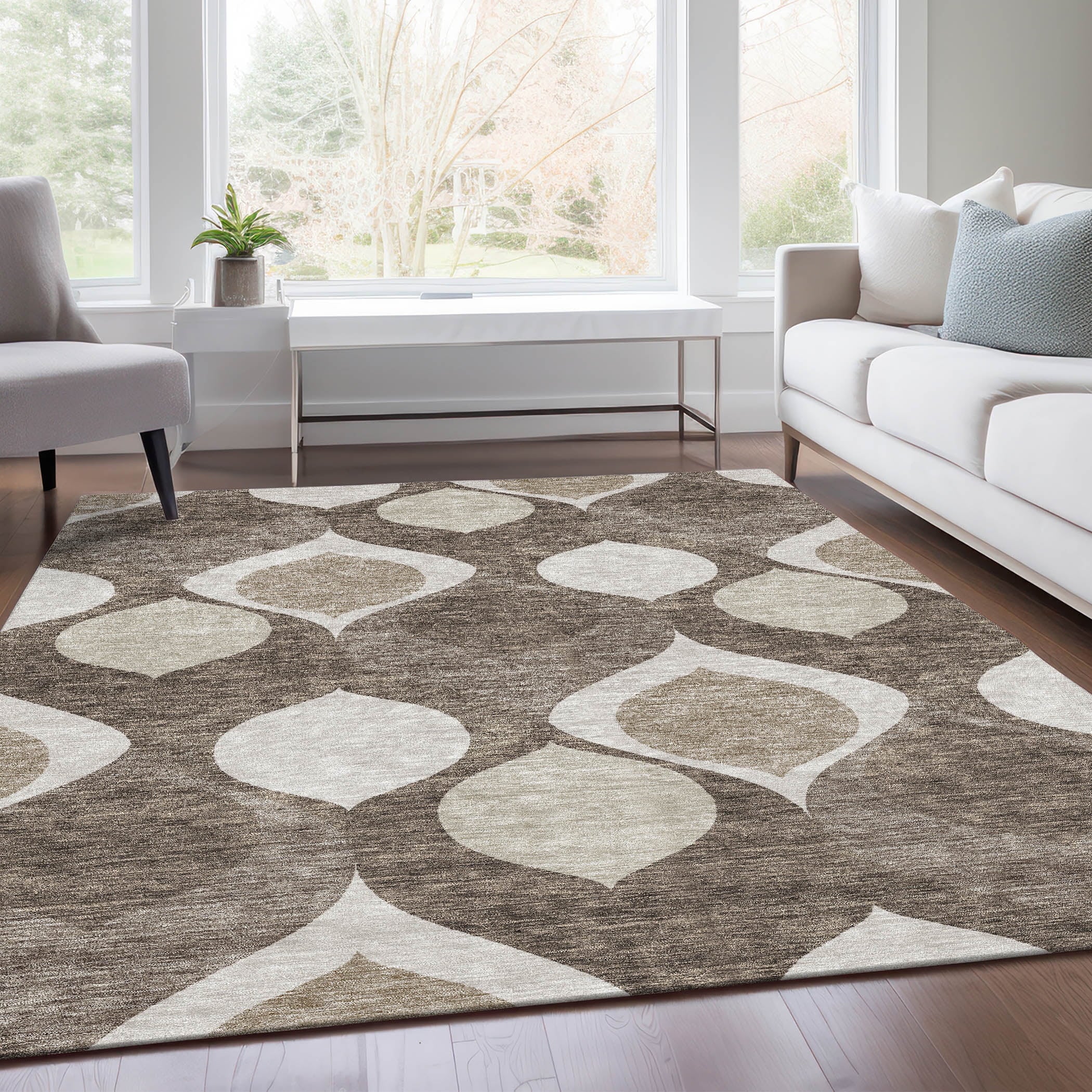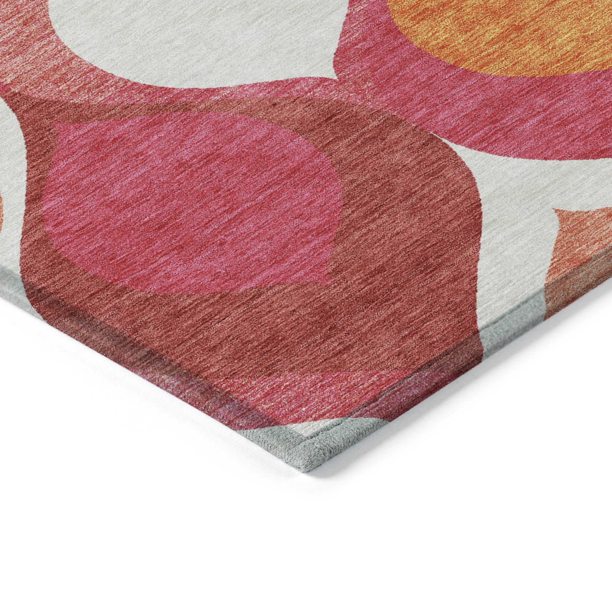 Our rug showcases a unique pattern of floating tear dropped shaped motifs, capturing the essence of transitional and mid-century modern design. This distinctive design brings a sense of lightness and fluidity, perfect for enhancing any contemporary setting. Along with its aesthetic allure, the rug is UV stabilized for versatile use, ultra-thin for seamless integration, machine-washable for easy maintenance, and ideal for a family and pet-friendly home.