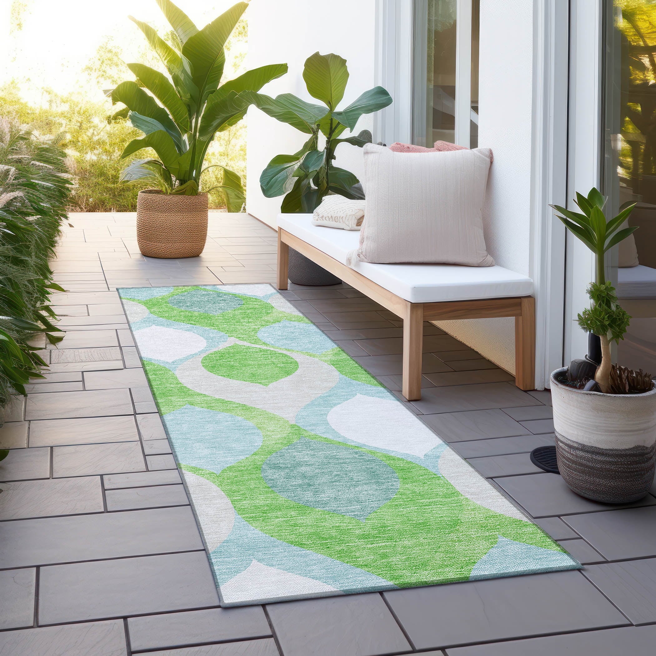 - UV Stabilized For Indoor or Outdoor Use. All rugs exposed to long periods of intense and direct sunlight can experience loss of color over time. Our rugs perform best in covered outdoor areas and uncovered areas with lower hours of direct sunlight.