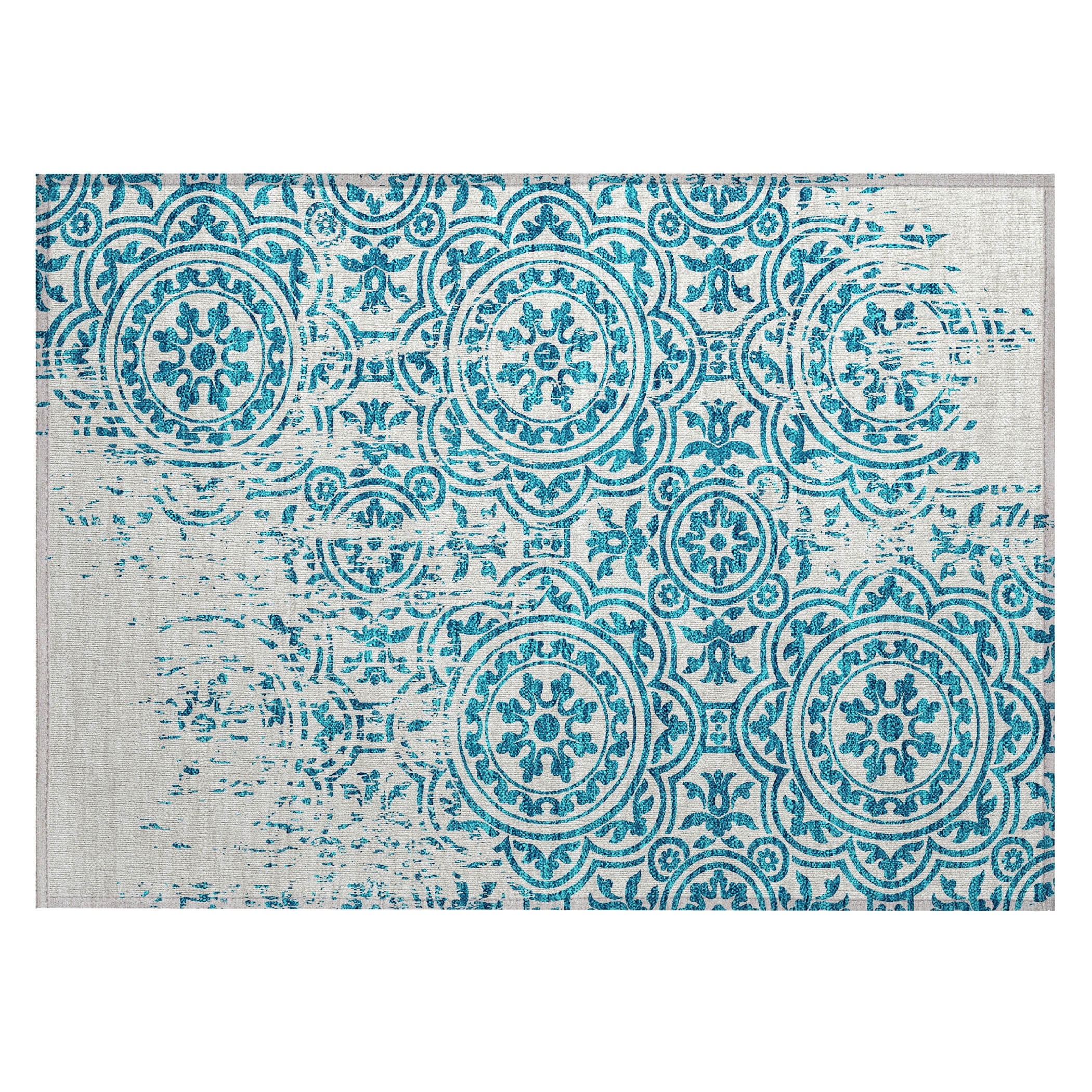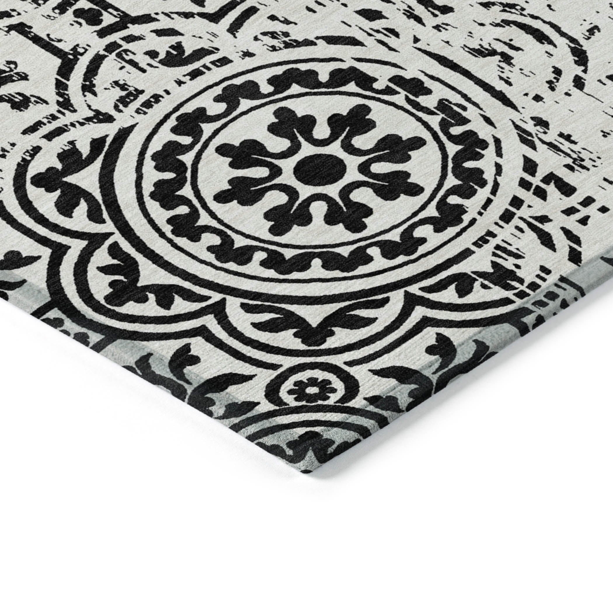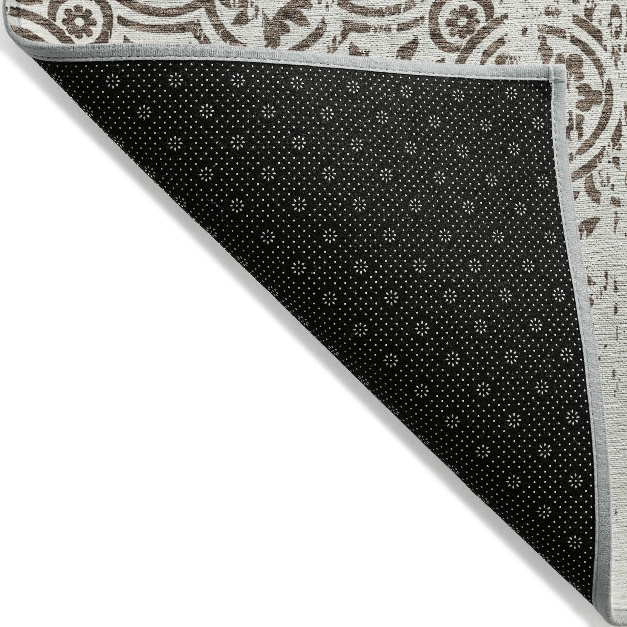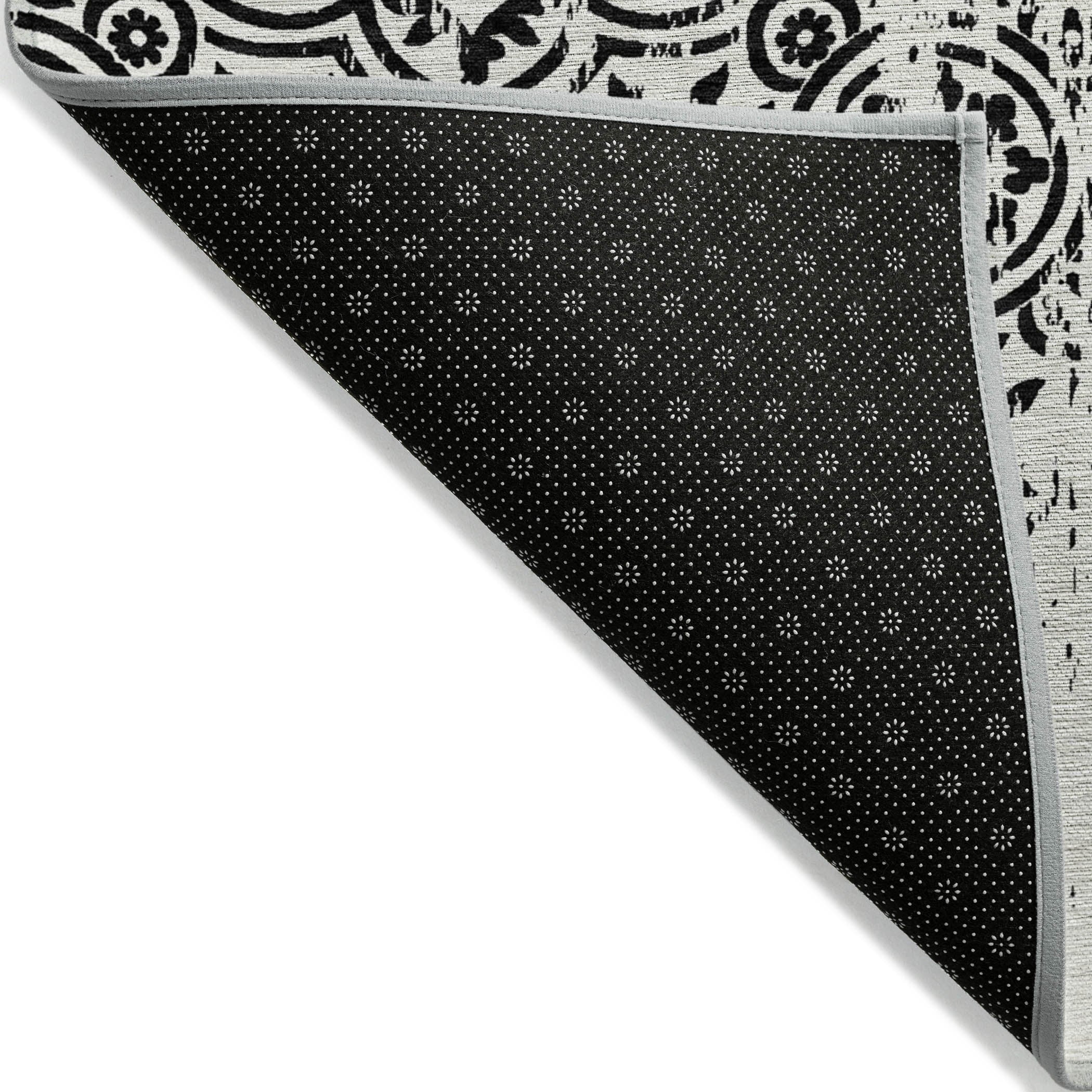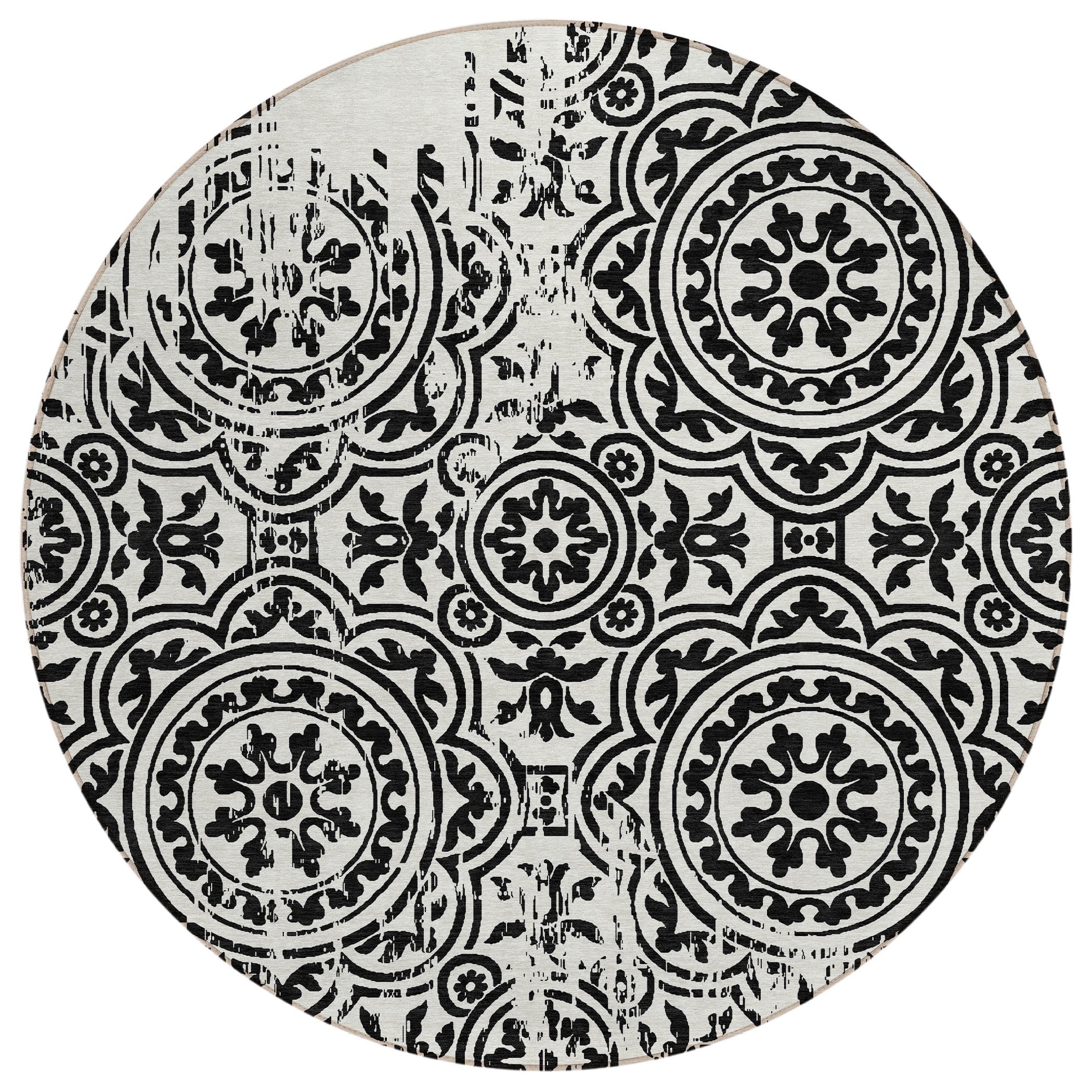 Let the intricate design of our transitional rug captivate you, featuring large-scale medallions set against open, airy corners. This rug’s delightful pattern infuses any space with a blend of classic and contemporary charm. Enhanced for both indoor and outdoor use, its ultra-thin construction makes it a versatile choice, while its machine-washable nature and compatibility with pets and family life add to its allure.