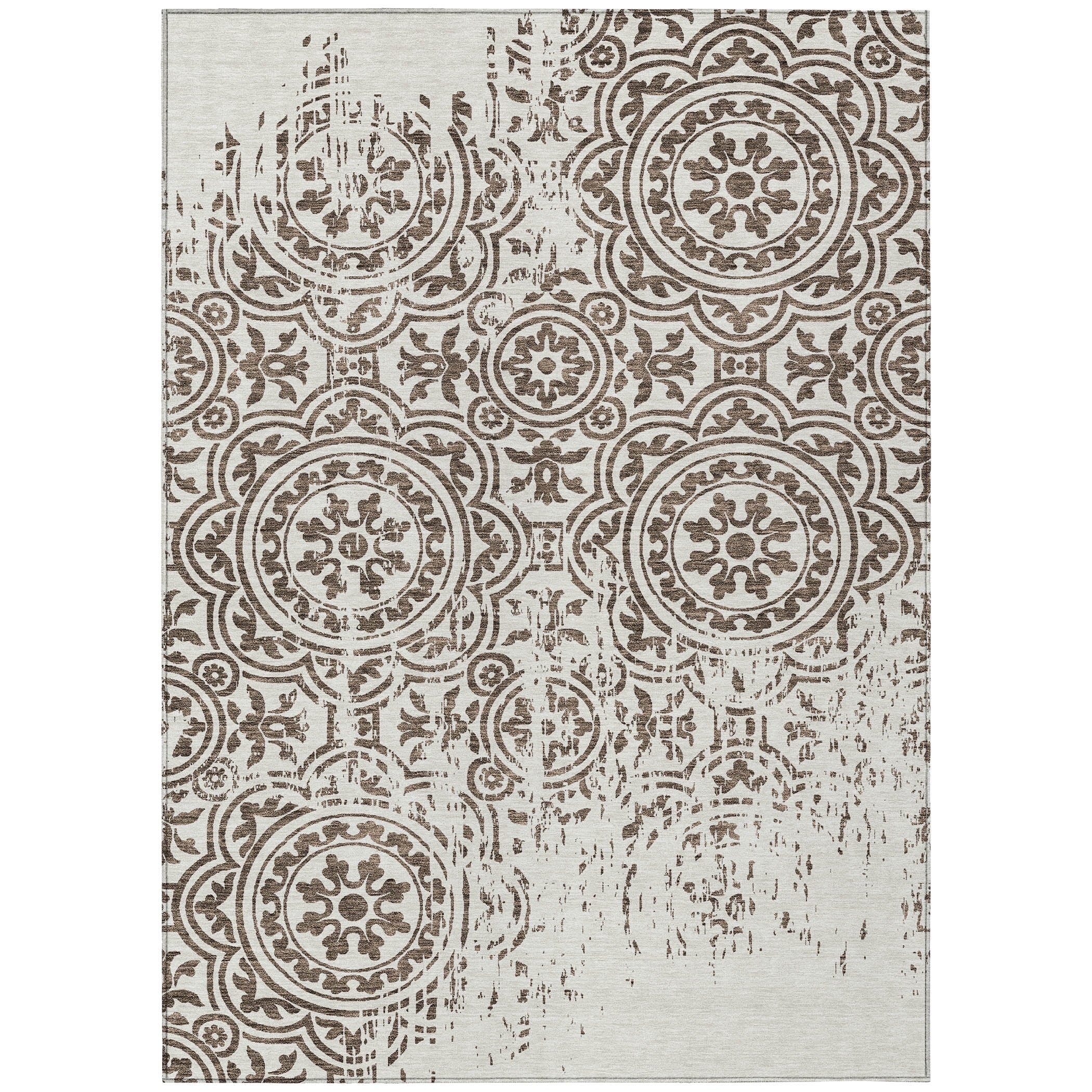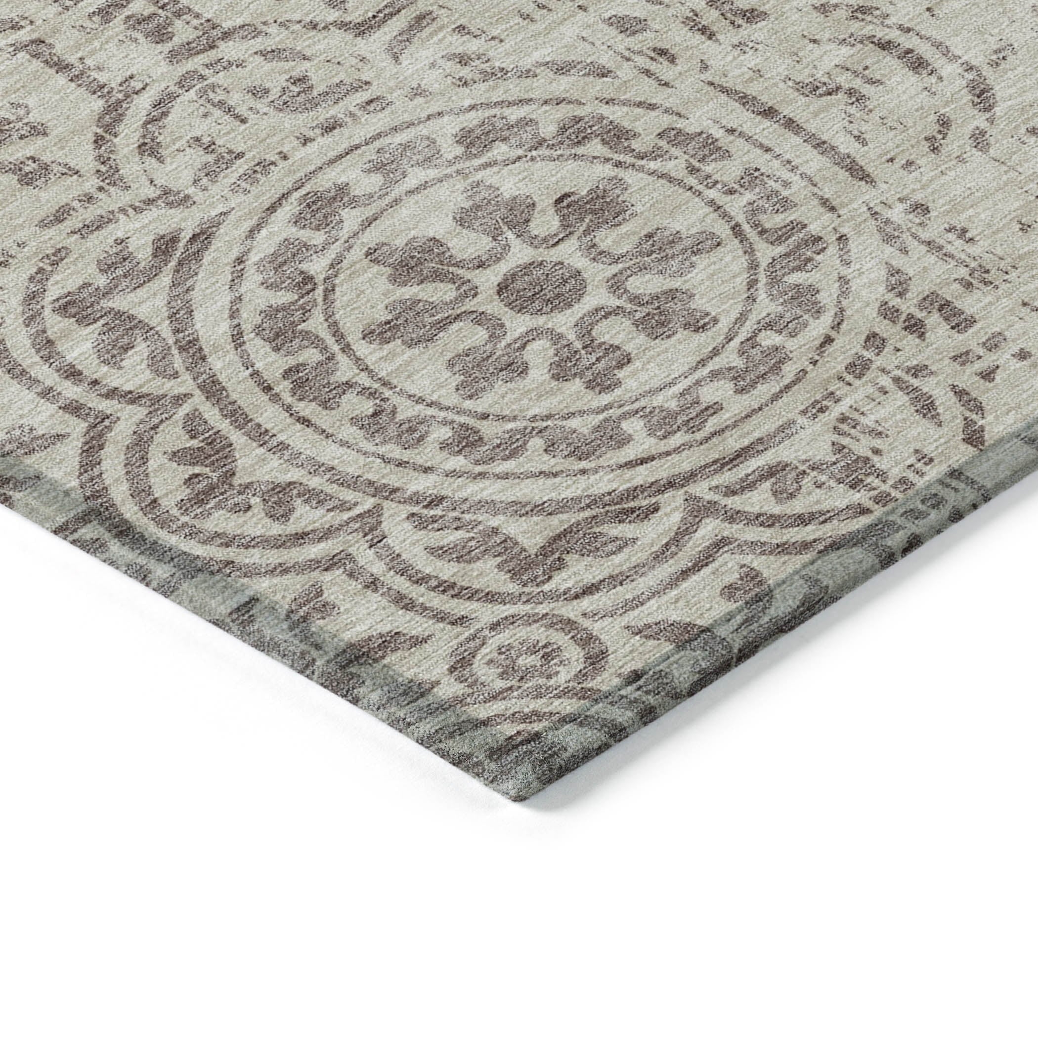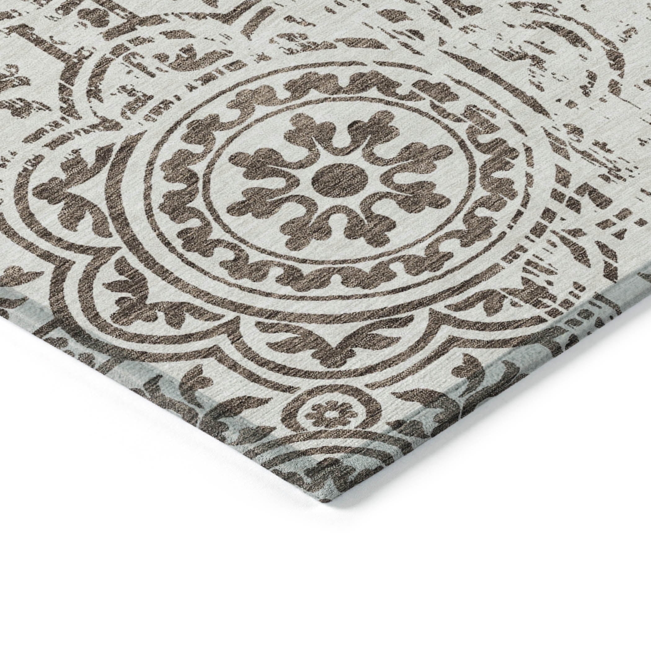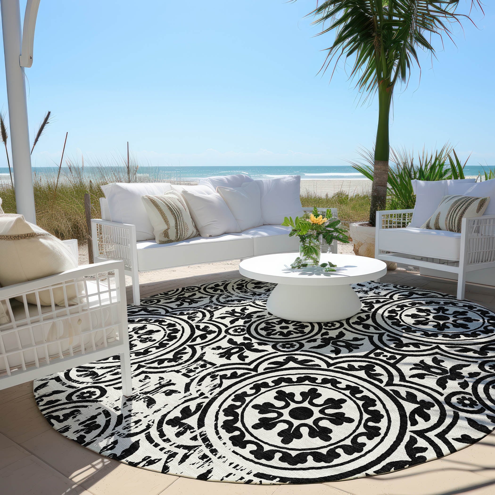 Let the intricate design of our transitional rug captivate you, featuring large-scale medallions set against open, airy corners. This rug’s delightful pattern infuses any space with a blend of classic and contemporary charm. Enhanced for both indoor and outdoor use, its ultra-thin construction makes it a versatile choice, while its machine-washable nature and compatibility with pets and family life add to its allure.
