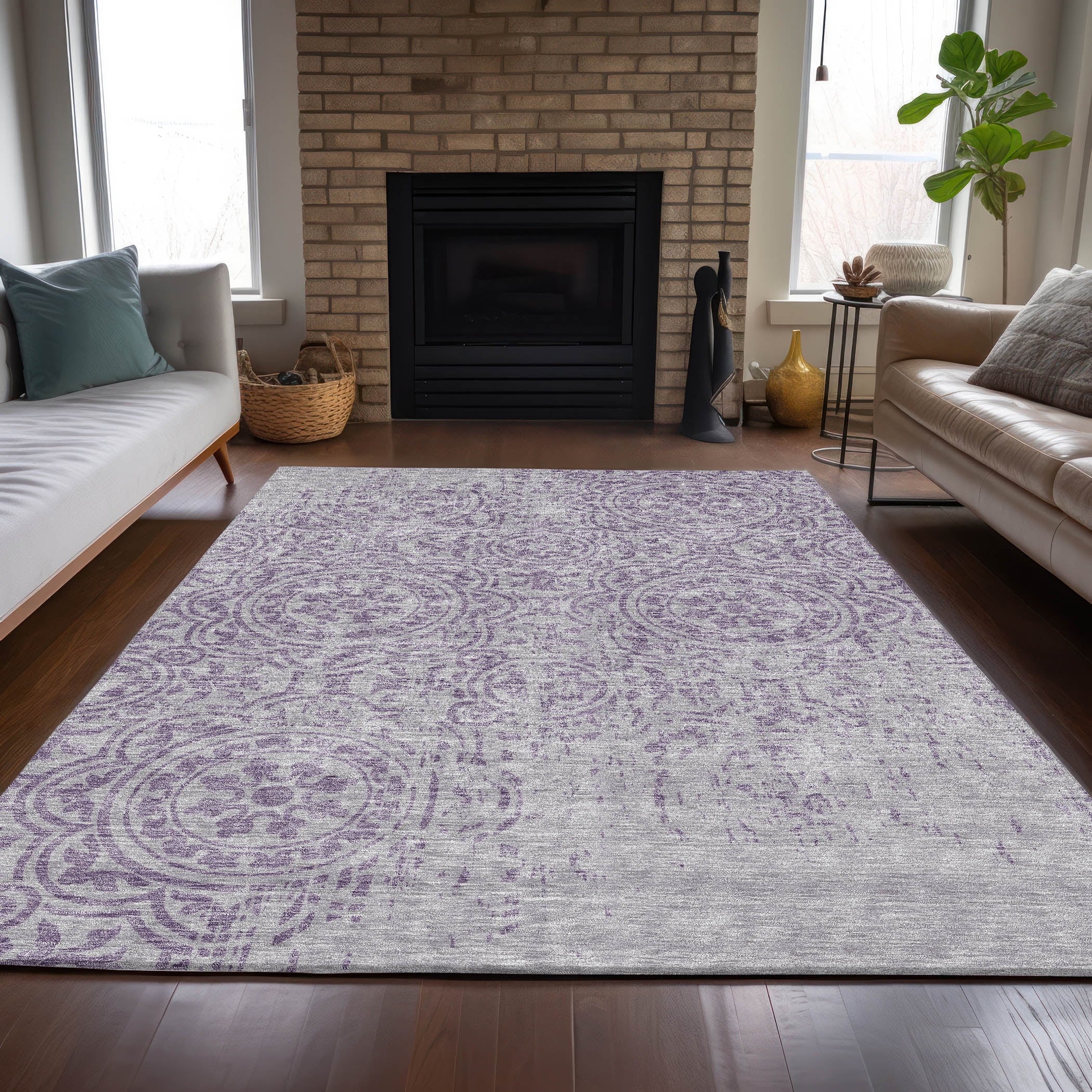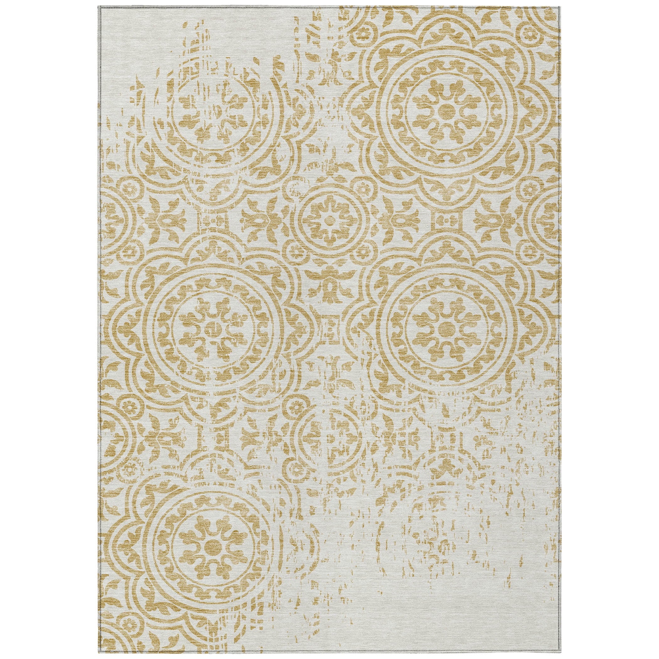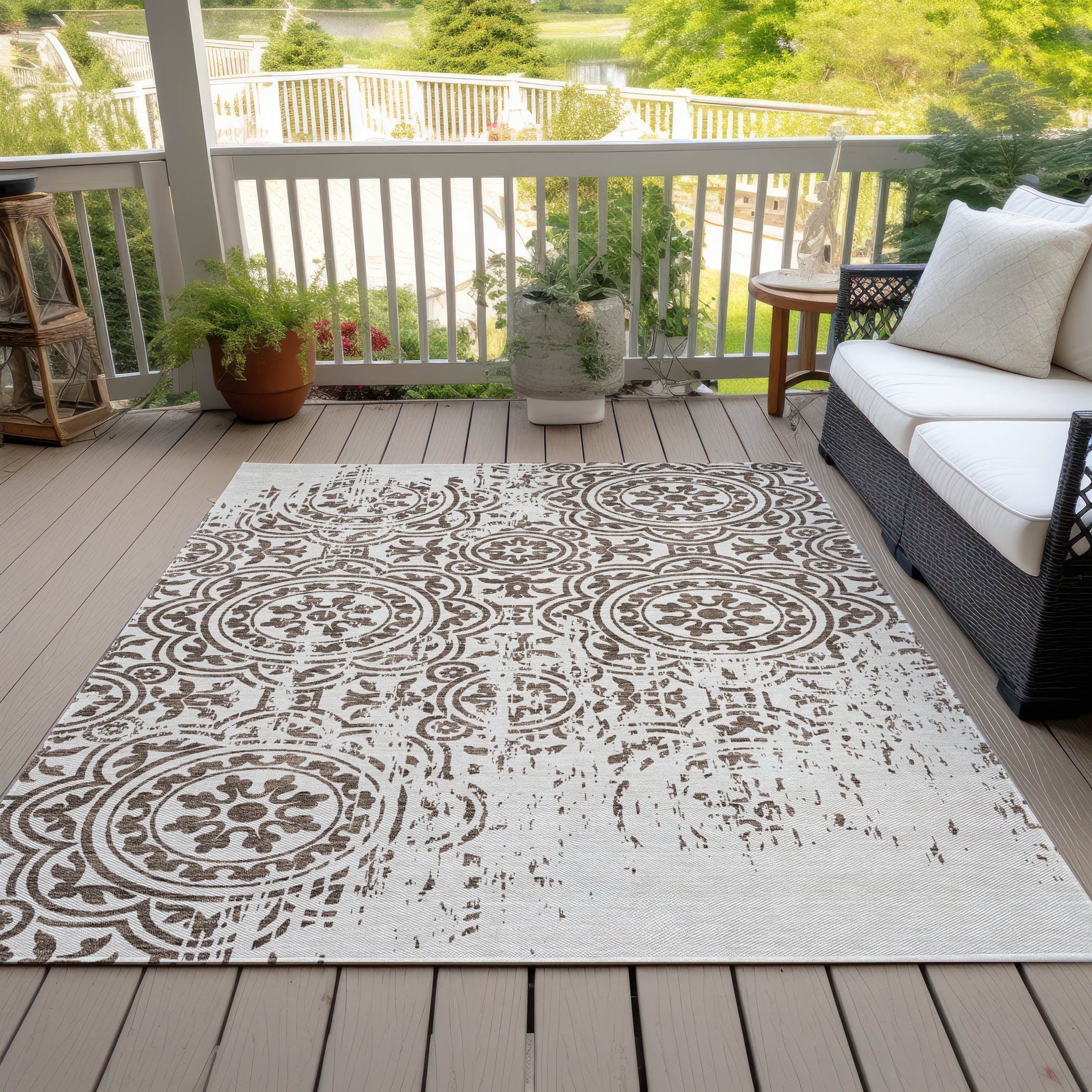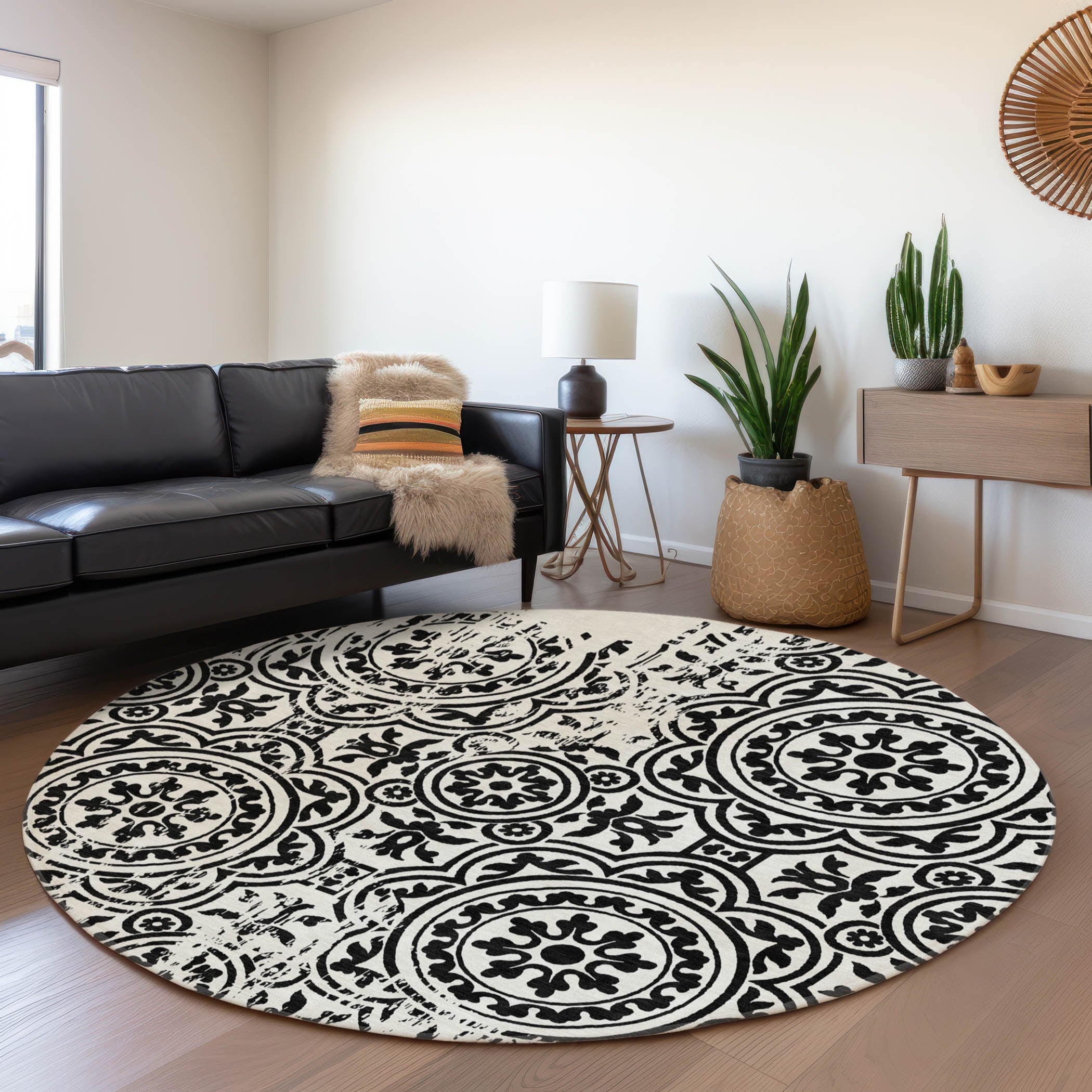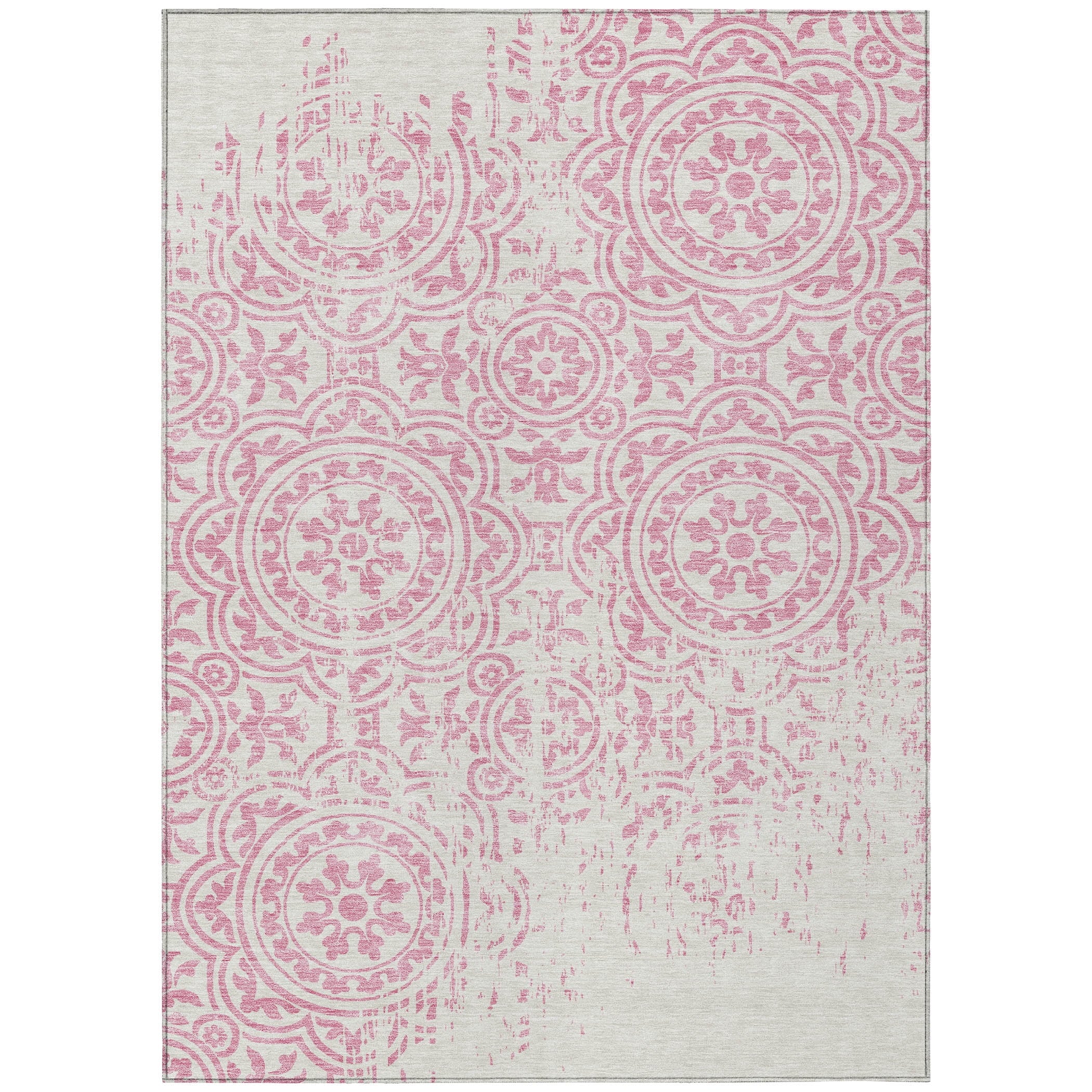 Let the intricate design of our transitional rug captivate you, featuring large-scale medallions set against open, airy corners. This rug’s delightful pattern infuses any space with a blend of classic and contemporary charm. Enhanced for both indoor and outdoor use, its ultra-thin construction makes it a versatile choice, while its machine-washable nature and compatibility with pets and family life add to its allure.