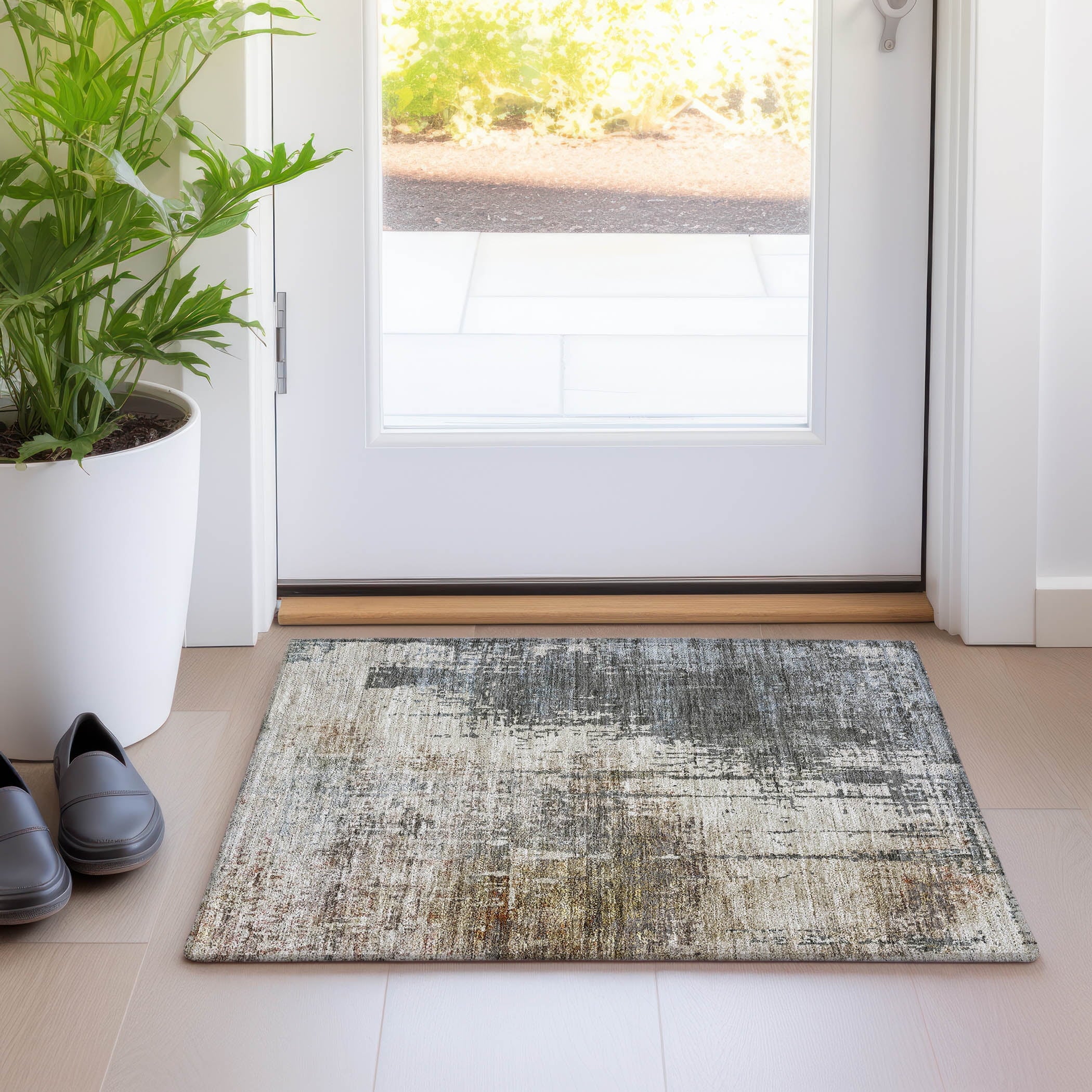 Step into a world of refined simplicity with our area rug, featuring minimalistic lines that bring a calming presence to any transitional or modern setting. It’s not just about aesthetics; this rug offers UV stabilization for versatile use, ultra-thin construction for sleek placement, machine-washability for low-maintenance care, and a welcoming design for families and pets.