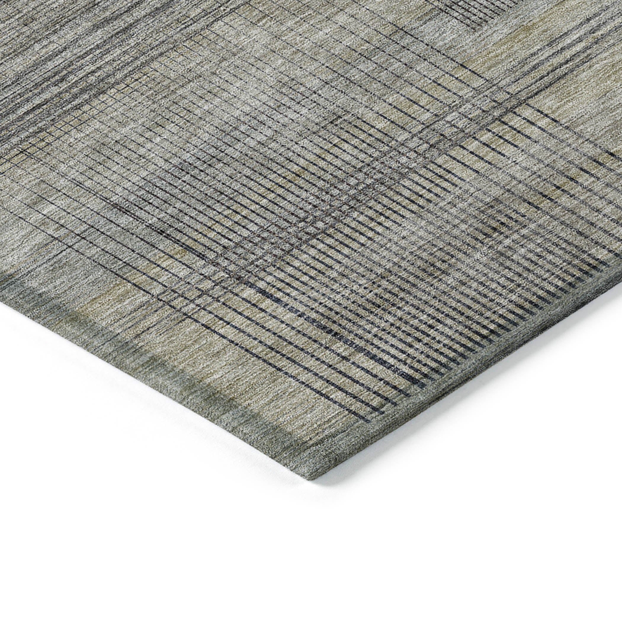 Discover the allure of our area rug, featuring intricate criss-cross lines that blend beautifully into a transitional pattern with a hint of modern stripes. This rug elevates any area with its sophisticated charm. It boasts UV stabilization for flexible indoor or outdoor placement, an ultra-thin build for simple integration, is easily machine-washable, and caters wonderfully to both family and pet-friendly environments.