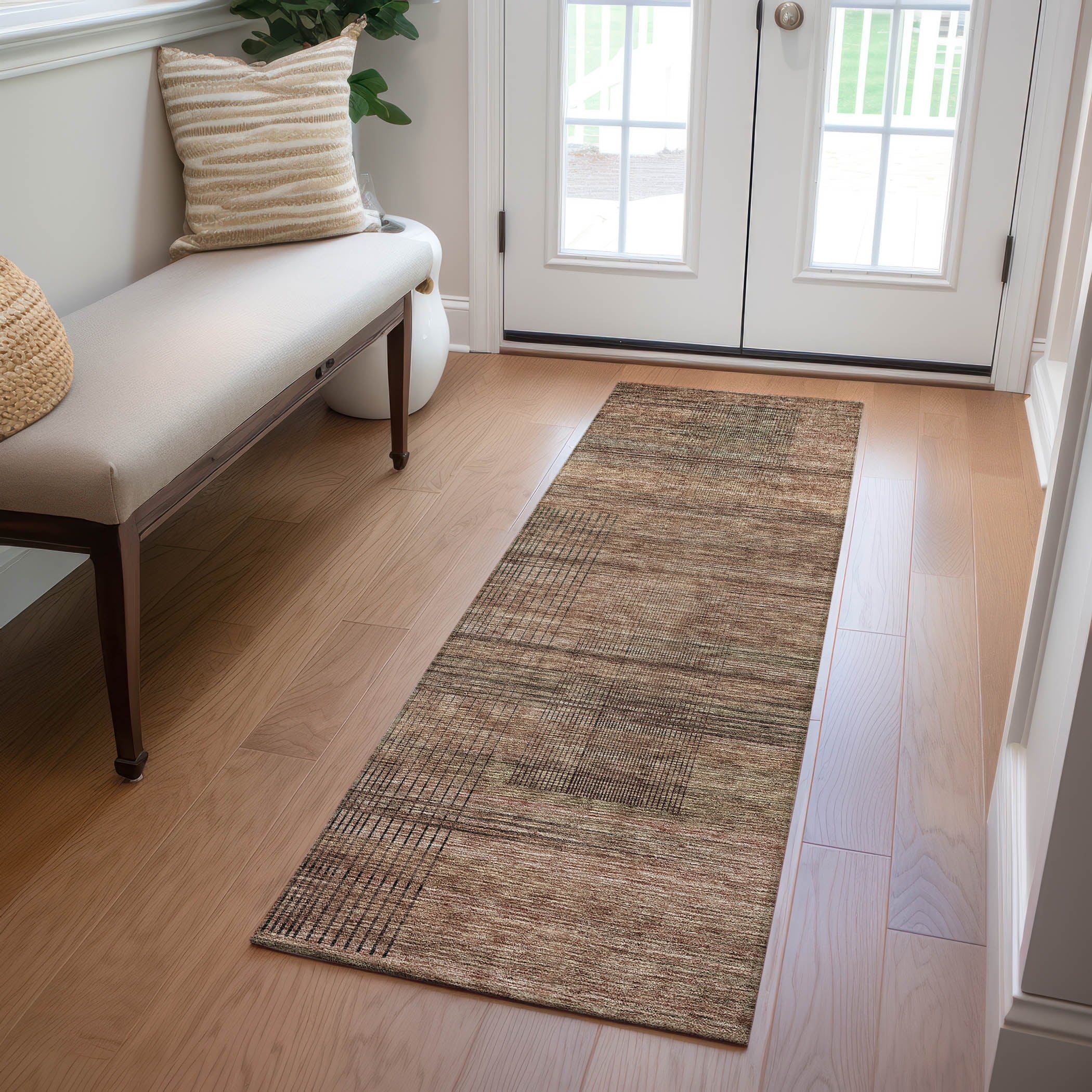 Home Area Rugs Addison Rugs Chantille Indoor/Outdoor Transitional Stripes Brown Washable Rectangle Rug, 1’8″ x 2’6″