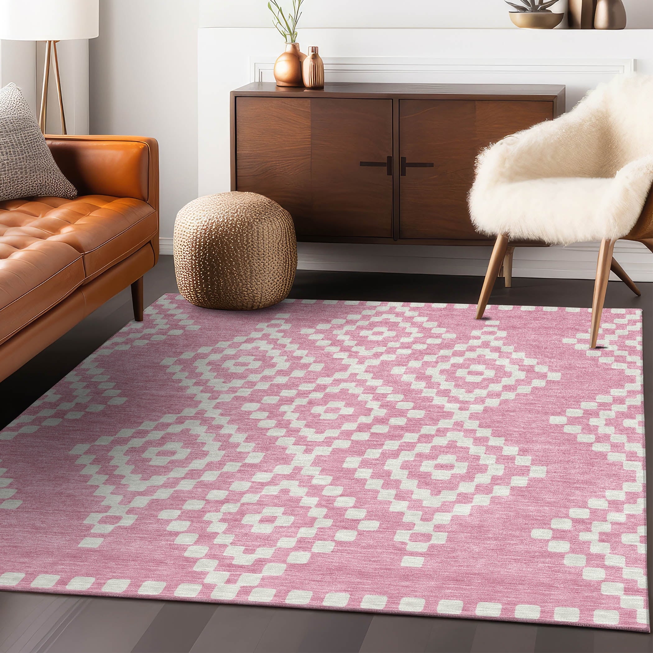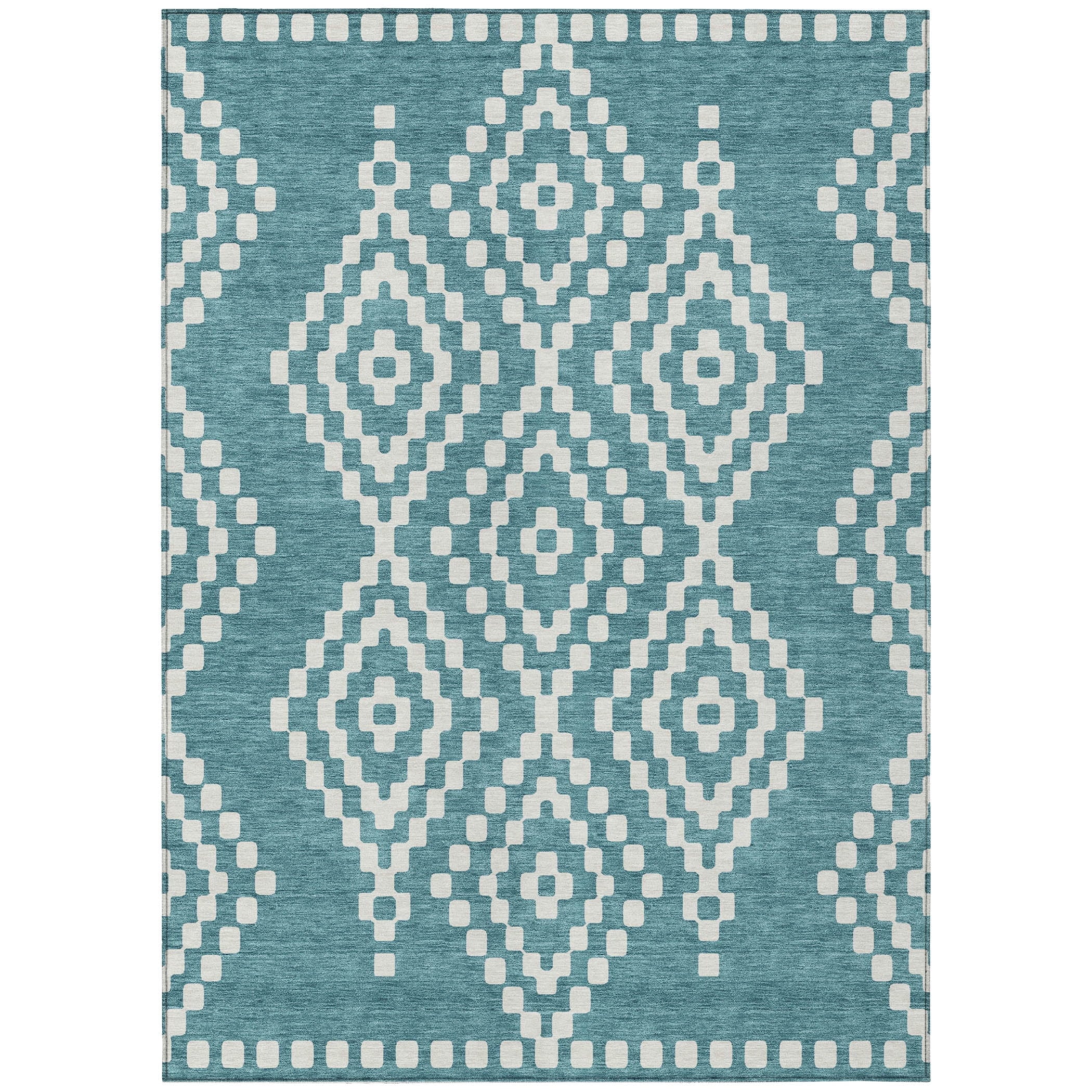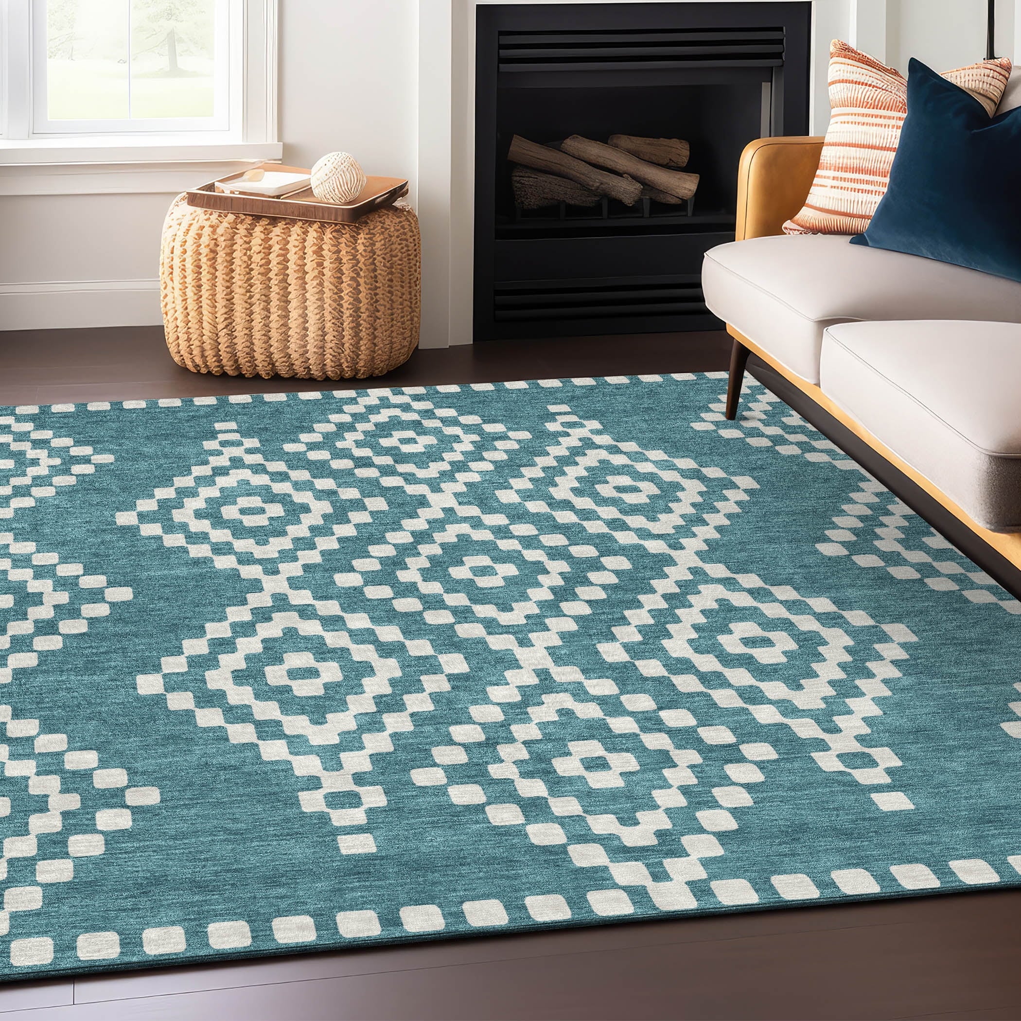 “Transform your space with our area rug, where a centered diamond design meets the charm of needlepoint artistry. The transitional nature of this rug, coupled with its diamond motif, brings timeless elegance to any setting. It’s crafted for convenience, offering UV stabilization for versatile use, an ultra-thin profile for modern living, easy machine washability, and a welcoming design for your beloved family and pets.”
