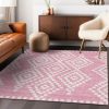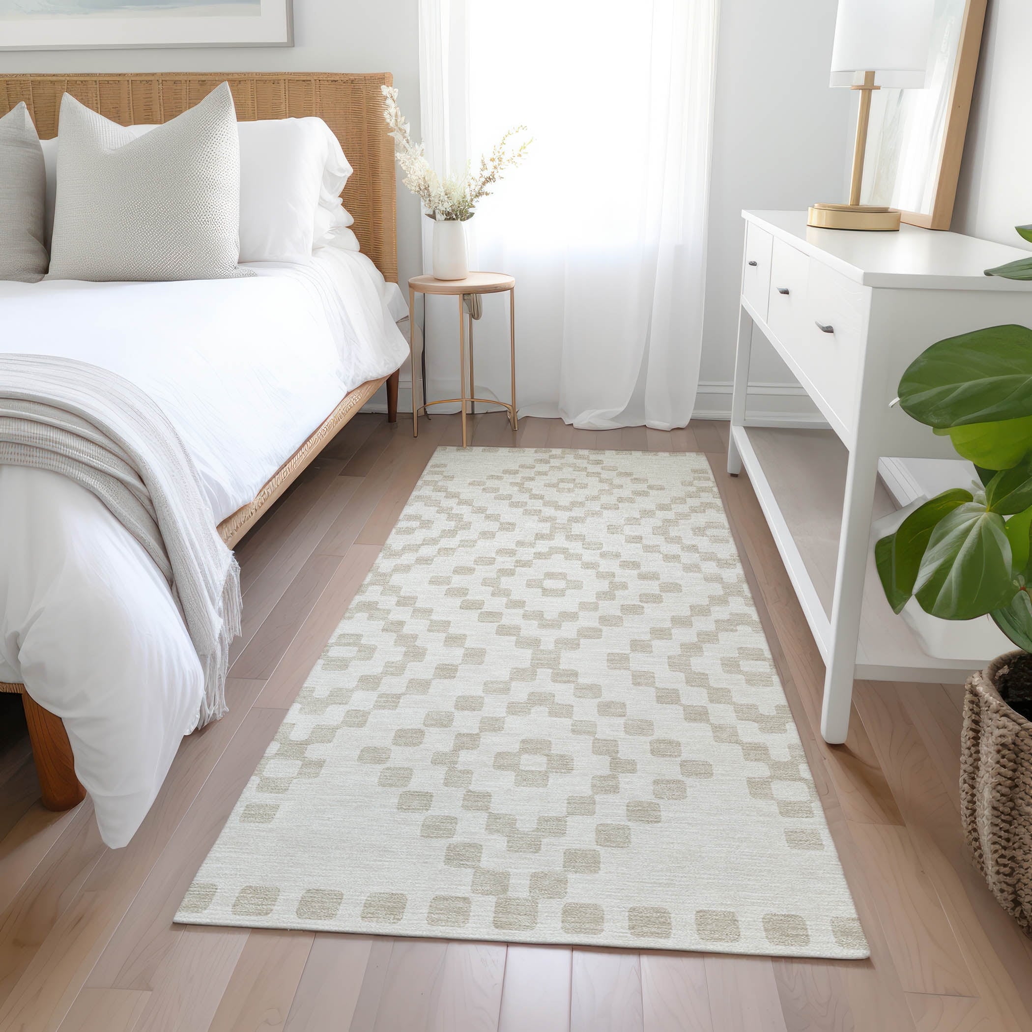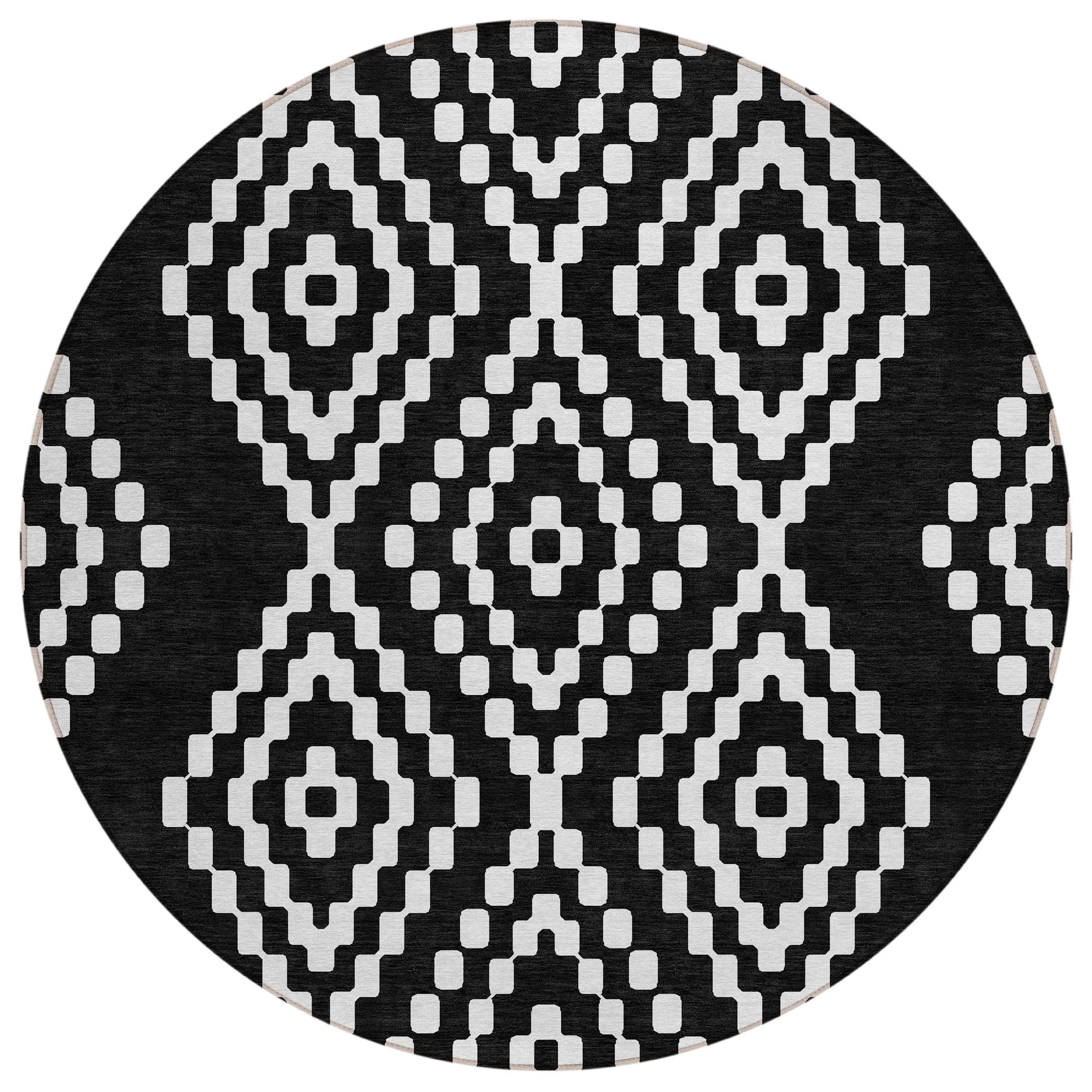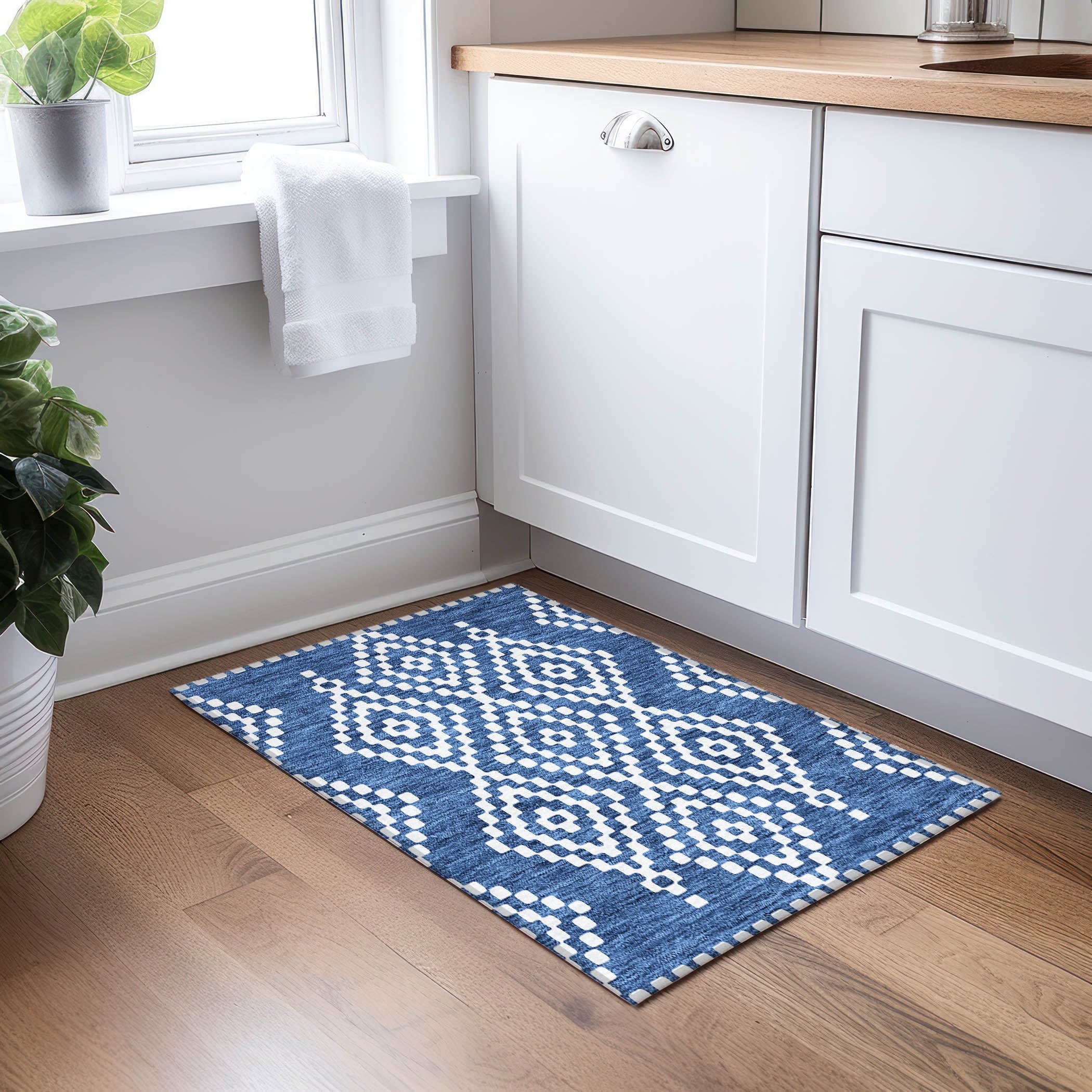 “Transform your space with our area rug, where a centered diamond design meets the charm of needlepoint artistry. The transitional nature of this rug, coupled with its diamond motif, brings timeless elegance to any setting. It’s crafted for convenience, offering UV stabilization for versatile use, an ultra-thin profile for modern living, easy machine washability, and a welcoming design for your beloved family and pets.”
