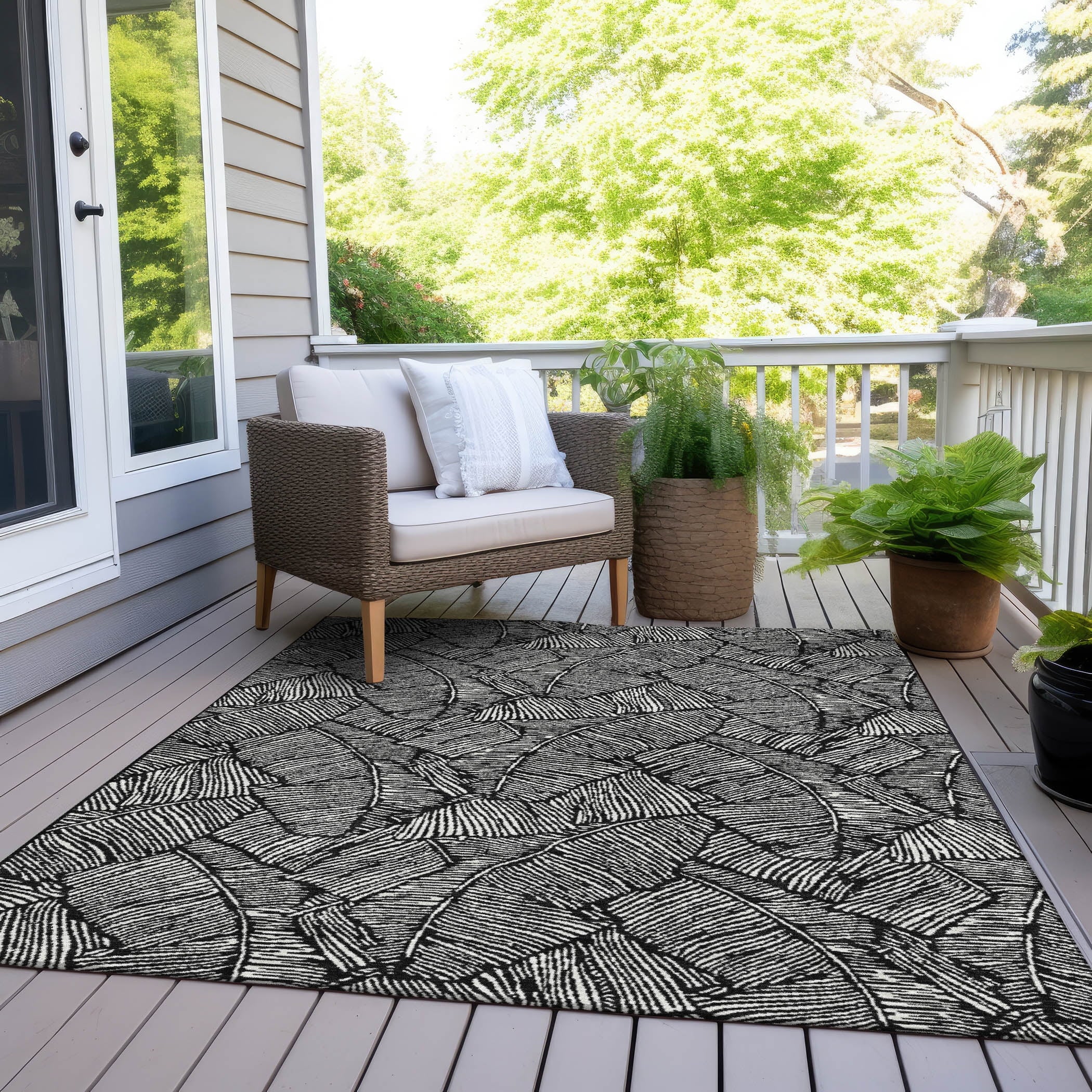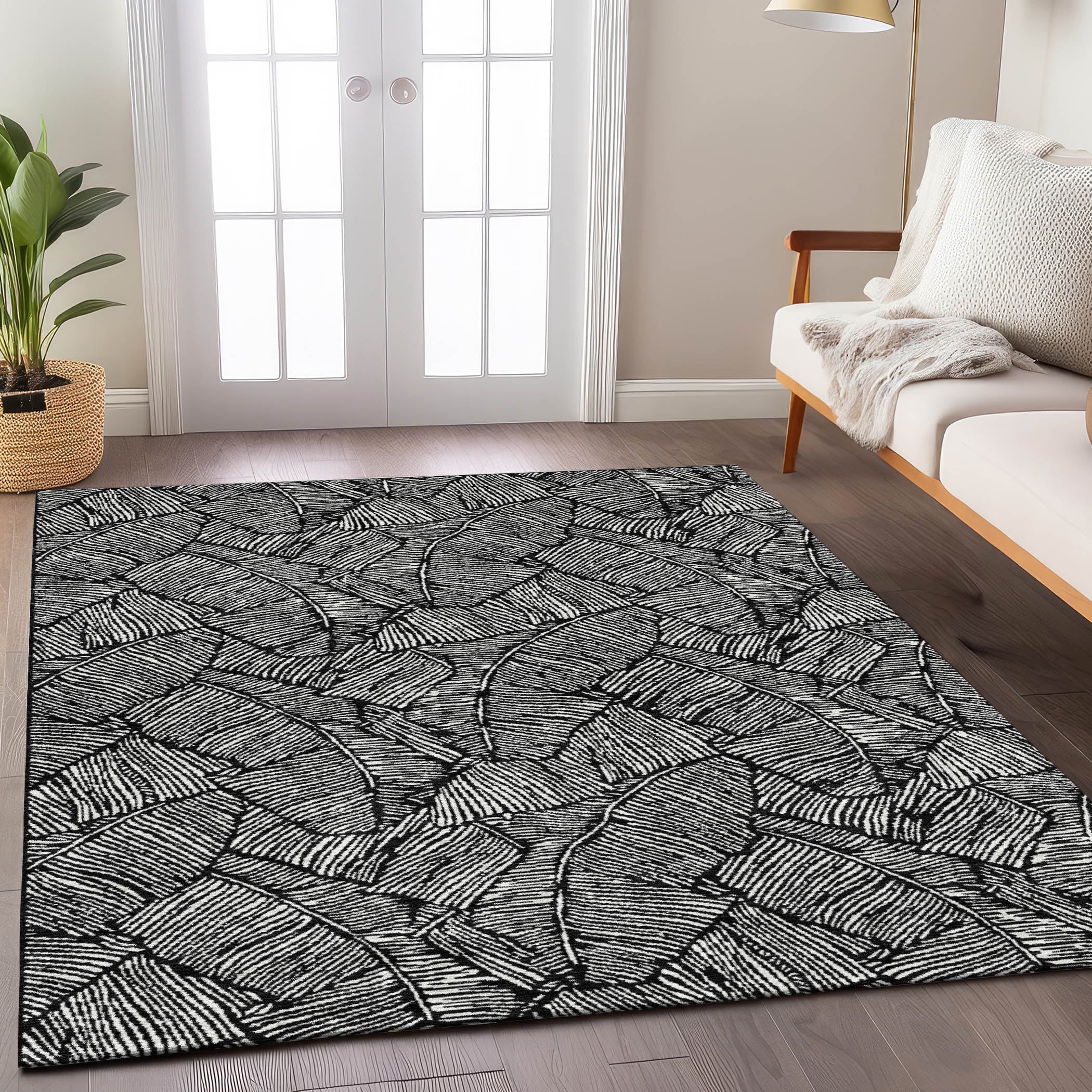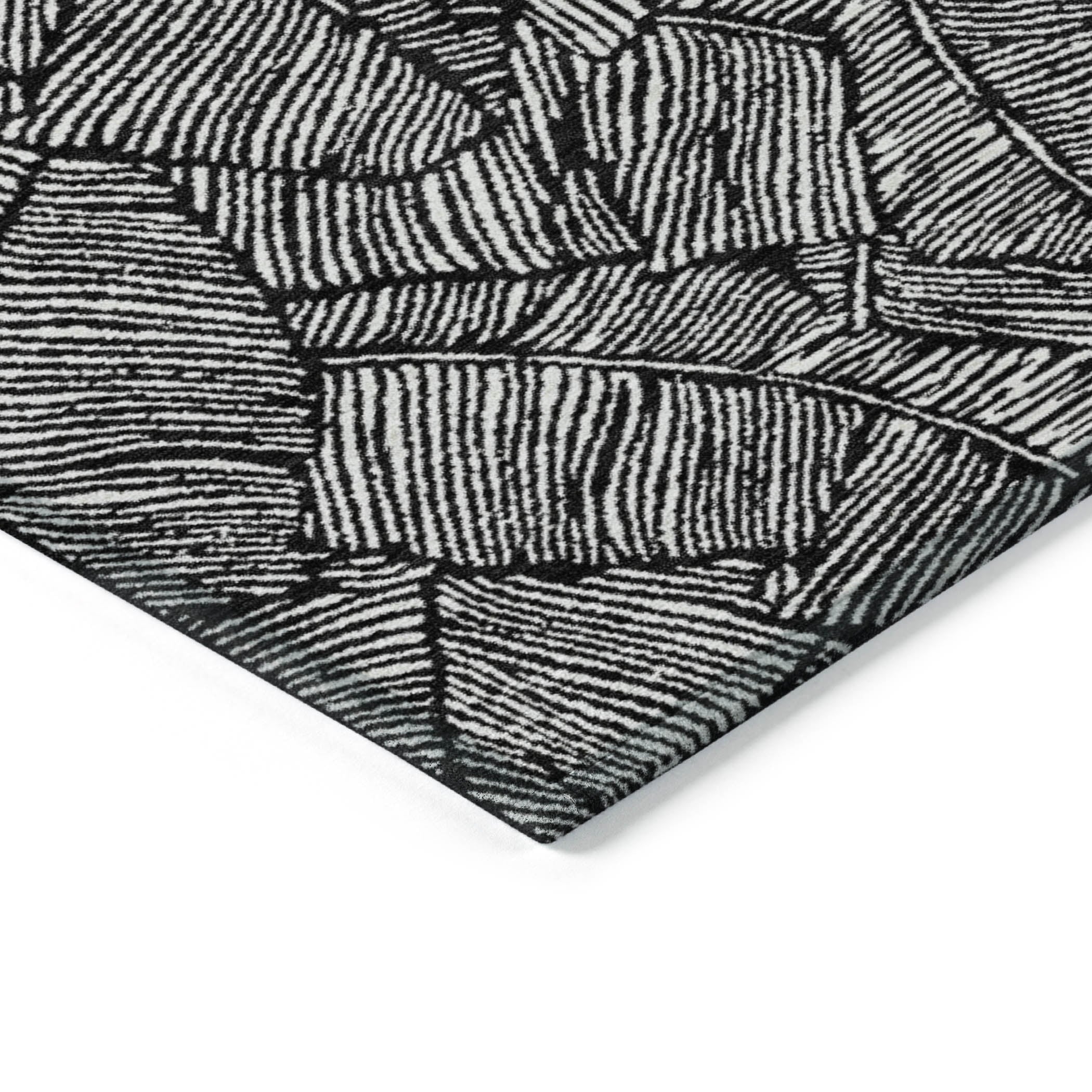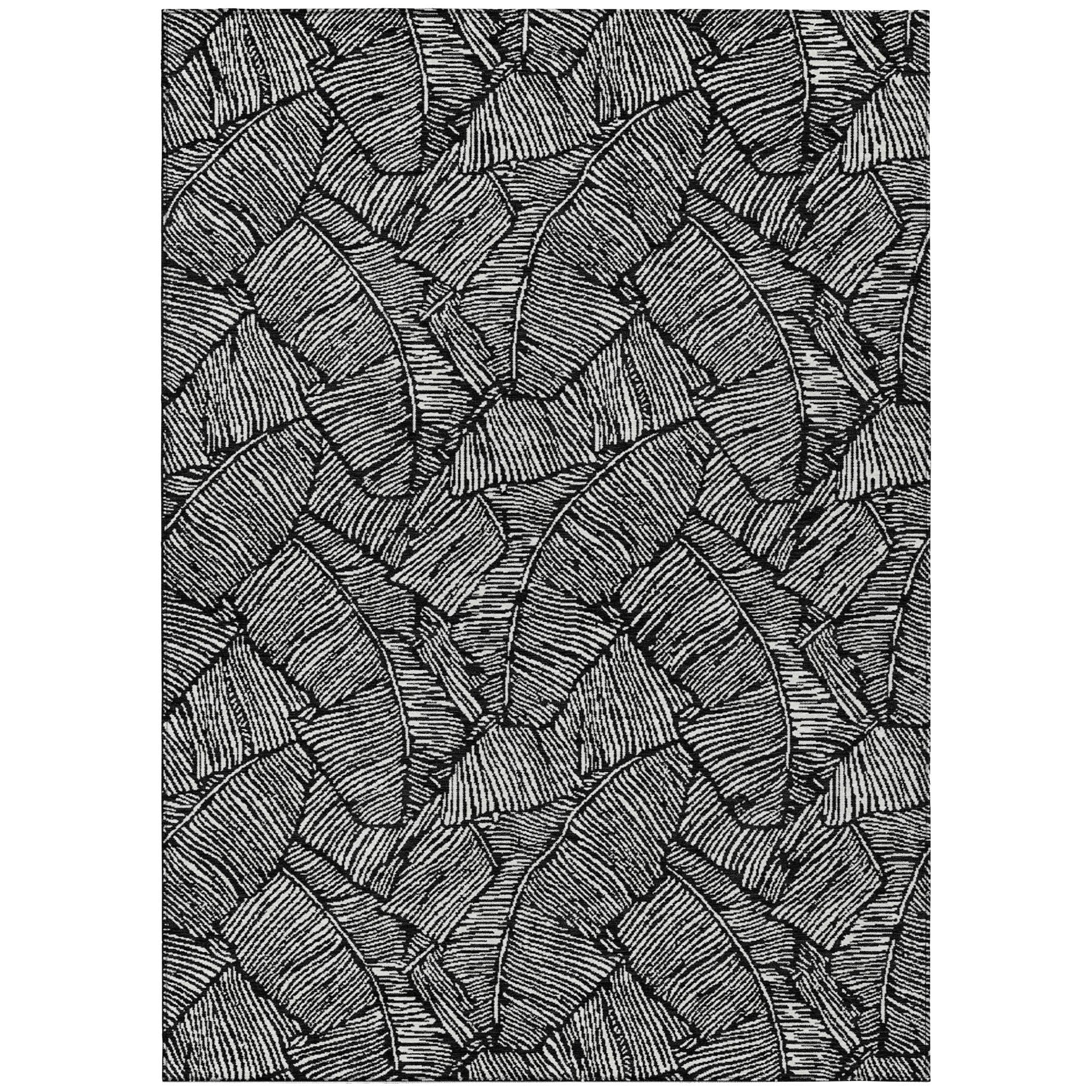 Boasting large scaled leaves with a sleek monotone colorway, this area rug beautifully blends transitional style with a floral motif. Not only is it UV stabilized for versatile indoor and outdoor usage, but its ultra-thin construction also allows for easy placement in any area. Plus, it’s machine-washable, making it a practical and stylish choice for households with kids and pets.