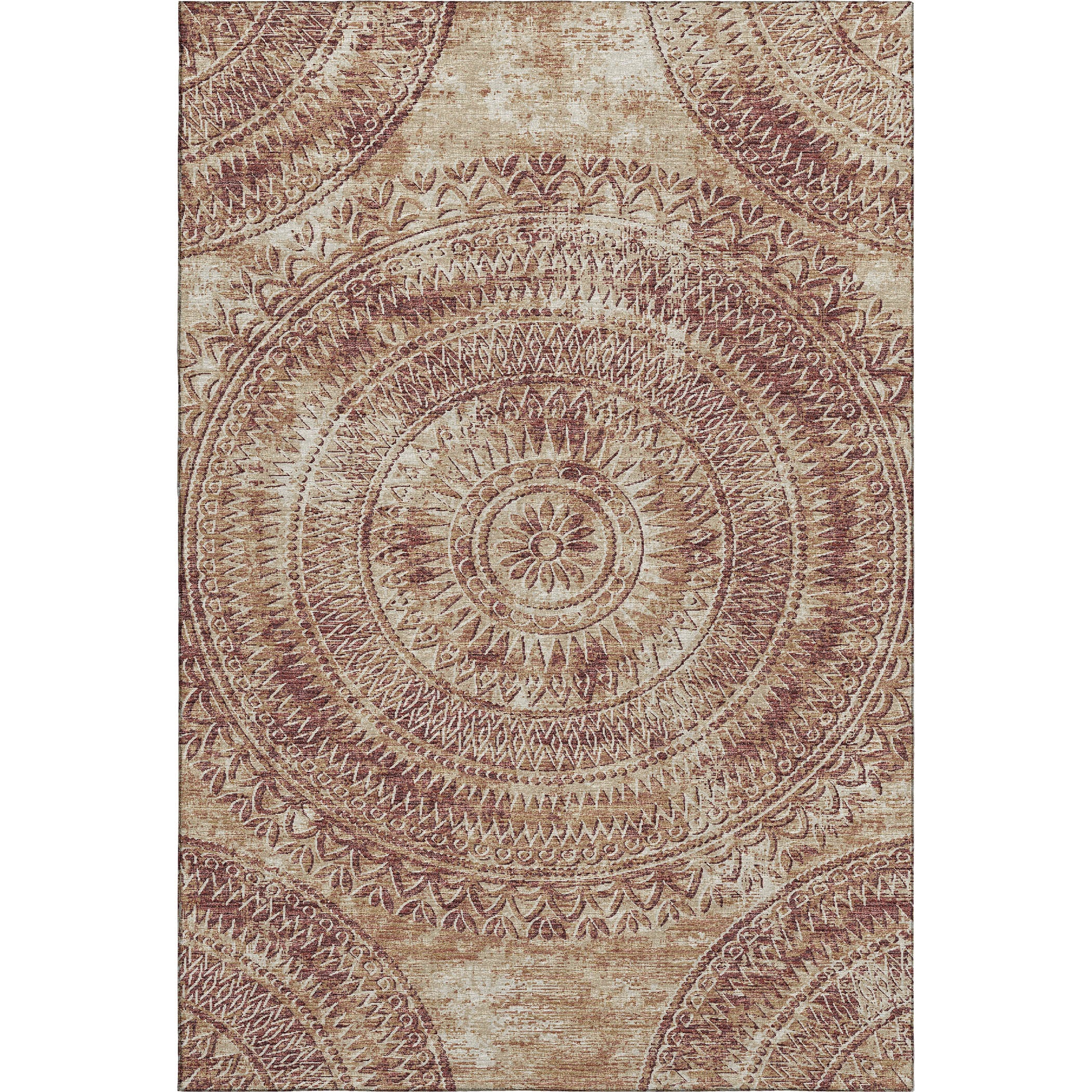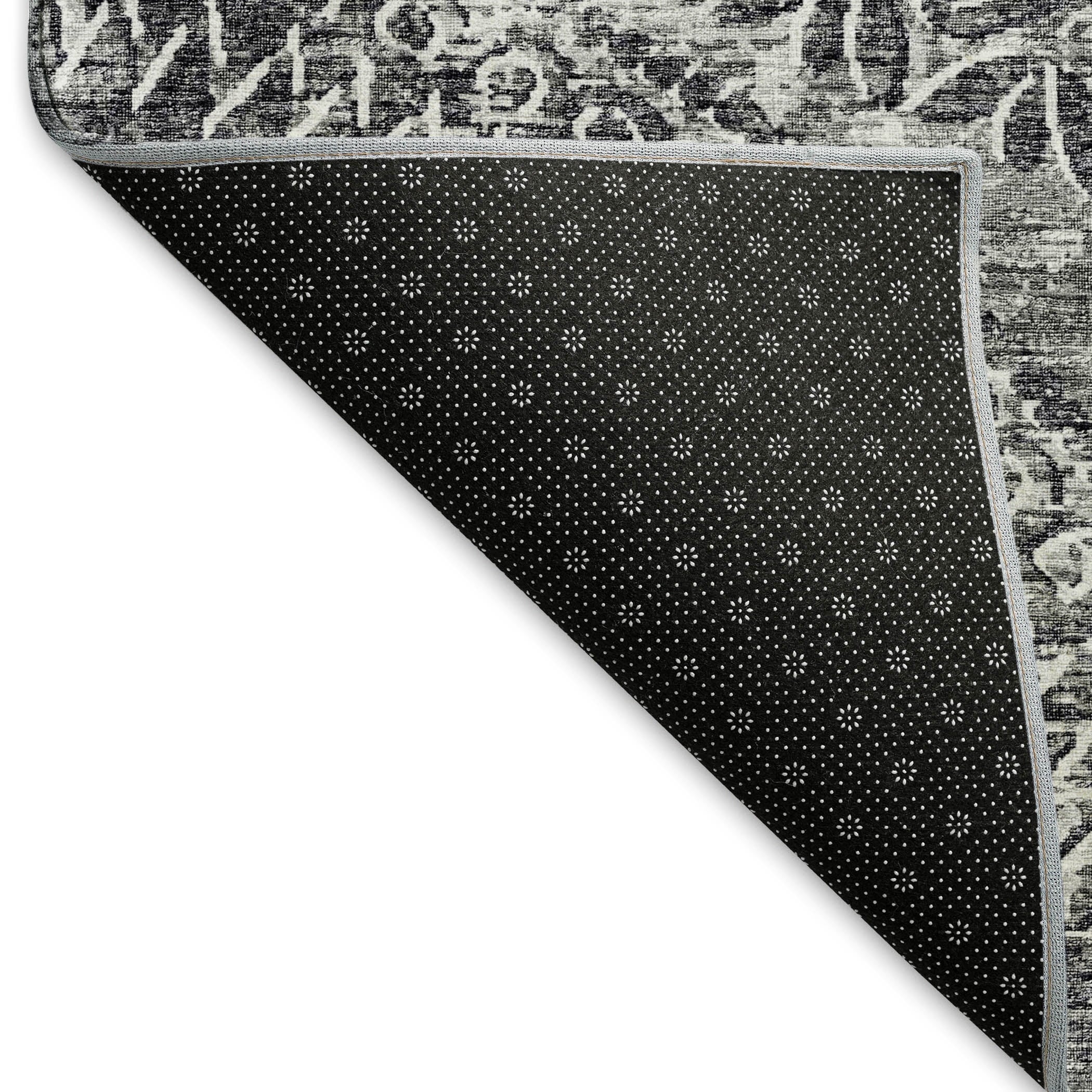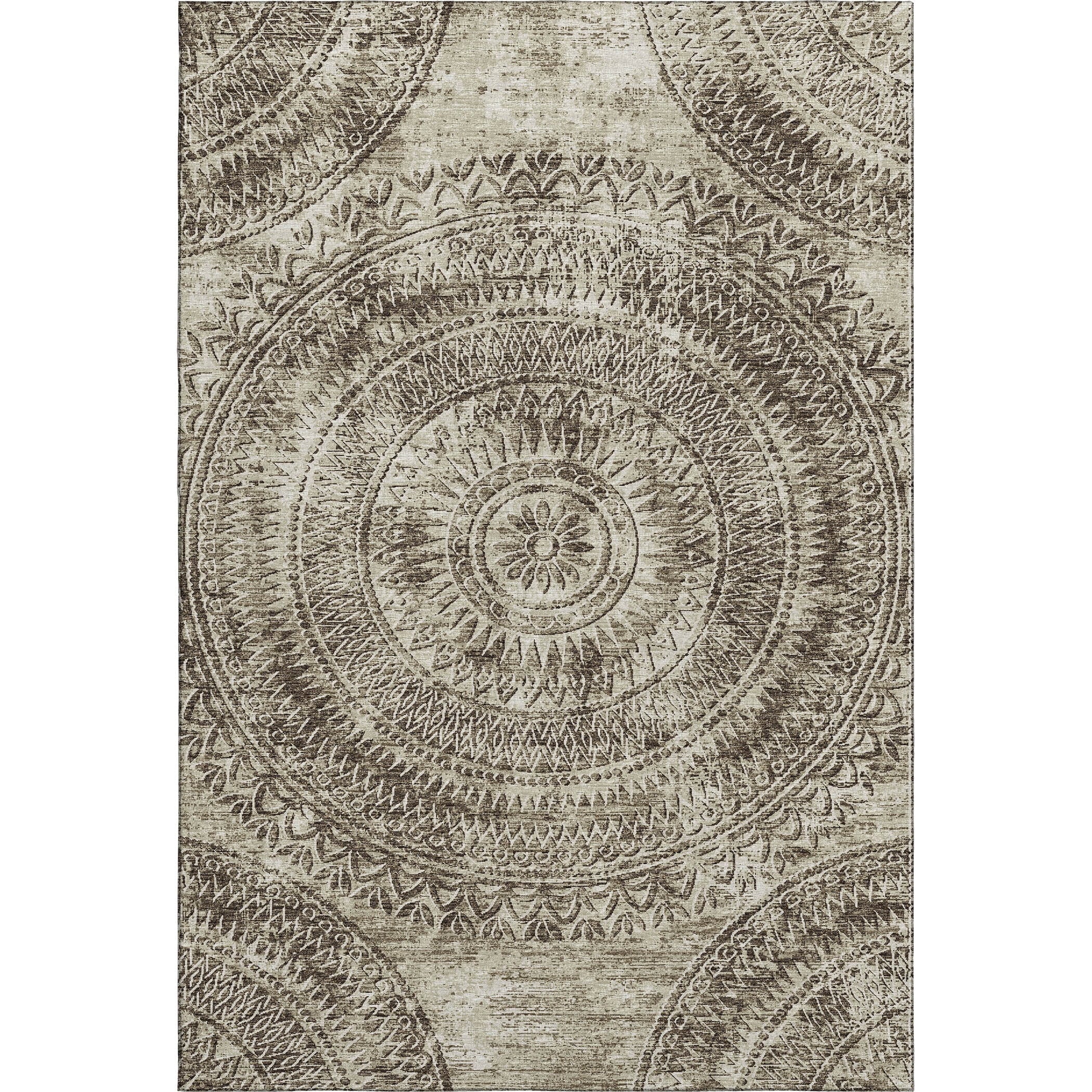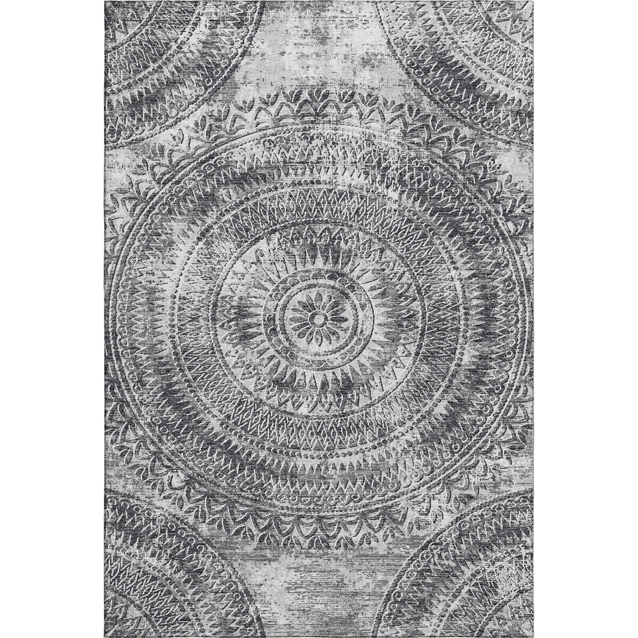 Introduce a touch of refined elegance to your floors with this rug, showcasing a distressed medallion center and harmonious semi-circular details in the corners, reflecting a transitional style. Perfect for indoor and covered outdoor areas, it offers a soft, thick, and plush microfiber pile. Its premium machine washable feature ensures the rug remains a practical addition to any dynamic home.