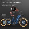 - Parking Brake System: With a parking brake system, you can have greater control over this ADDMOTOR GREATTAN L e-trike when parking on inclines or uneven terrain. This function is easy to use—just squeeze the brake and press the button. Additionally, the handlebar includes an electric horn and a 5-in-one taillight. Press the button, reminding others that you are riding your e-trike. The brake automatically lights up when you brake.