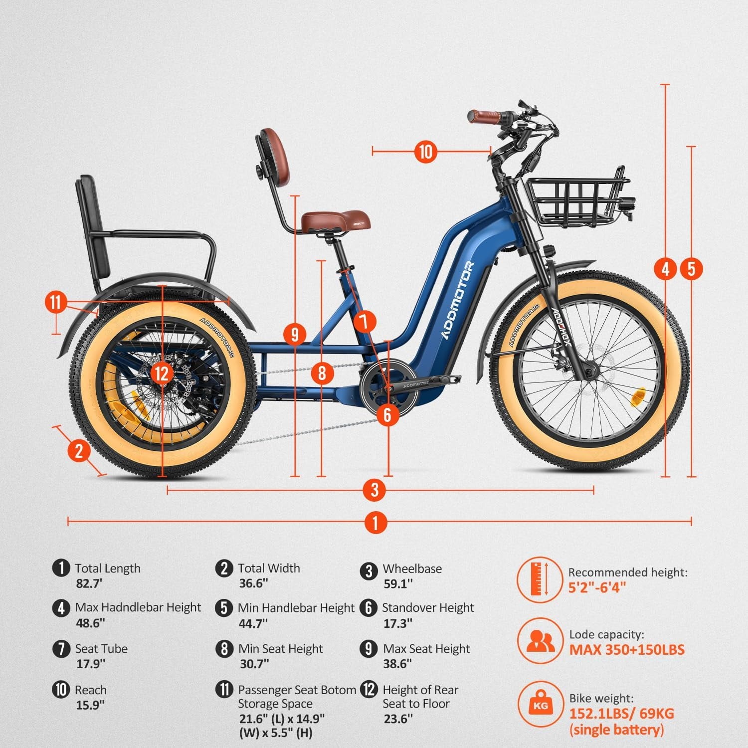 This e-trike features a passenger seat, allowing you to take your loved ones along for the ride. With a max payload of 500lbs, it’s perfect for transporting kids or elders. Enjoy a day out with this versatile e-trike.