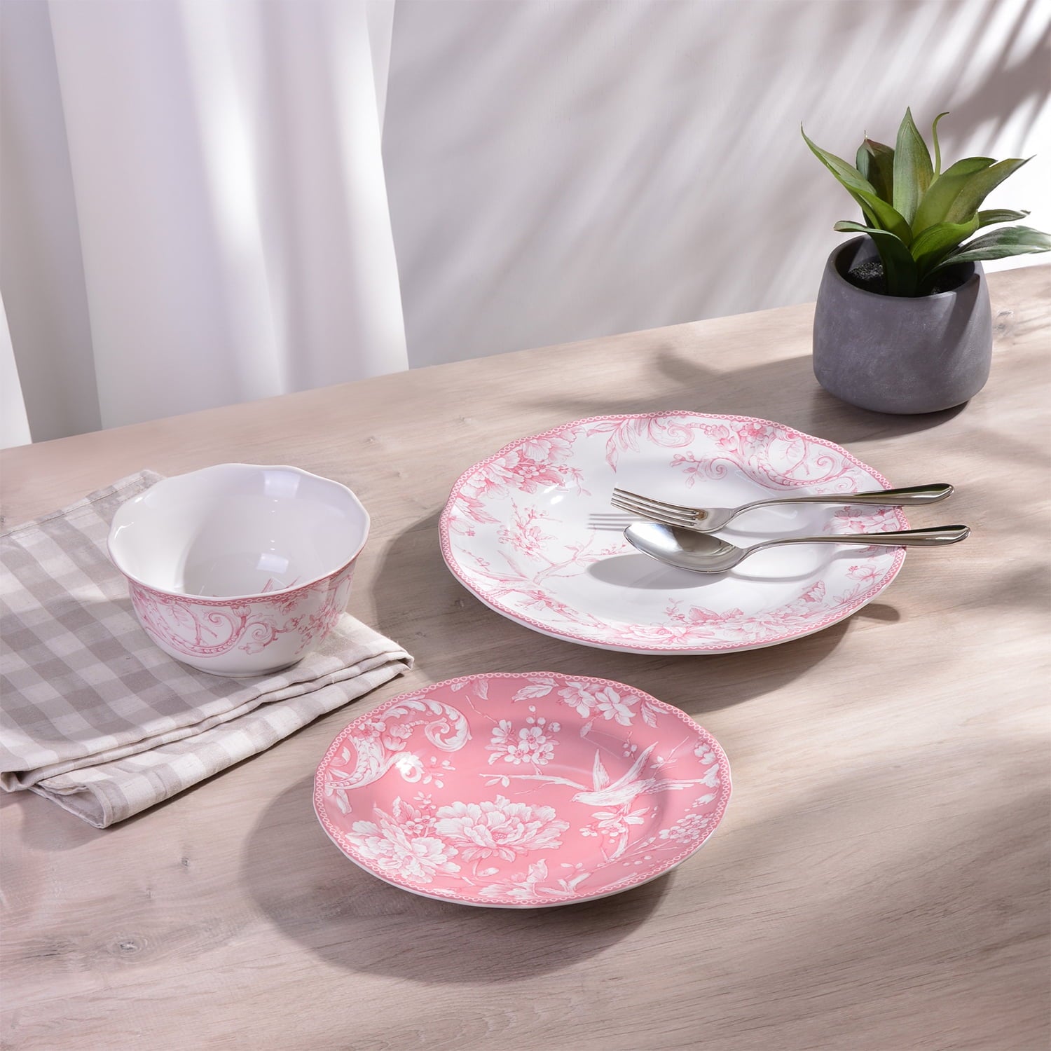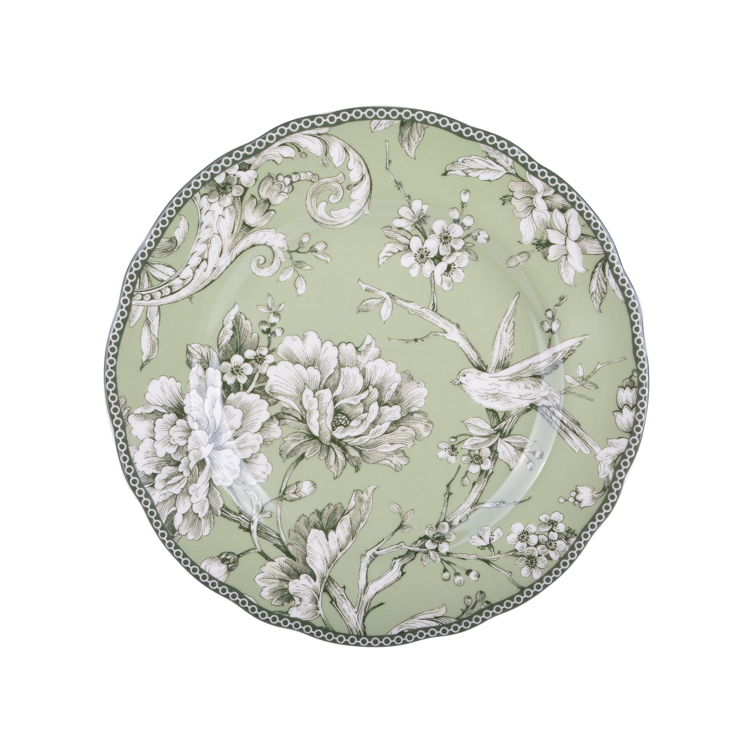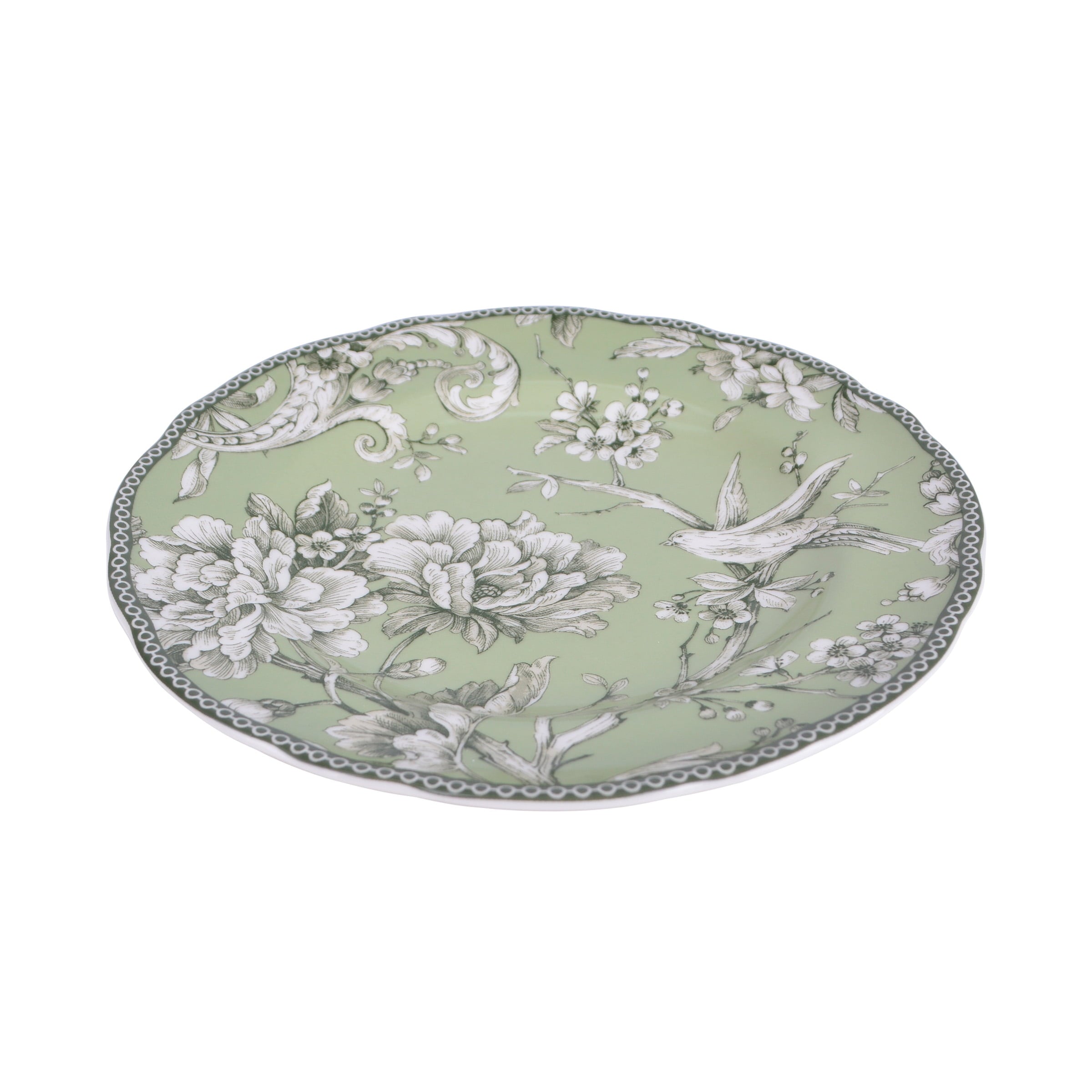- Inspired by a 1770s Toile pattern, the set features a romantic spring scene of birds singing among flowering branches in an intricate woodland tableau.