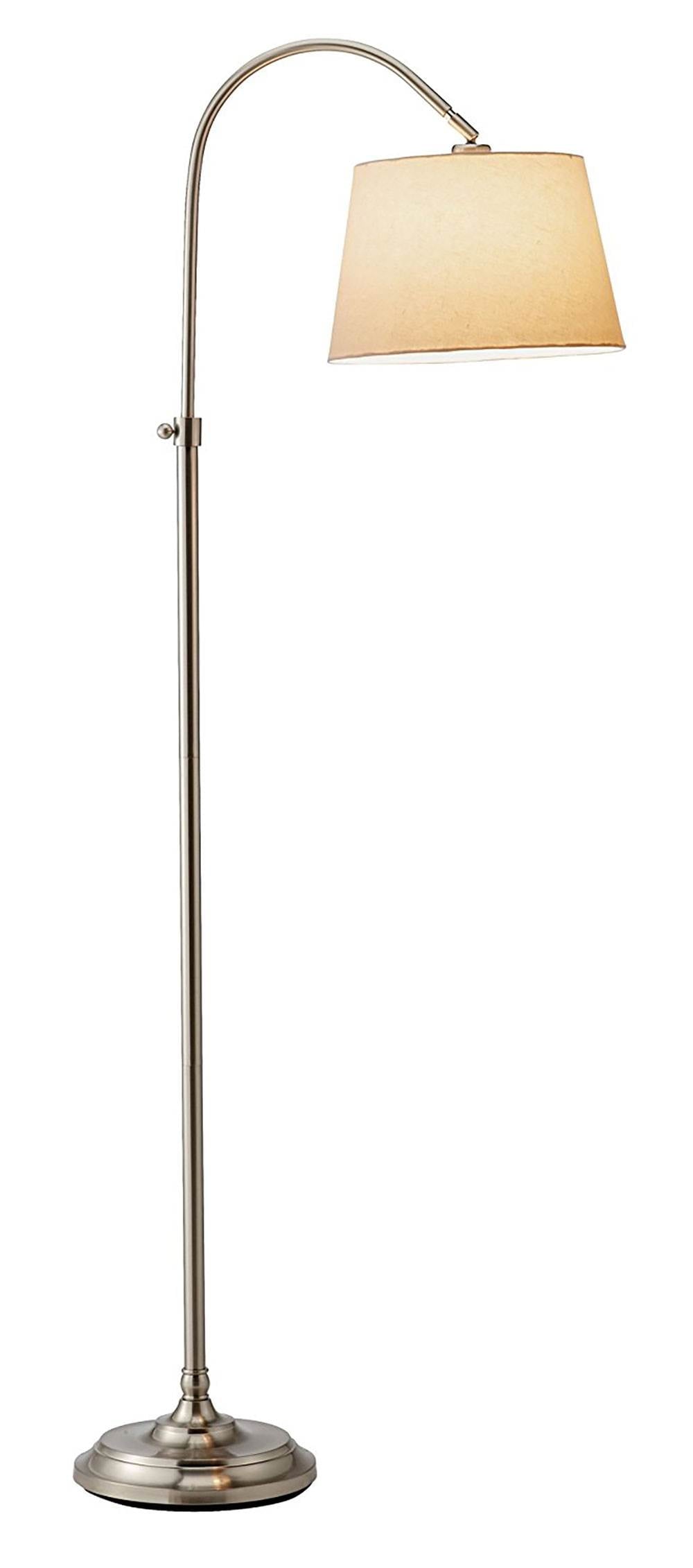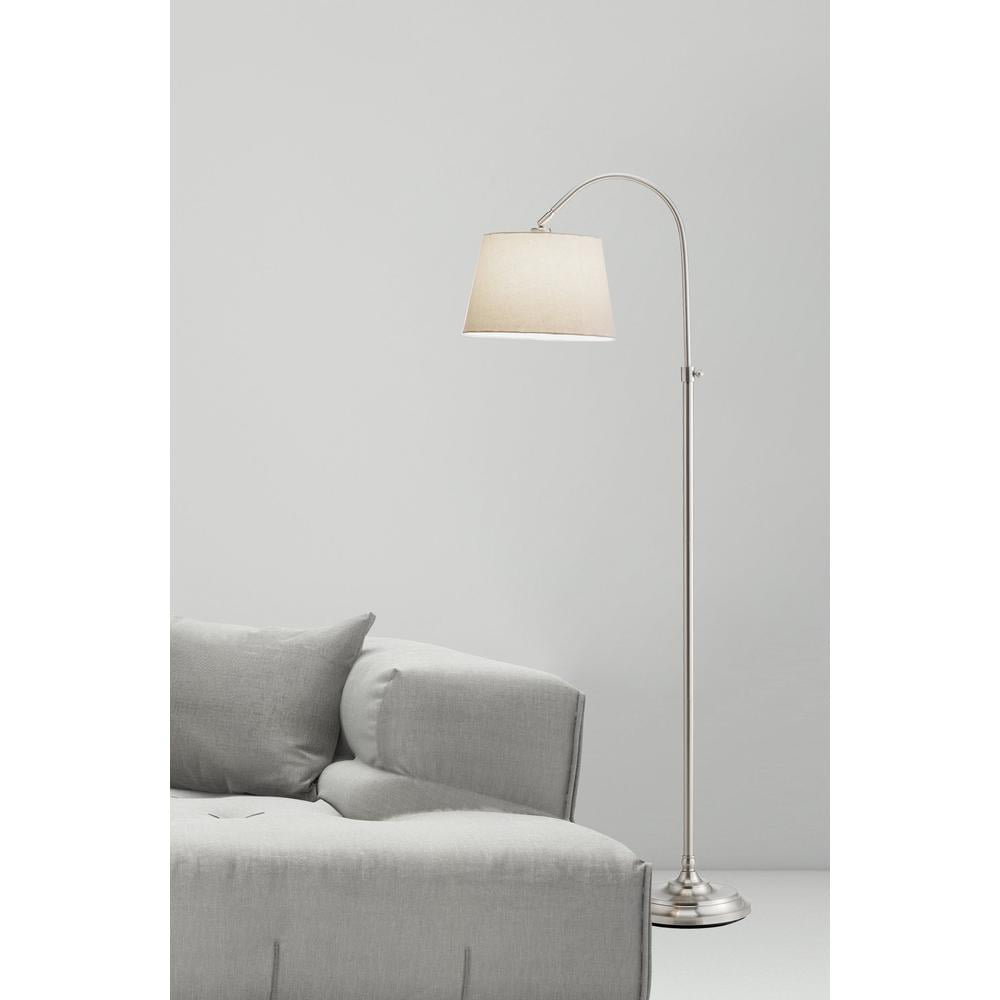Adesso Bonnet Arc Steel Standing Floor Lamp and Adjustable White Linen Shade