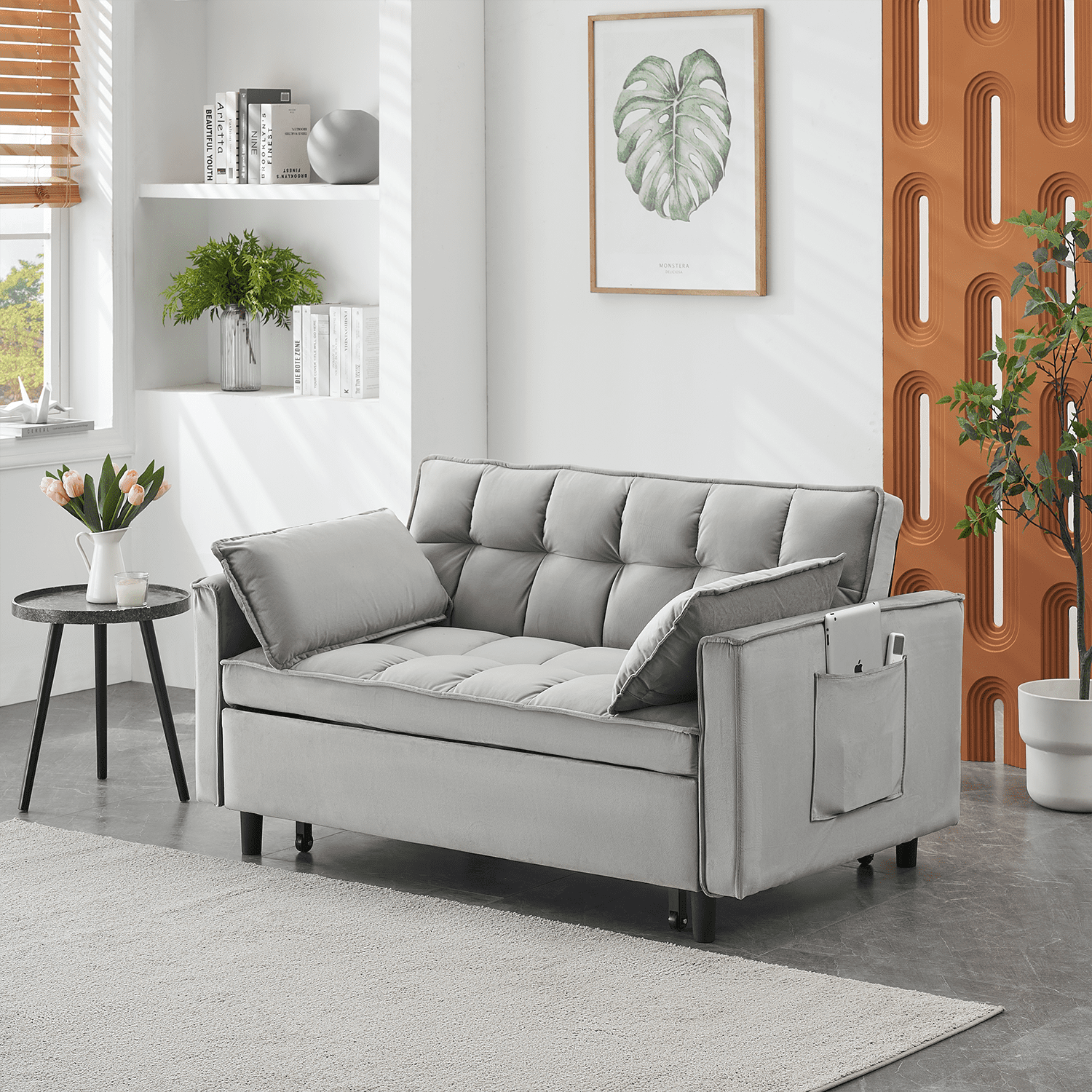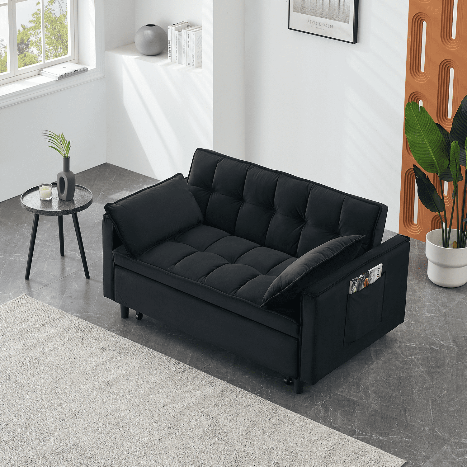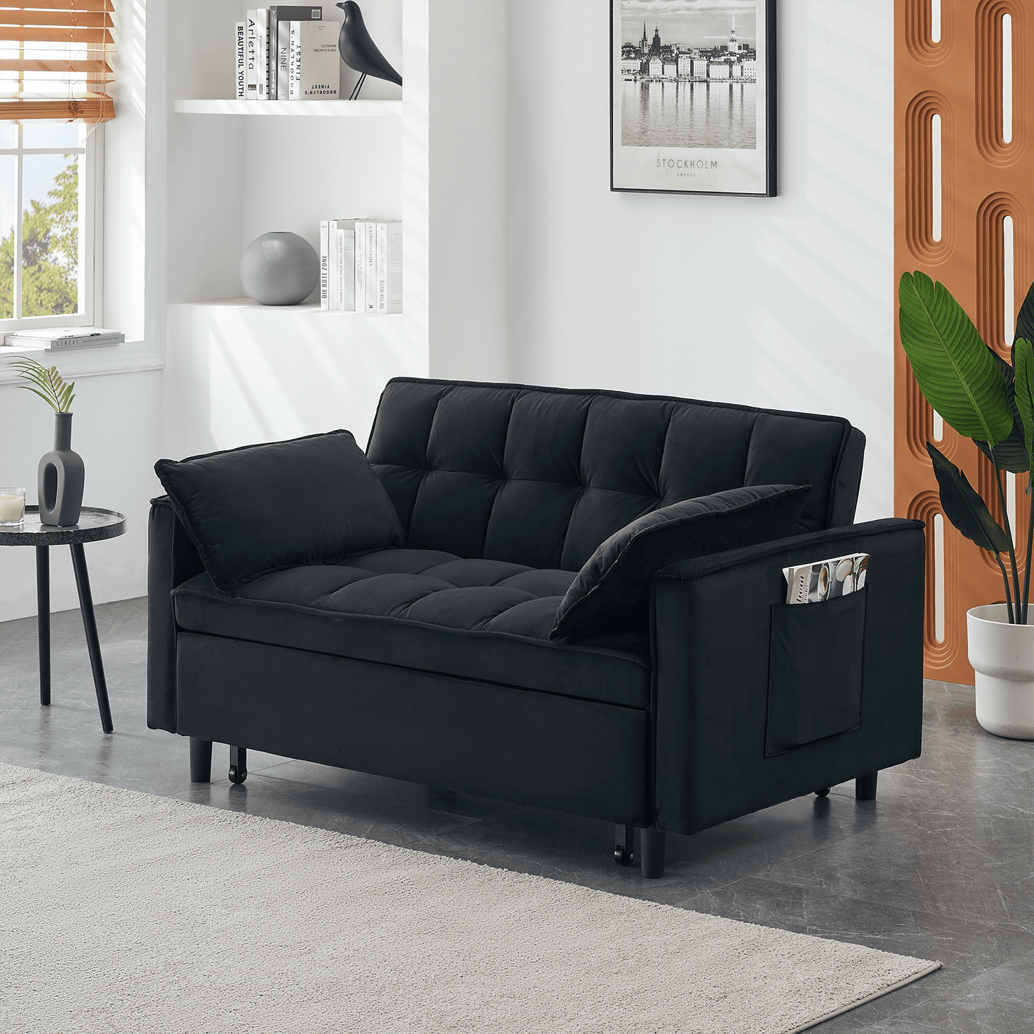 Home Sofas & Couches Adjustable Back Velvet Futon Sofa Bed, Modern Convertible Couples Sleeper with Side Pockets, Fold Down Couch for Living Room, Apartment,Blue