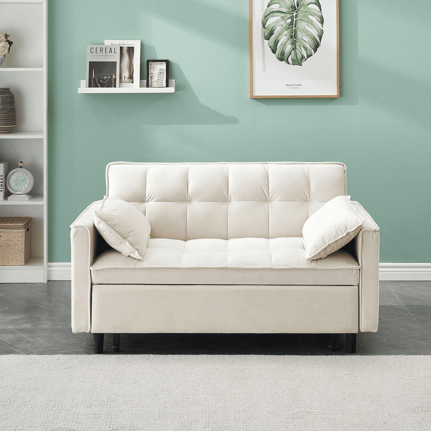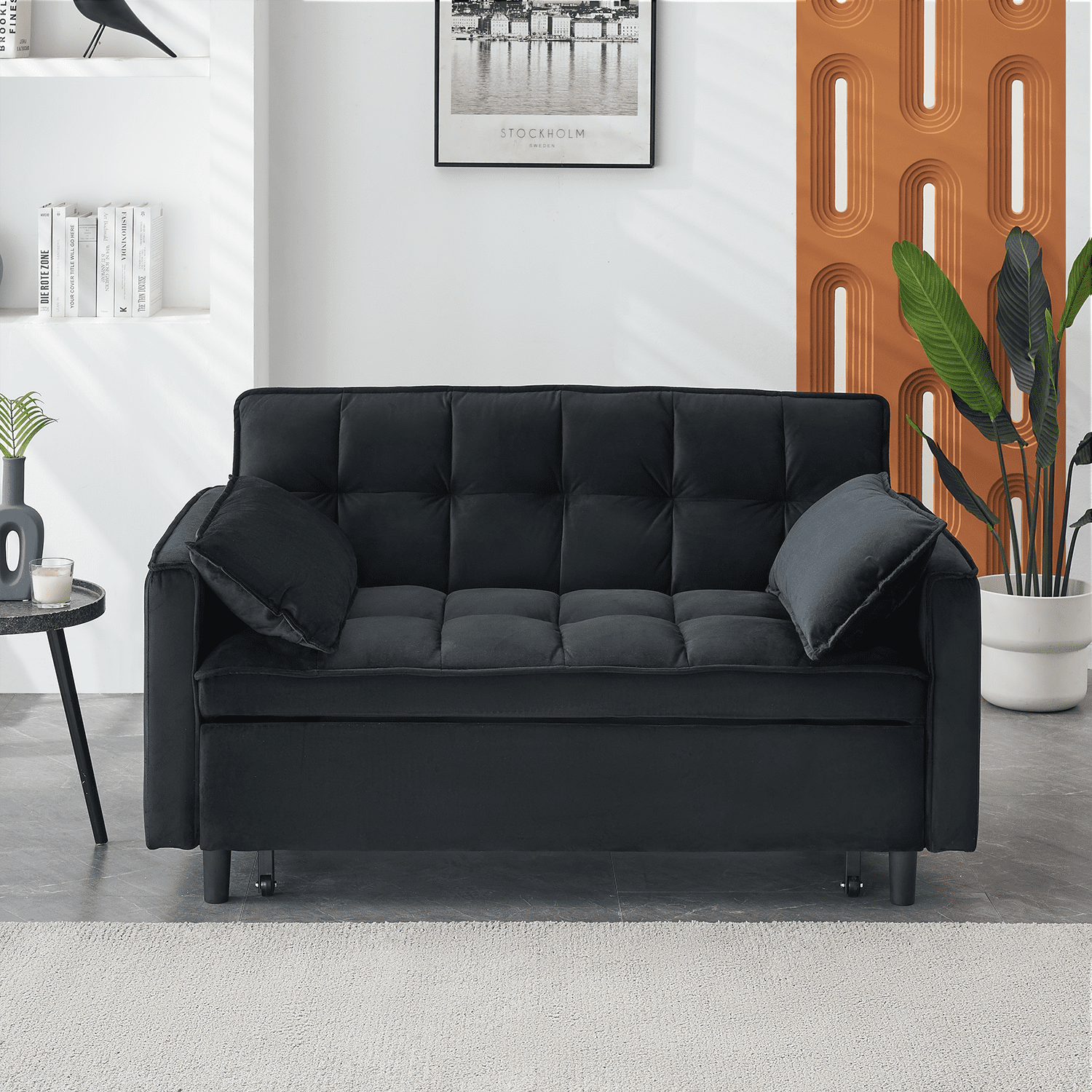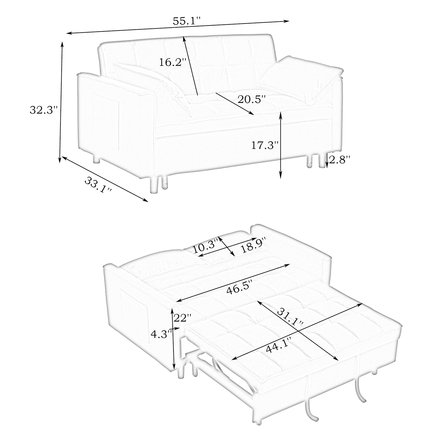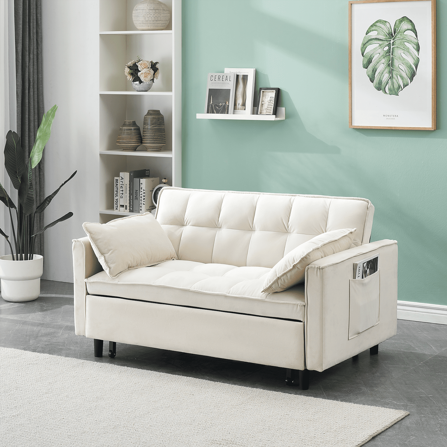 Home Sofas & Couches Adjustable Back Velvet Futon Sofa Bed, Modern Convertible Couples Sleeper with Side Pockets, Fold Down Couch for Living Room, Apartment,Blue
