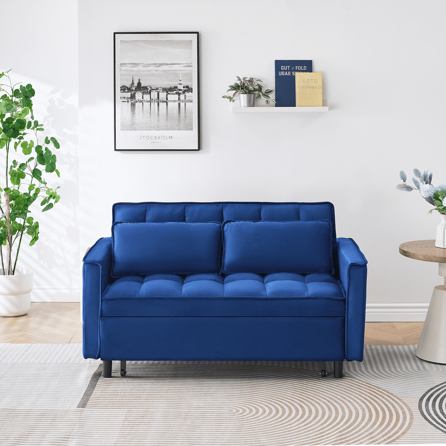 Adjustable Back Velvet Futon Sofa Bed, Modern Convertible Couples Sleeper with Side Pockets, Fold Down Couch for Living Room, Apartment,Blue
