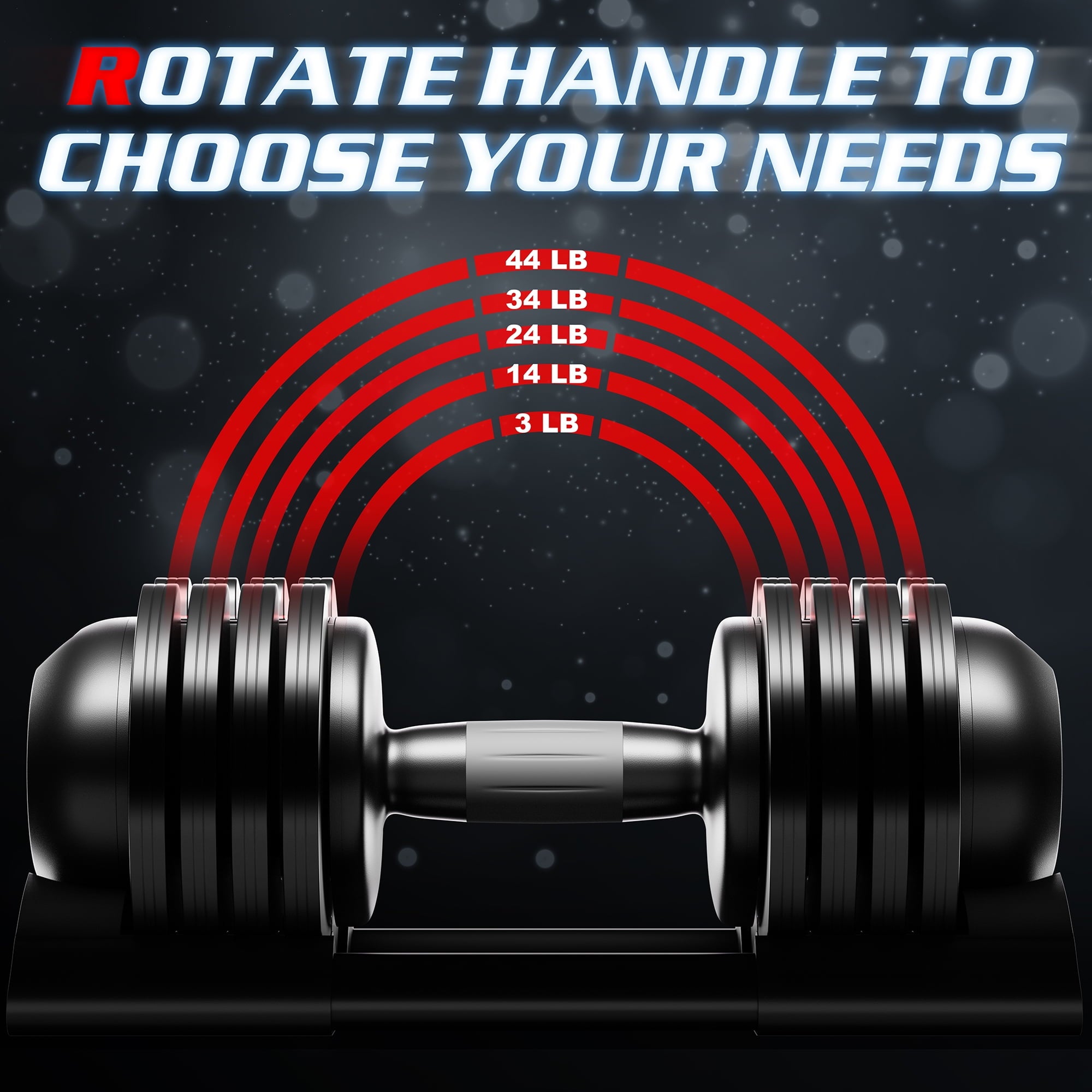• Adjustable Weight- Our adjustable weight dumbbell features free weight adjustment from 3-14-24-34-44lb, suitable for beginners to professional. Committed to meet your needs for diversified weight training, it is a great choice for modify muscle lines and strong muscle fibers