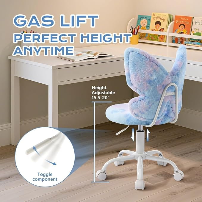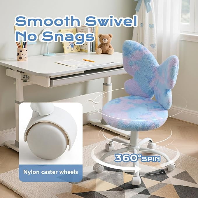 Adorable Butterfly Kids Desk Chair – Comfy Swivel Computer Chair for Girls Room, Fluffy Kids Office Chair for Reading & Vanity,Blue