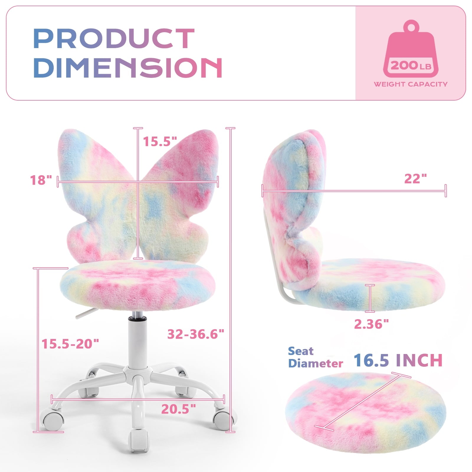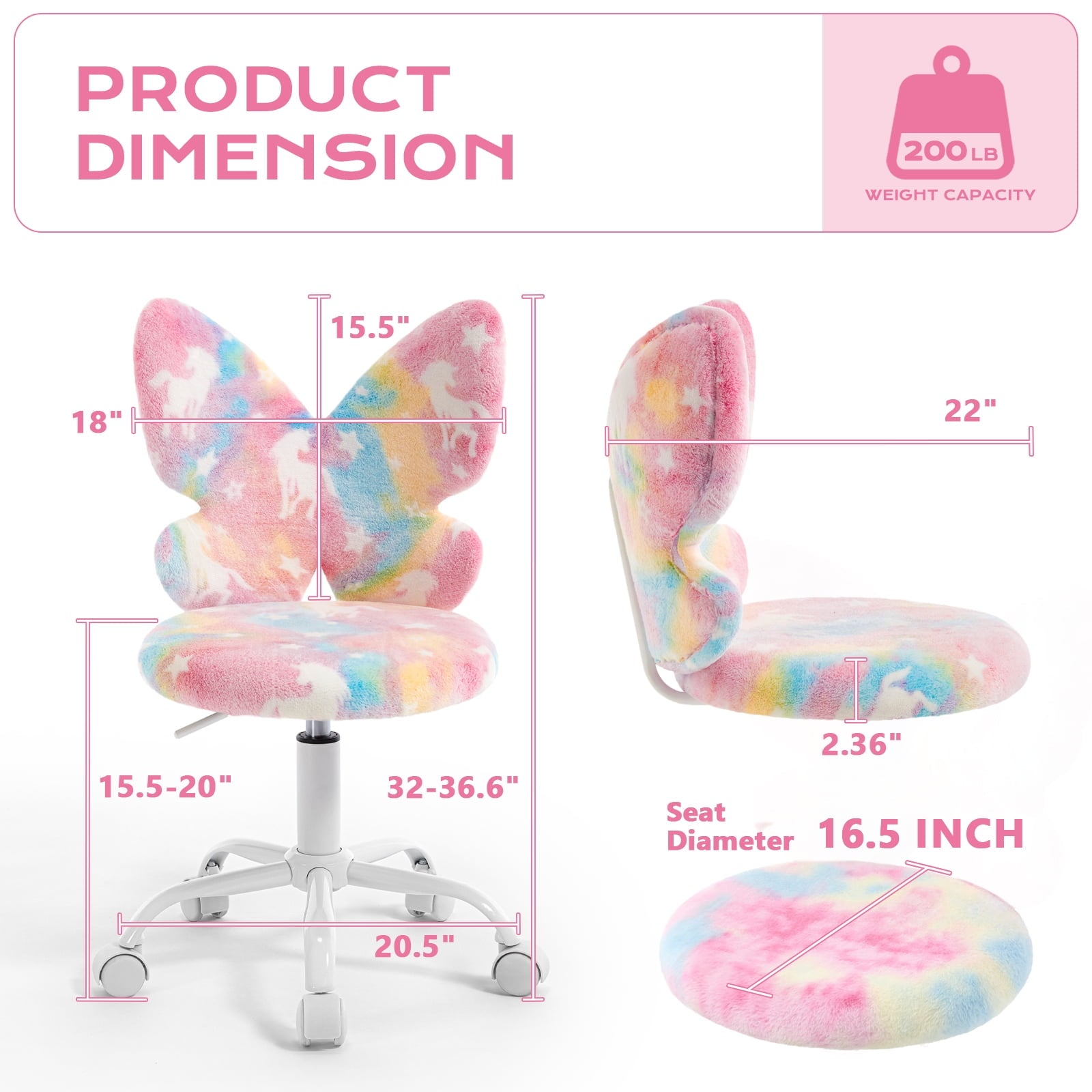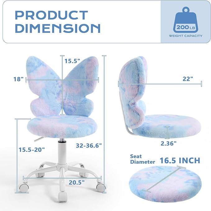EXCELLENT PERFORMANCE: The chair features a sturdy base with casters to ensure smooth operation and safe use on all surfaces, including carpeted floors.Upgrade your child’s desk chair for kids with this enchanting butterfly chair that blends seamlessly into girls room decor.