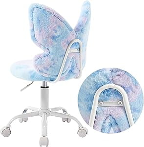 Home Desk Chairs Adorable Butterfly Kids Desk Chair – Comfy Swivel Computer Chair for Girls Room, Fluffy Kids Office Chair for Reading & Vanity,Blue